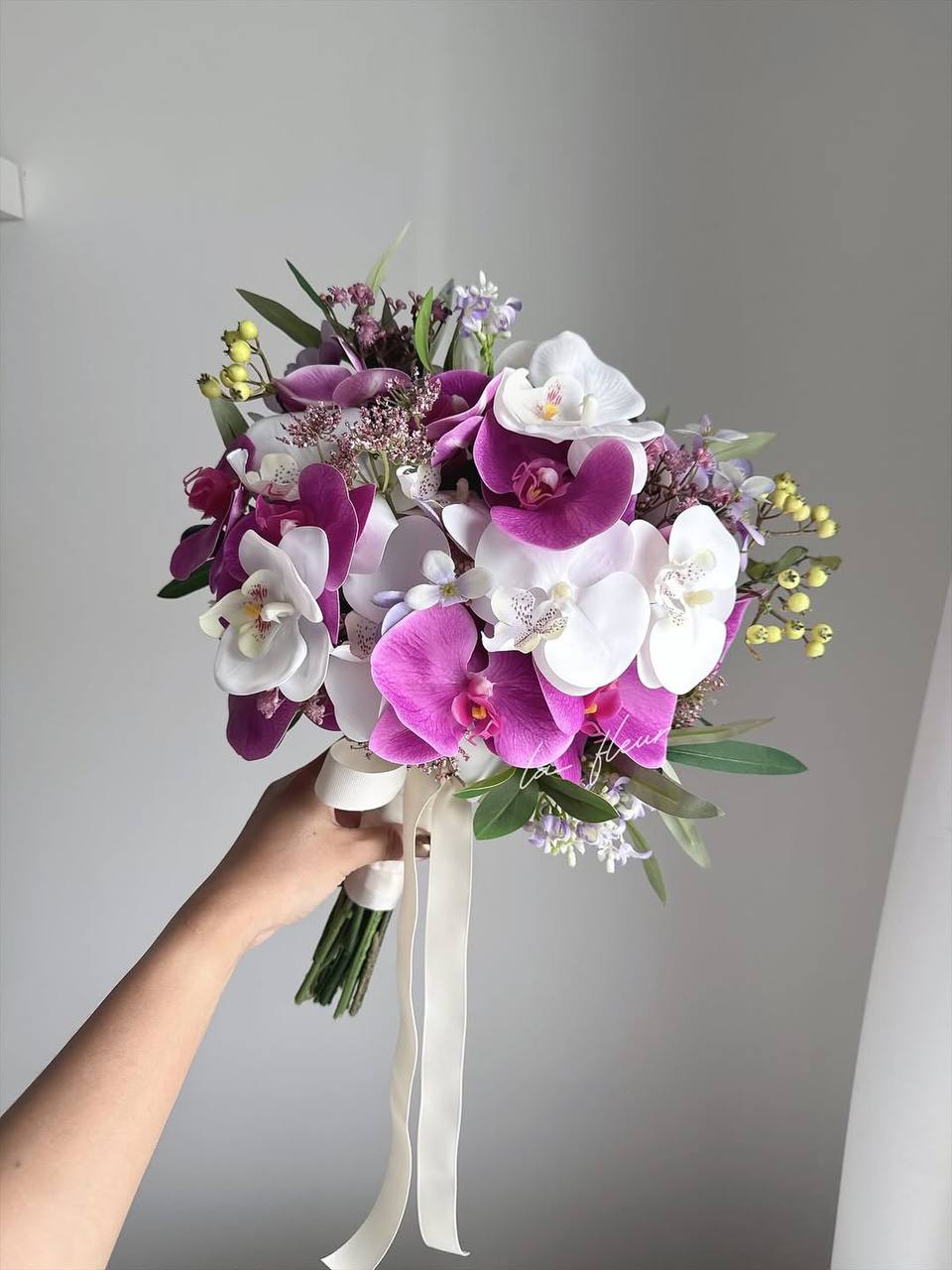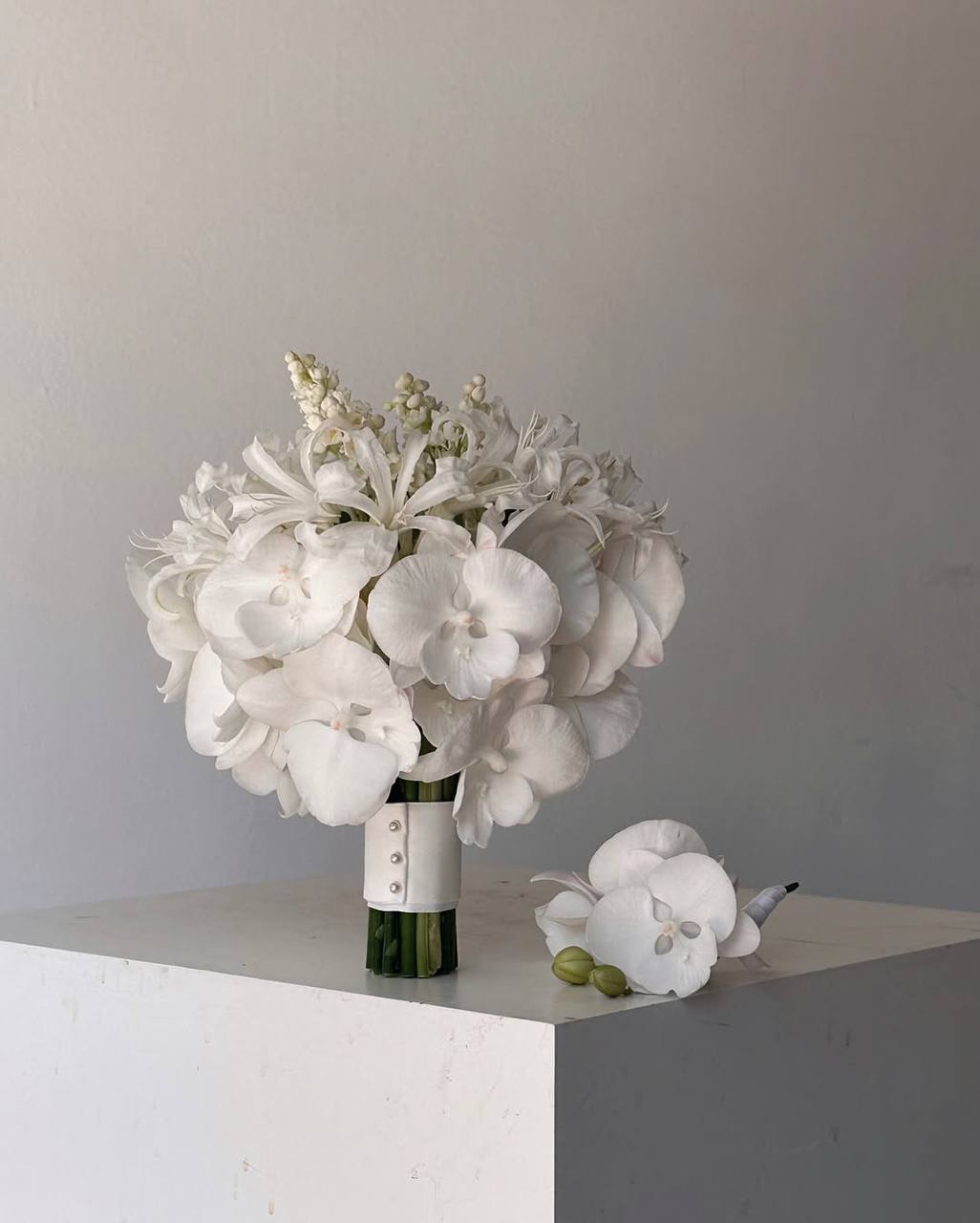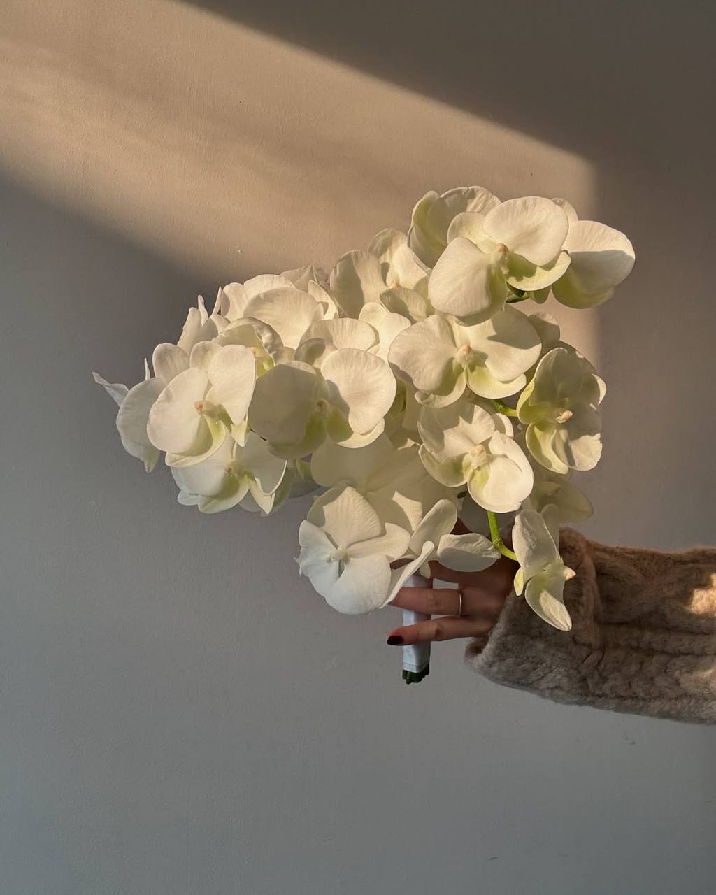 Орхидея — один из самых элегантных и благородных цветов для свадебного букета. Она сразу привлекает внимание своей утончённой формой и дарит образу нотку роскоши, не перегружая его.
