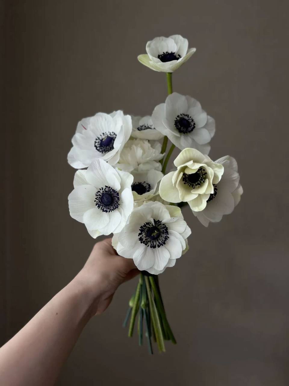 Чаще всего для свадебного букета используют именно белые и кремовые анемоны, которые подчёркивают неповторимую красоту невесты и олицетворяют скромность и сдержанность.