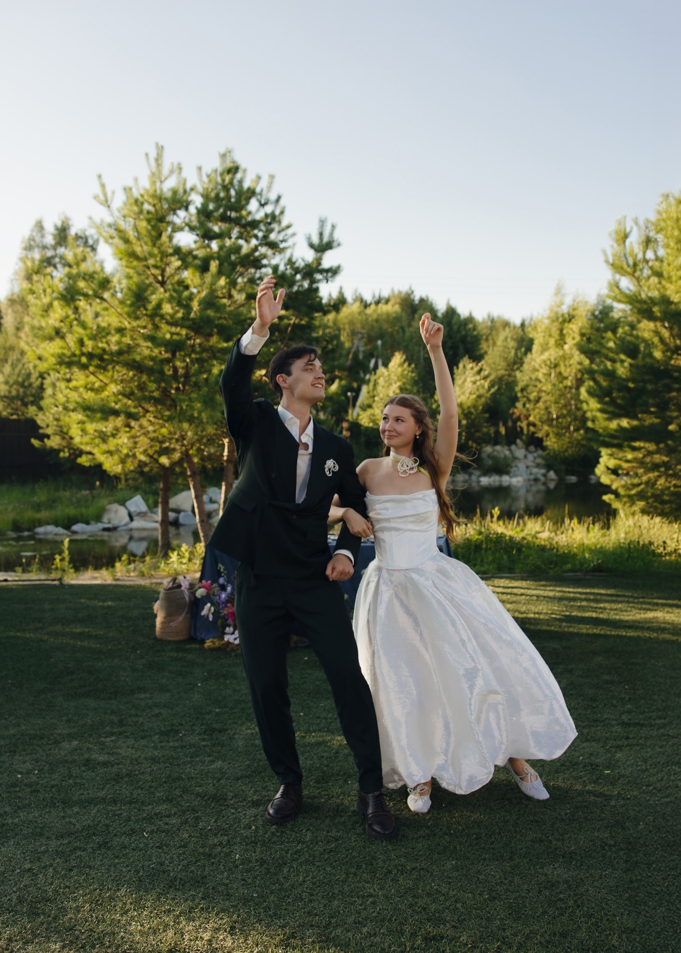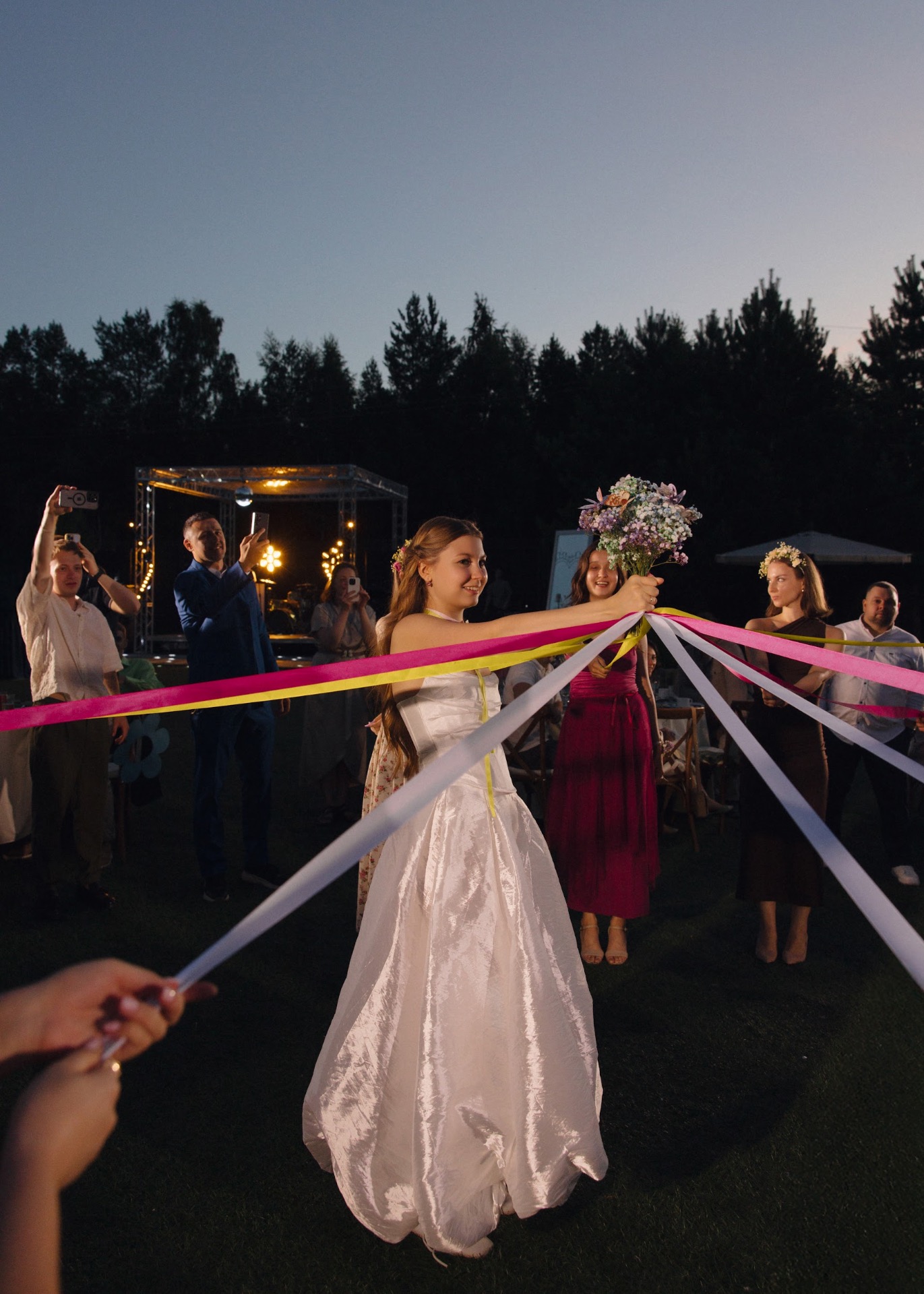Уральская погода сделала нам главный подарок: посреди довольно прохладных и дождливых дней выделила нам один солнечный и жаркий для нашего праздника. Так сбылась наша главная мечта — свадьба на свежем воздухе!