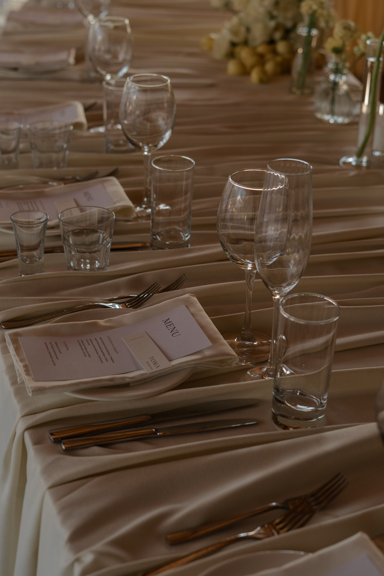 Я изначально знала, чего хочу от этого дня, и на встрече с декоратором озвучила свои мысли. Я представляла себе свадьбу в цвете сливочного масла, с ощущением лёгкости и образом летнего цветущего луга. Это и стало главной концепцией нашего праздника.