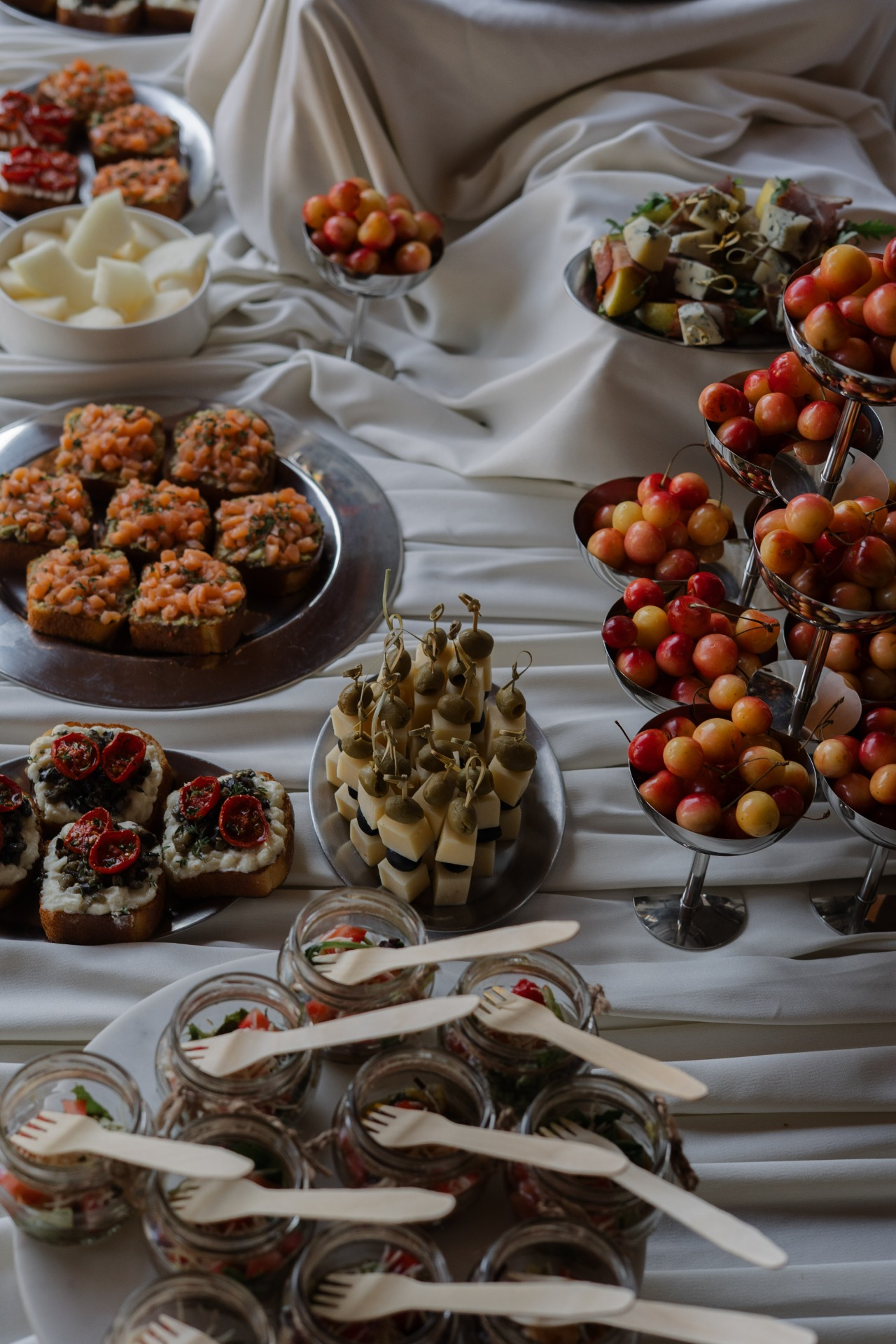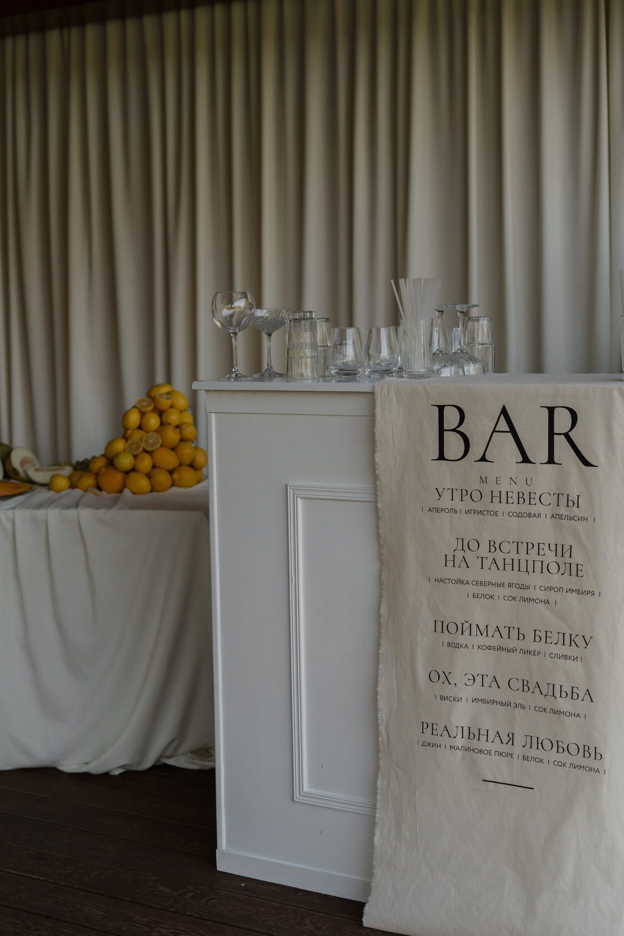 На фуршете гостей ждал не только выездной бар с коктейлями, но и фургончик с мороженым, что оказалось особенно актуально в жаркую летнюю погоду. А живая музыка создала расслабляющую атмосферу на террасе во время ожидания церемонии.