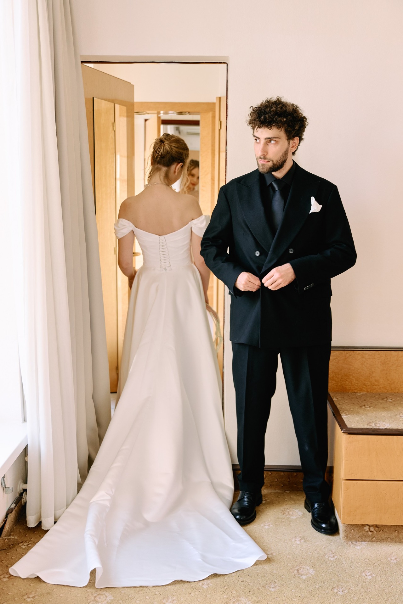 С моим платьем всё было немного сложнее. На примерки я ходила с мамой, но постоянно пересылала подругам фотографии, устраивая голосование. Мне хотелось, чтобы Миша не видел мой образ до свадьбы, и я стоически держалась. Хотя, признаюсь, было непривычно не советоваться с ним, ведь мы всегда выбираем всю одежду вместе.