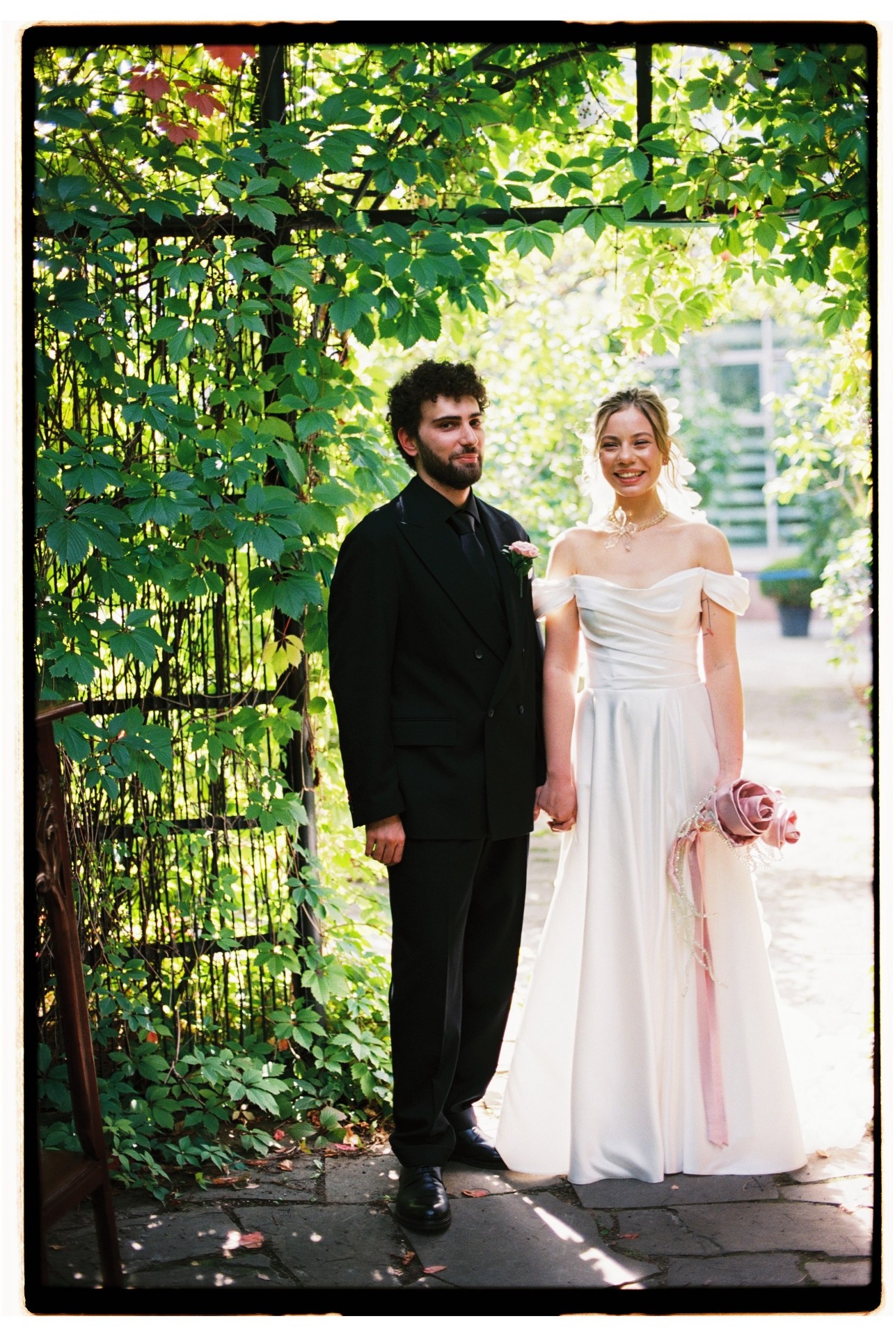 Роспись проходила в Доме Клюева на Большой Грузинской. Мы мечтали о регистрации на открытом воздухе, и площадка с ротондой, оплетённой виноградом, оказалась идеальной локацией для воплощения нашей мечты. Ещё нам показалось символичным само место — Миша наполовину грузин, а Дом Клюева находится около грузинского подворья.