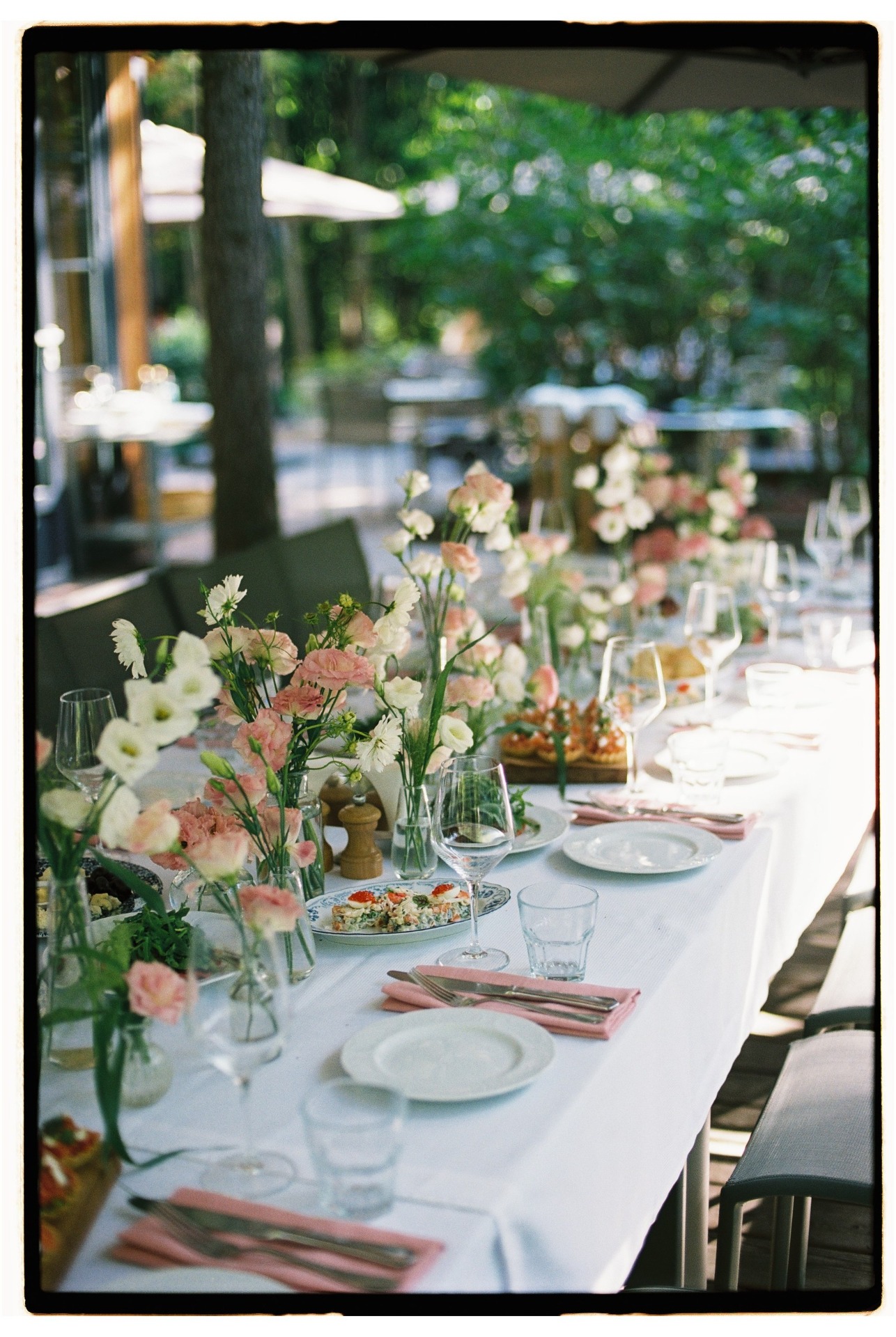 Флористику для фуршета мы выбрали под цвета наших образов. Гостей по палитре нарядов мы не ограничивали. Они у нас и так всегда красивые.