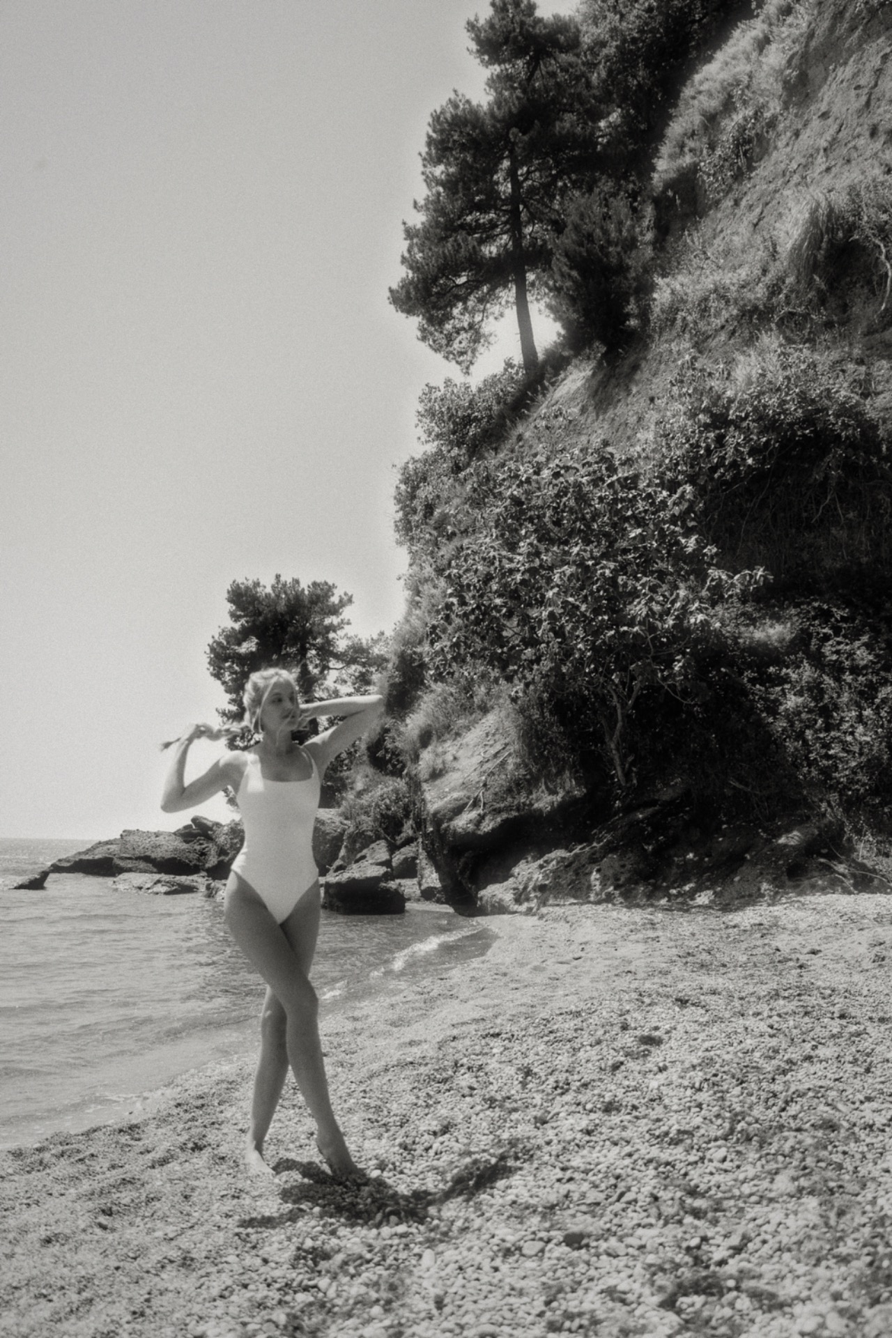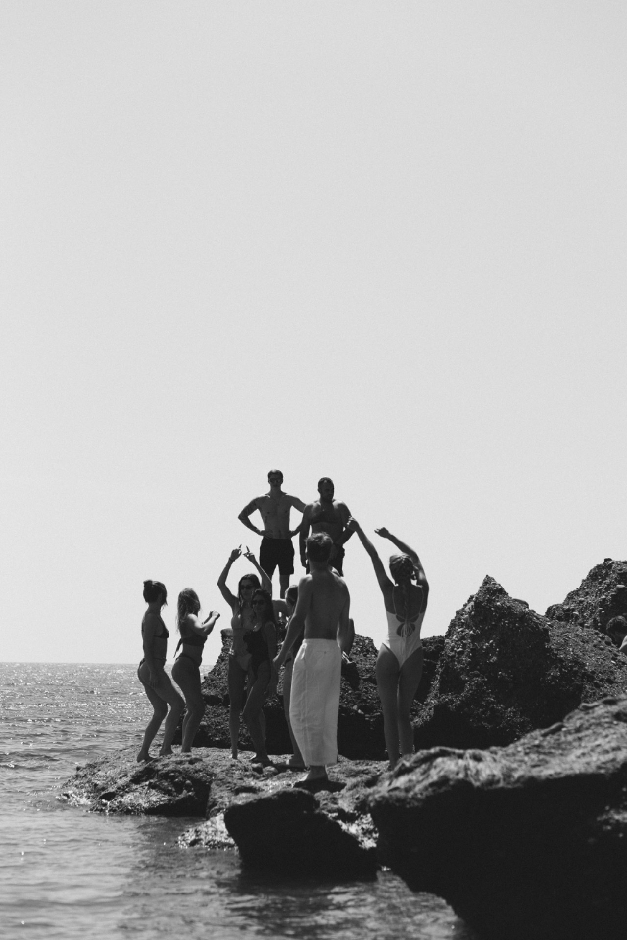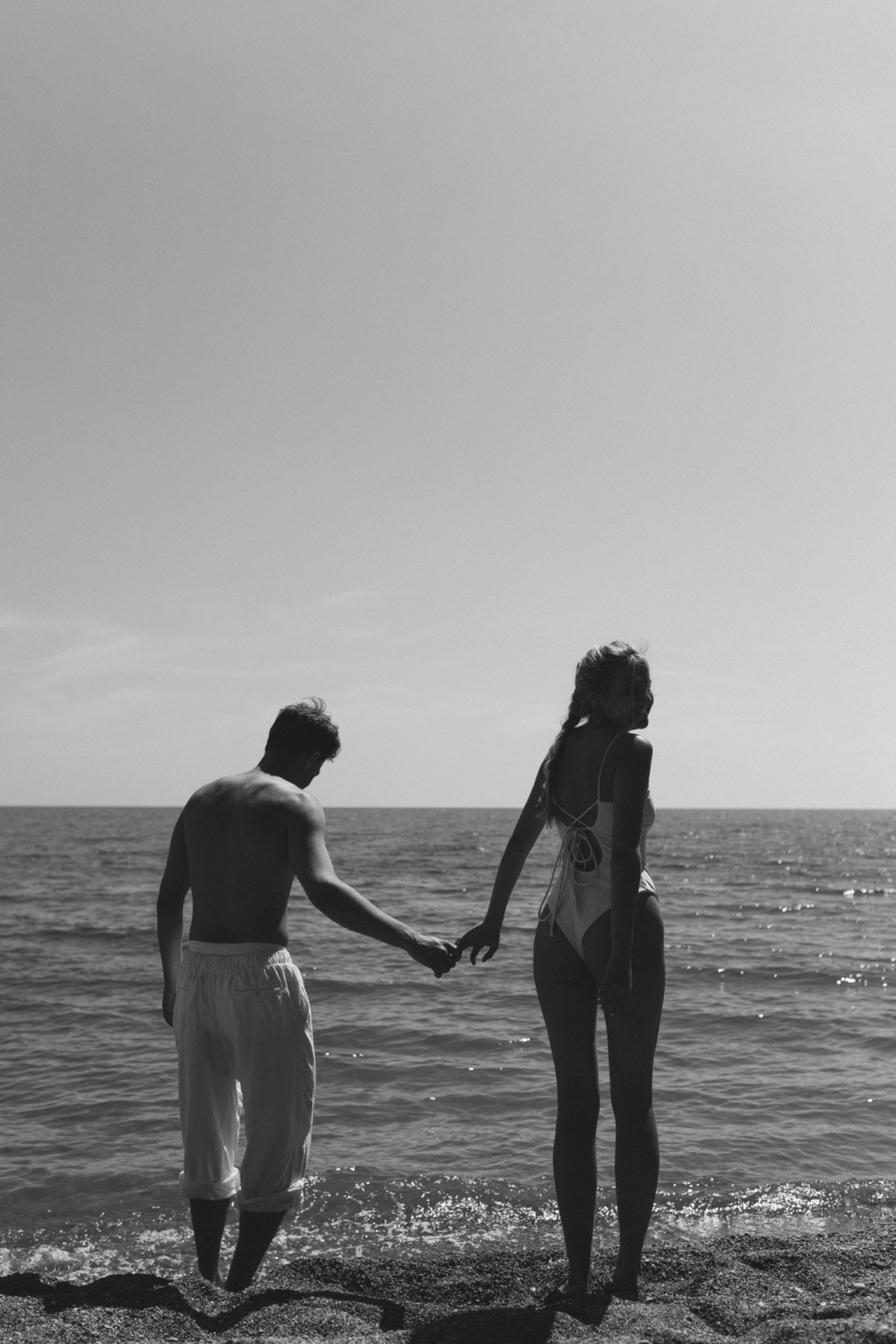 На утро невесты и жениха я выбрала хлопковый комплект с длинной юбкой и топом, сделала нюдовый макияж и небрежные локоны, как у сёрферш. У Вани были чёрная майка и льняные белые брюки. Также мы воплотили нашу мечту: утро с друзьями у моря.