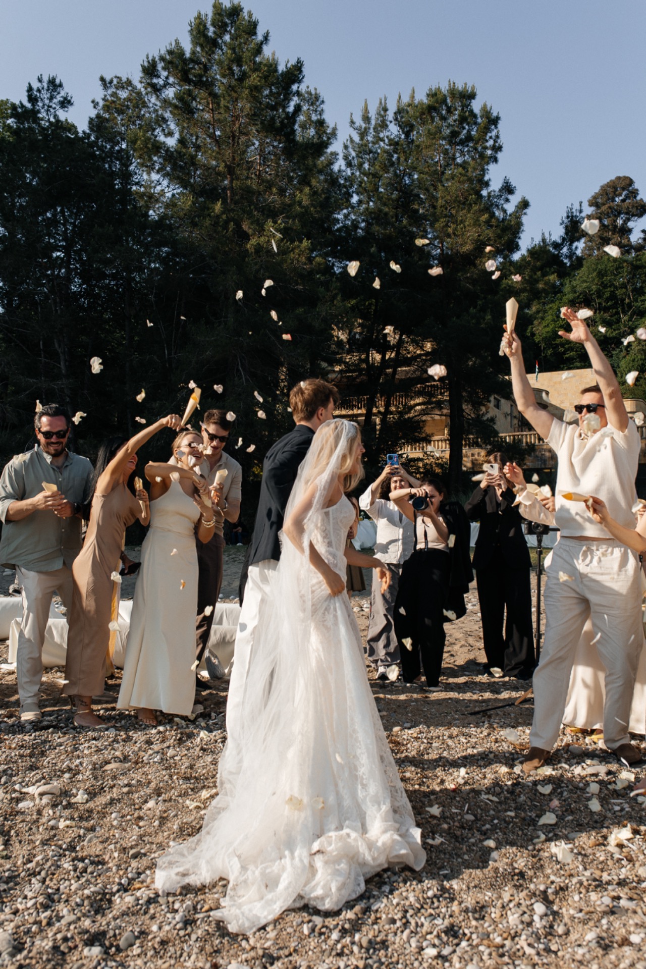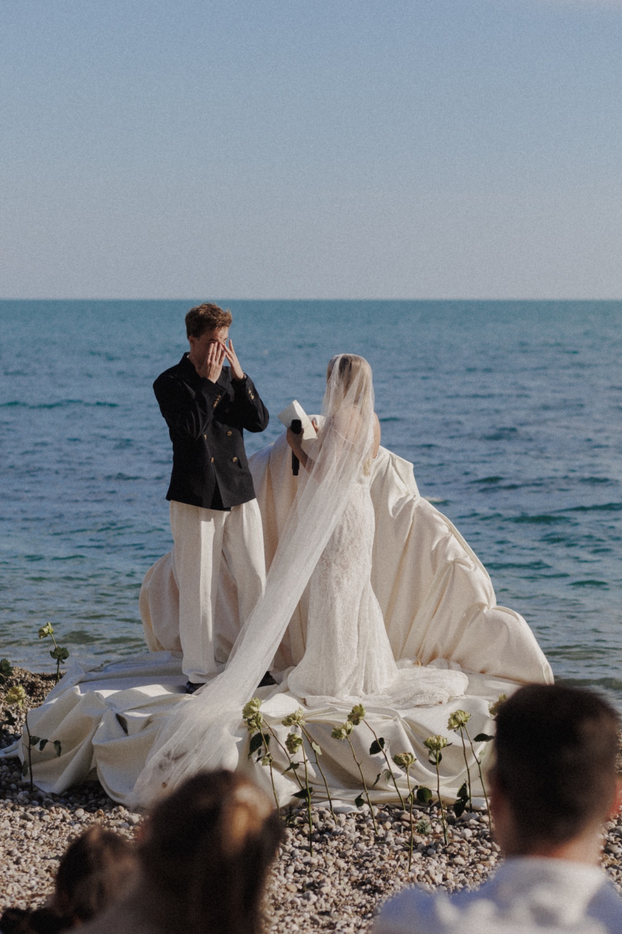 Гостям не раз пришлось прослезиться. На церемонии папа и младший брат выводили меня под трогательную музыку к берегу моря. Солнце играло на волнах, звучали искренние признания в любви. Мы решили не записывать клятвы заранее, а произнести их друг другу дрожащими голосами и со слезами на глазах.