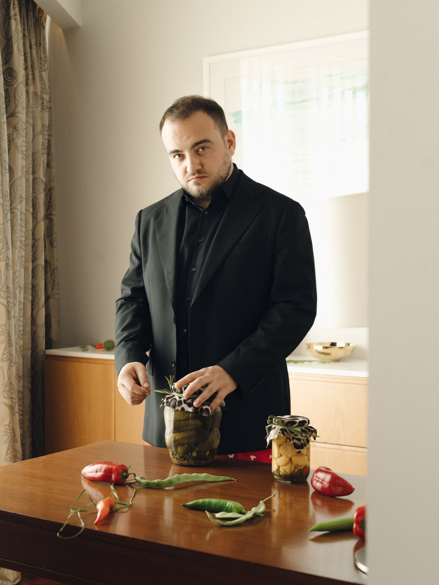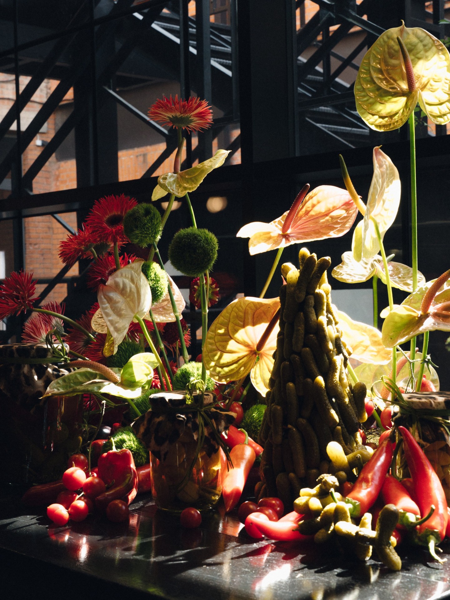 Уже на велкоме, в зоне встречи гостей, происходило погружение в настроение солянки и отсылки к «русскости» — был бешеный съедобный декор из огурцов и банок с соленьями! В этой же зоне играл токаор — настоящий гитарист фламенко: это символизировало начало наших отношений в Аргентине.