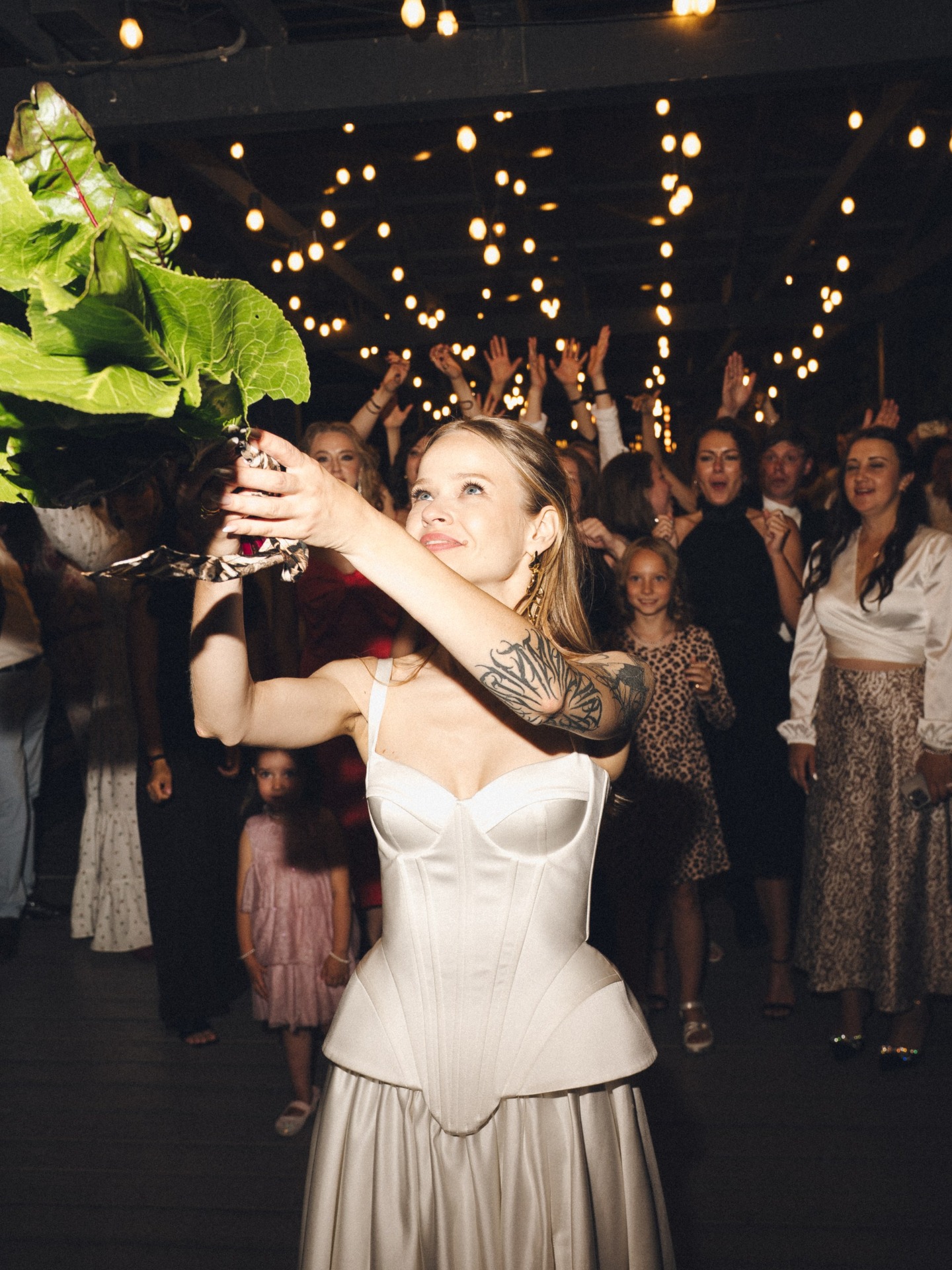 Вечер закончился диджейским сетом под баян, трубочками со сгущёнкой вместо торта и букетом из свекольной ботвы, который я бросала подругам.