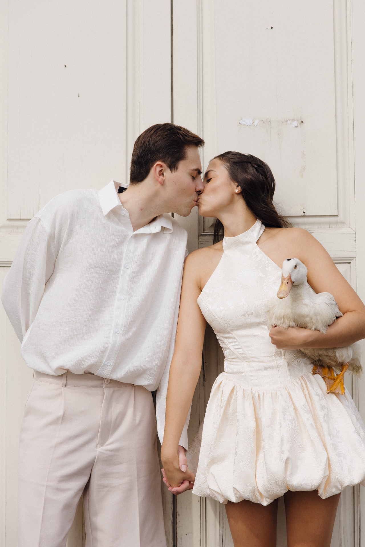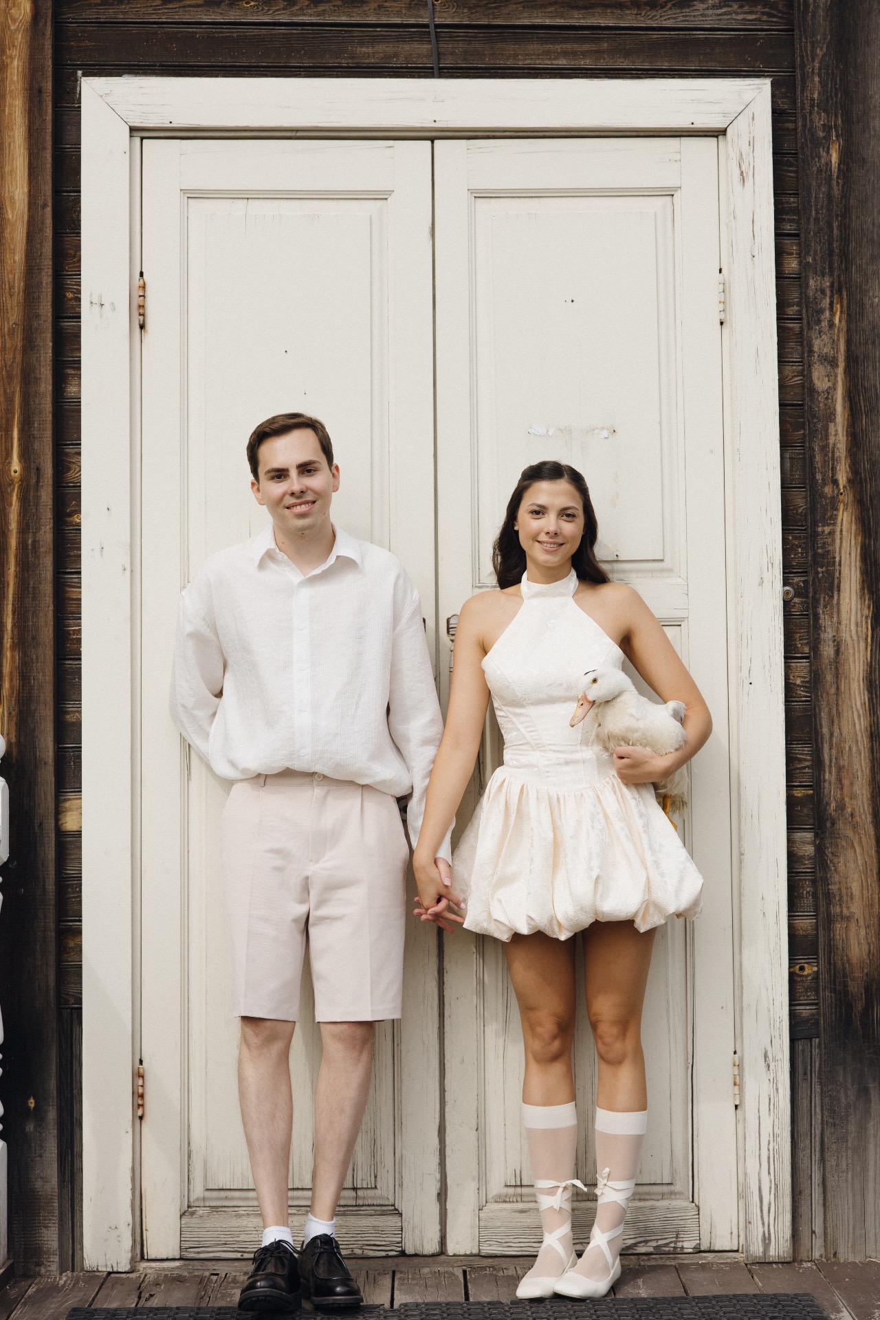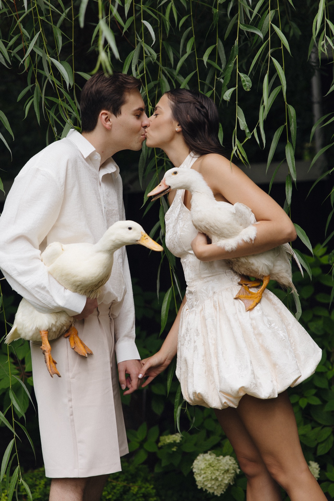 На фотосессии мы были вдвоём: волнение сменилось атмосферой любви, которая окутала весь этот день. Мы погрузились друг в друга, забыли обо всех переживаниях и, кажется, нашли тот самый настрой, позволивший по-настоящему насладиться праздником. Кстати, во время фотосессии мы впервые взяли гуся на руки, и он доверился нам.