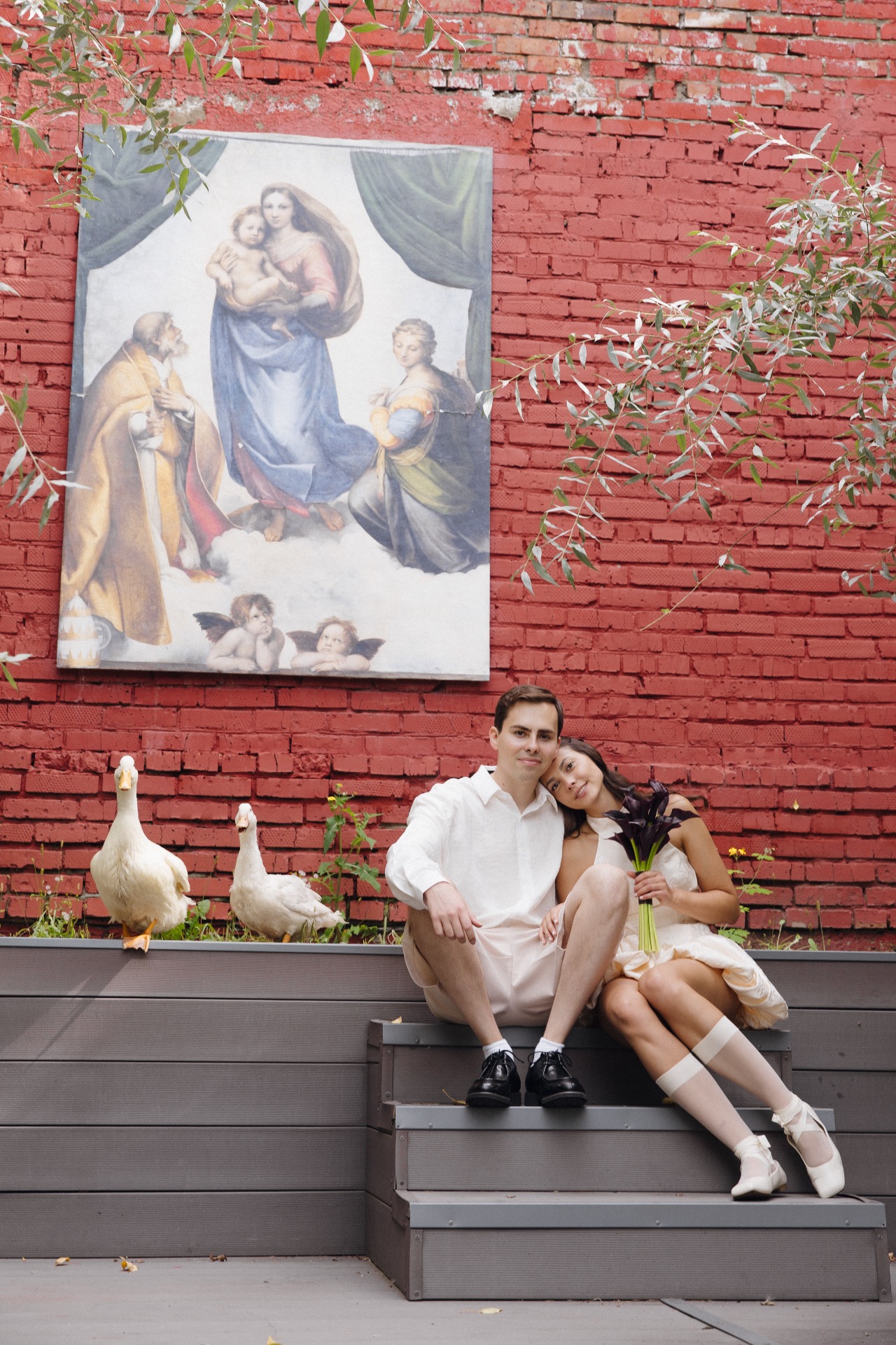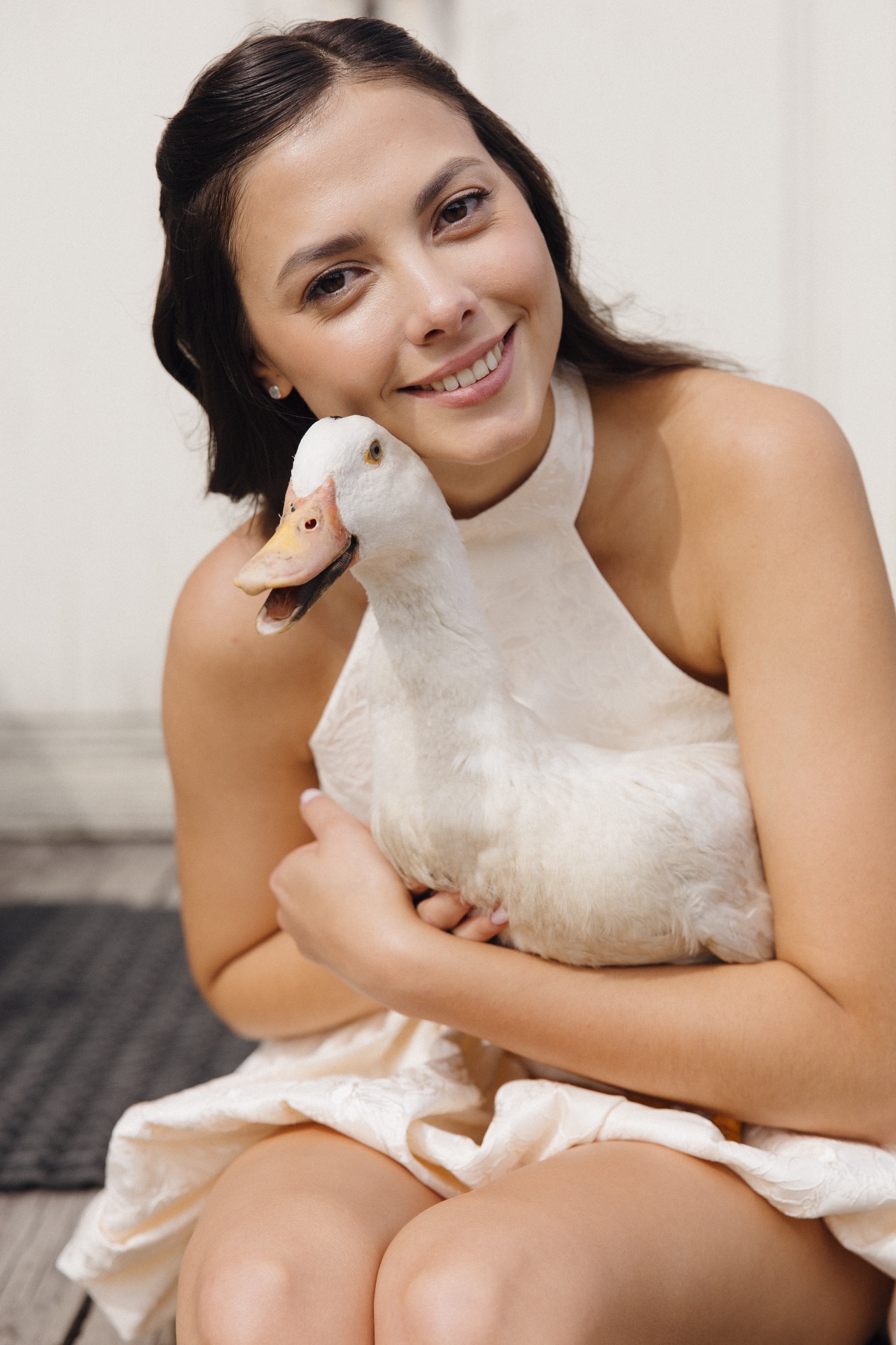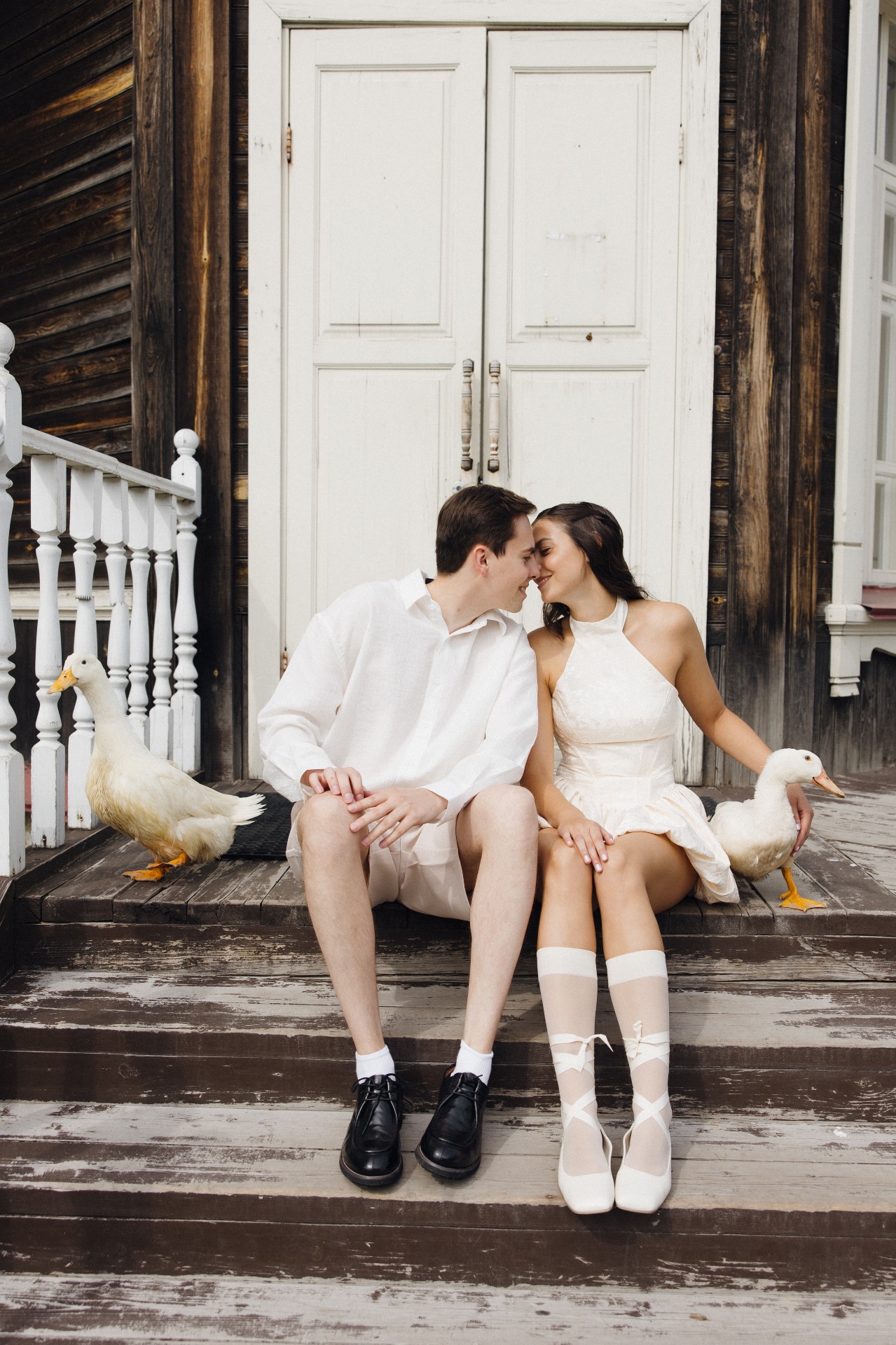 На фотосессии мы были вдвоём: волнение сменилось атмосферой любви, которая окутала весь этот день. Мы погрузились друг в друга, забыли обо всех переживаниях и, кажется, нашли тот самый настрой, позволивший по-настоящему насладиться праздником. Кстати, во время фотосессии мы впервые взяли гуся на руки, и он доверился нам.