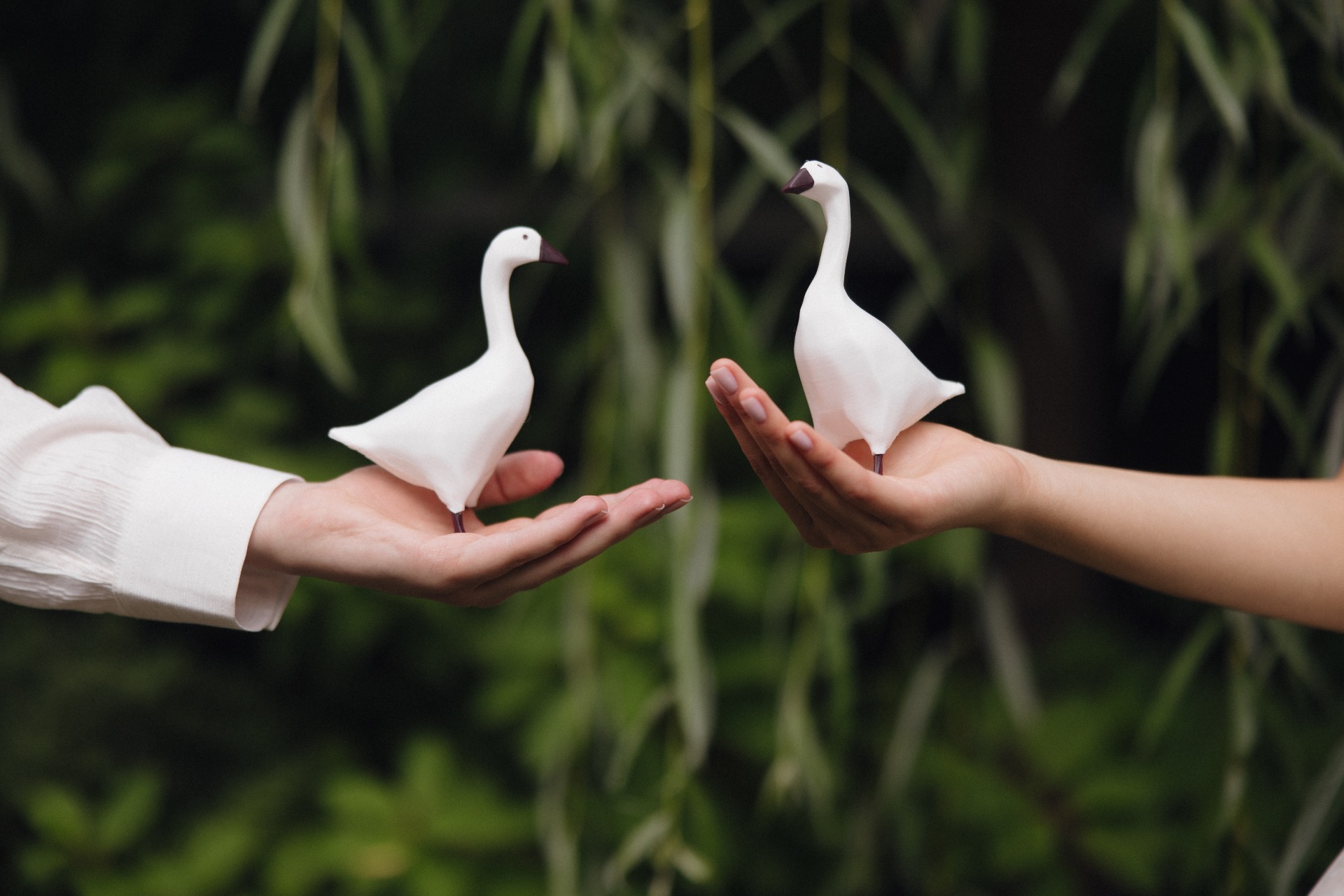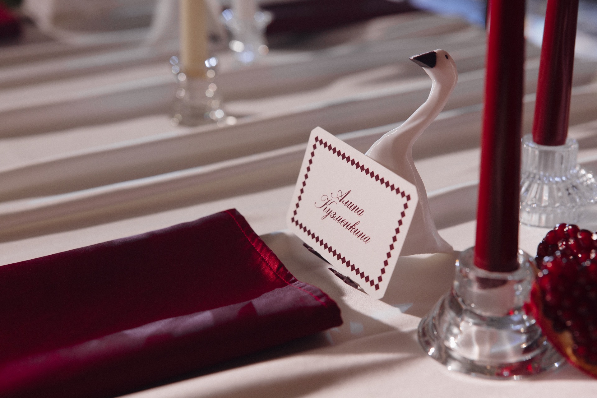 Гуси стали не просто декором, а символом нашей пары. Они напоминали о нашем первом свидании в ресторане, где мы впервые ощутили магию друг друга. Живые гуси на фотосессии, элементы декора и сервировки стали яркими деталями, которые сделали наш день незабываемым.
