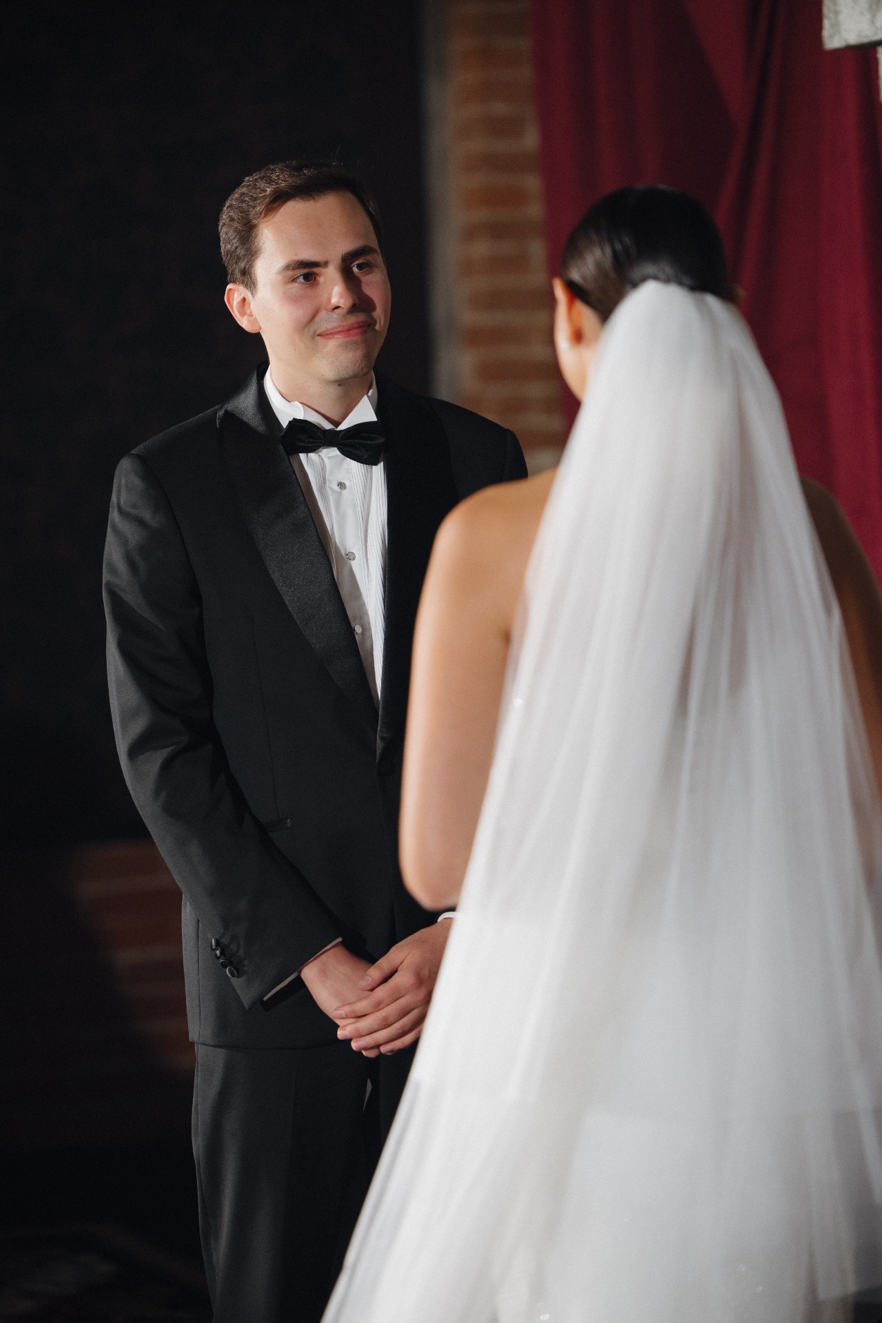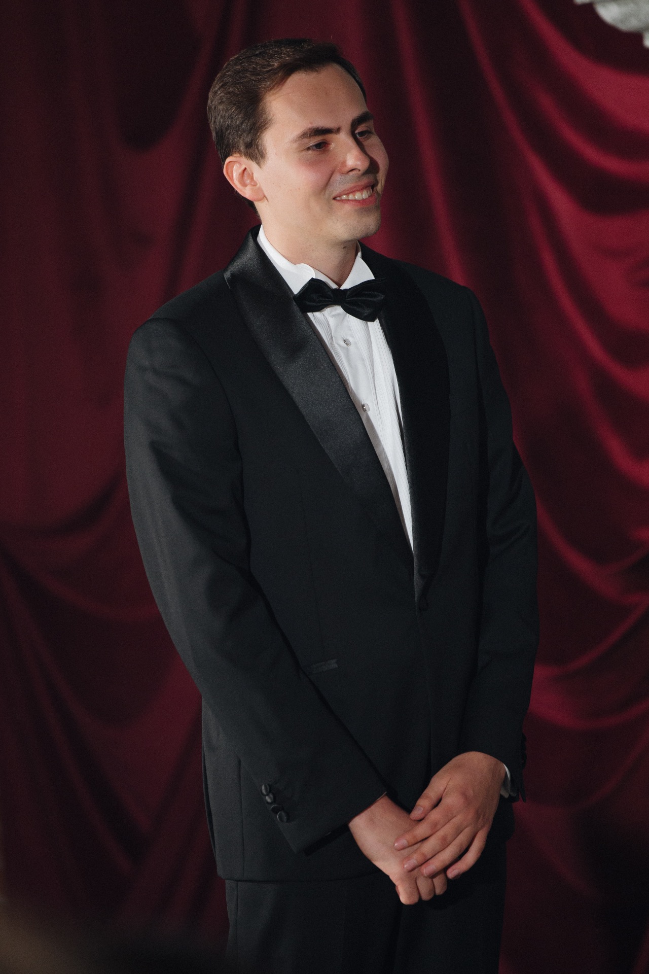 Для Никиты мы выбрали смокинг из Henderson с пуговицами и запонками, гармонирующими с моими украшениями.