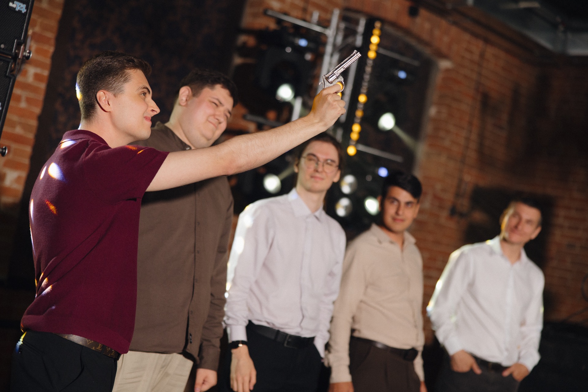 В качестве развлекательной программы у нас были конкурсы на знание мемов, смешные видео, фотоквизы и живая музыка. Также мы провели розыгрыш первого кусочка торта за обещание, я бросила букет незамужним девушкам, а Никита устроил стрельбу из револьвера для выбора следующего жениха.
