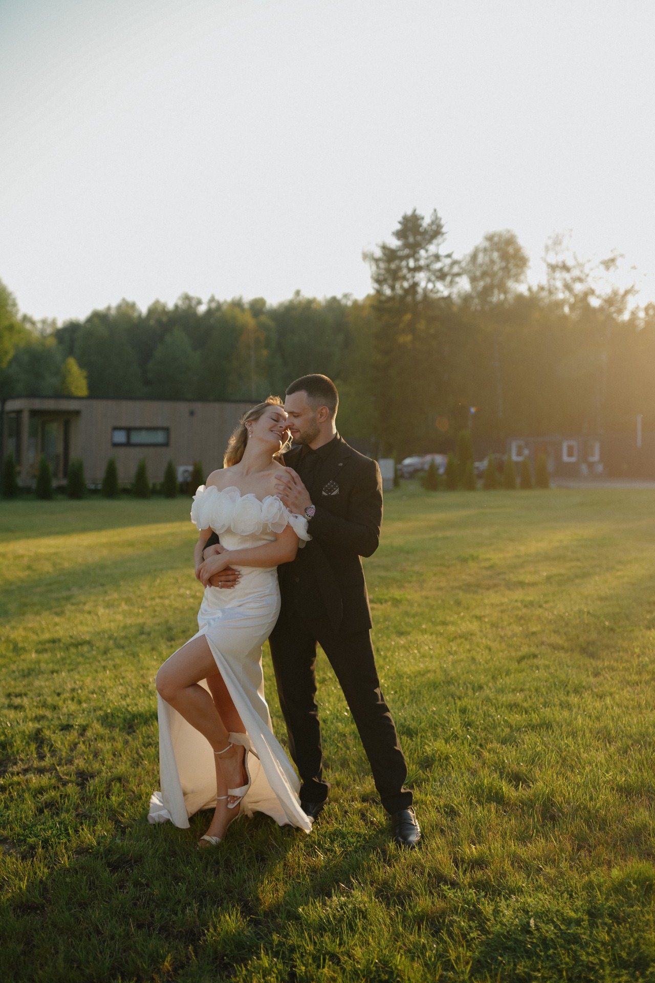 В этот день мы много танцевали под открытым небом, у нас играла кавер-группа Sold Out. Не обошлось и без творческих сюрпризов: Саша вместе с другом сочинили шуточную песню для меня, и он исполнил её прямо на свадьбе.