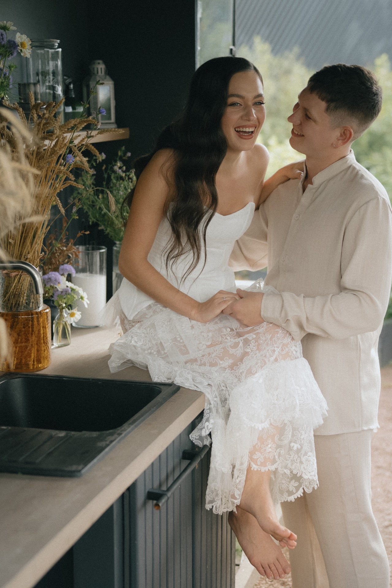 Мой утренний образ я создавала сама: юбка с воланами появилась буквально за несколько дней до свадьбы, дополнив корсет и подчеркнув мою творческую натуру.