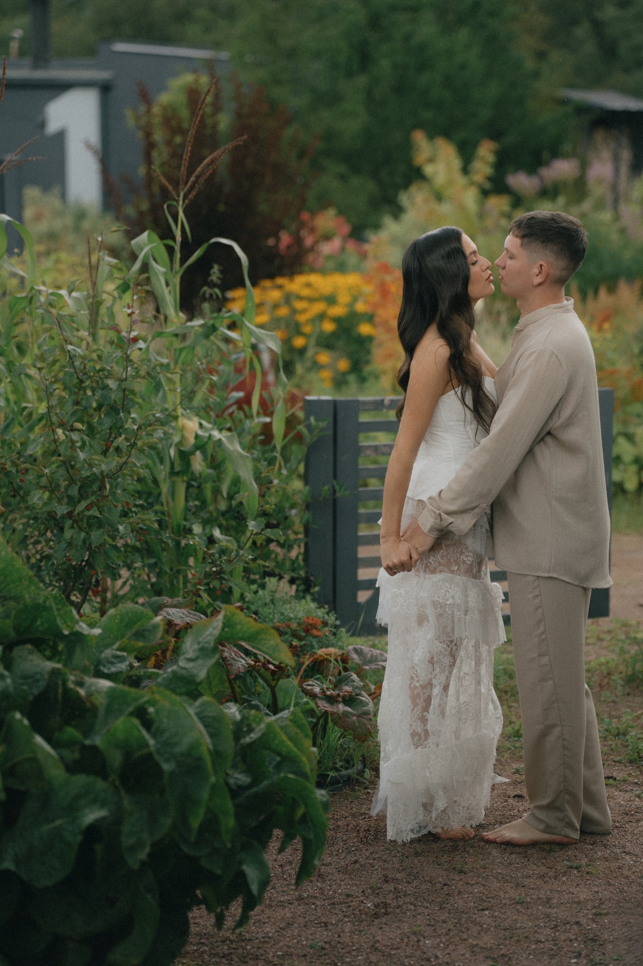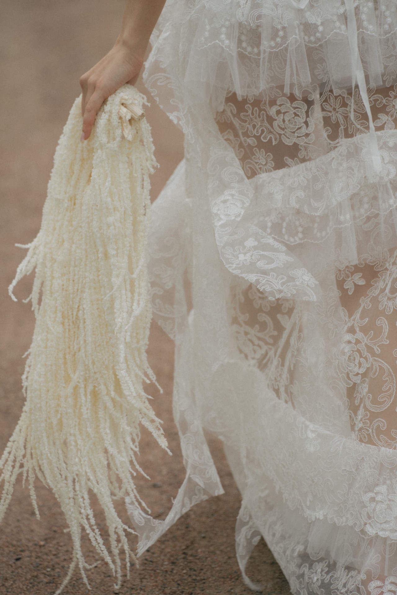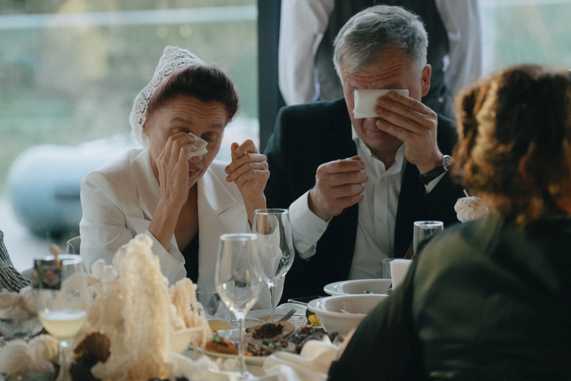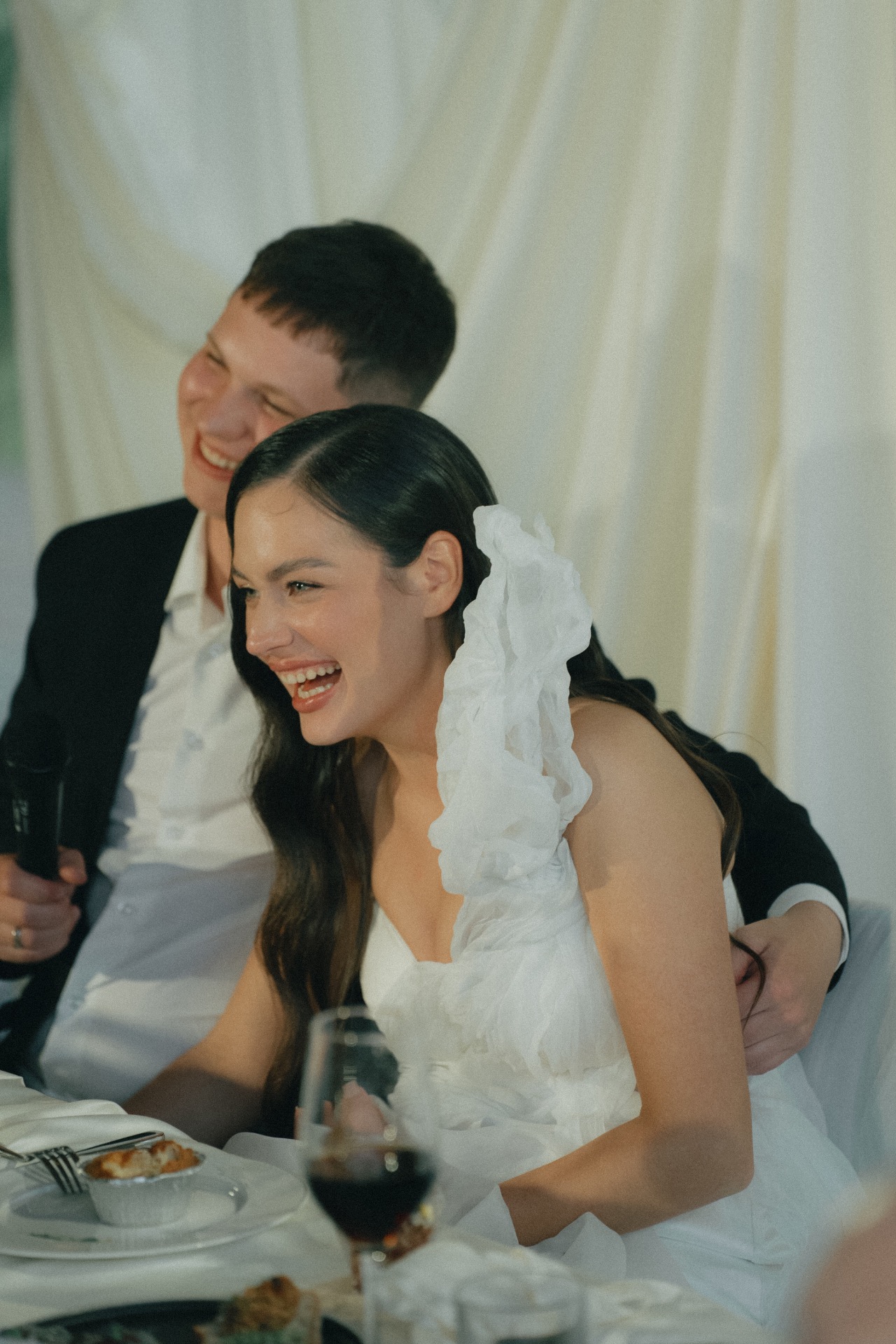 Мы решили разделить утренние сборы и банкет. Утром мы были предоставлены только друг другу: романтичная прогулка по полю, знакомство с животными и уединённый пикник. А вечером перед нами и гостями предстали величие новых форм, драпировок, текстур и света. Всё это стало воплощением союза двух противоположностей: простого и открытого — с творческой и глубокой натурой.