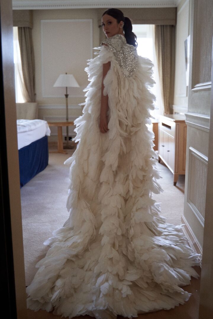 К утру невесты мы тоже подошли довольно нестандартно. Организатор посоветовала трёхметровую накидку в перьях. Конечно, выбор пал на неё!