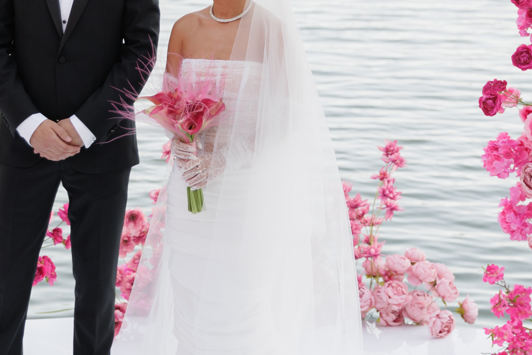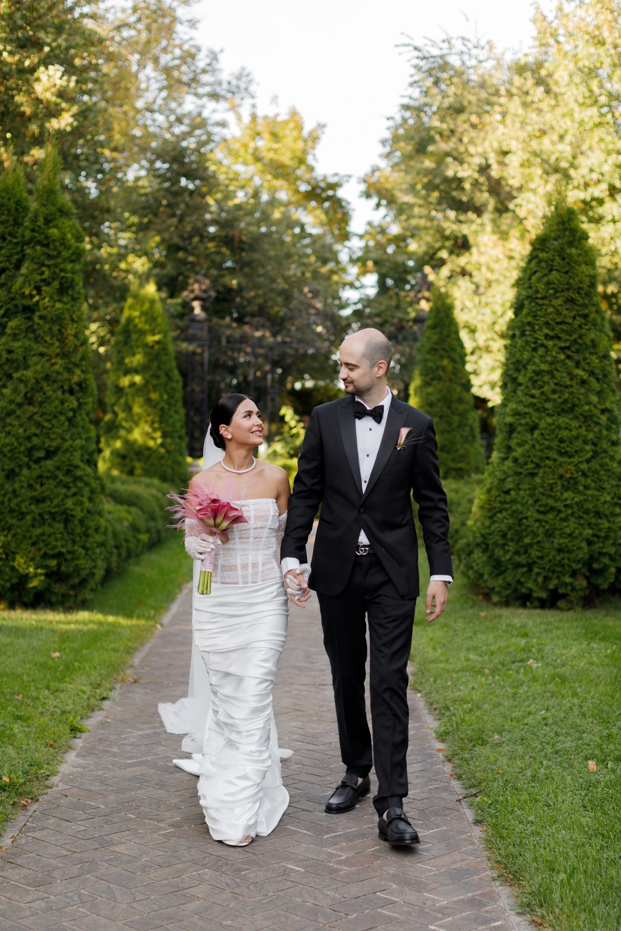 А вот у невесты невероятное чувств стиля, поэтому и образы были не банальными. Первое платье она сшила на заказ, а второе было розовым! Концепция свадьбы и образы невесты идеально дополняли друг друга.