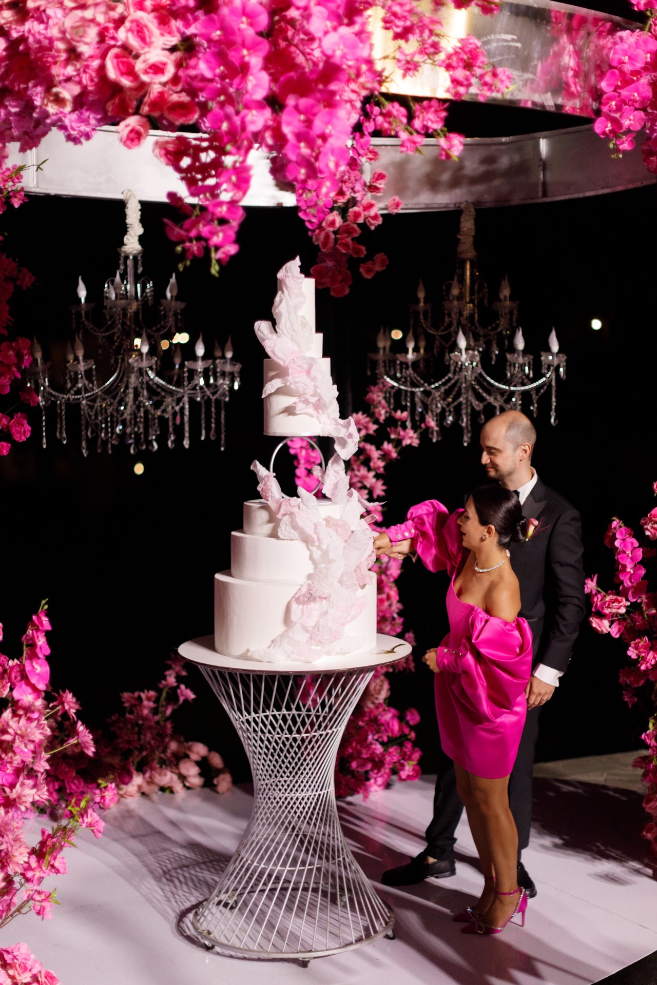 Если обратить внимание на декор, можно заметить, как красиво оформление утра невесты дополняло изгибы и ткань основного свадебного платья, в то время как образ на вечеринку идеально сочетался с зоной церемонии и яркими акцентами в декоре банкета.