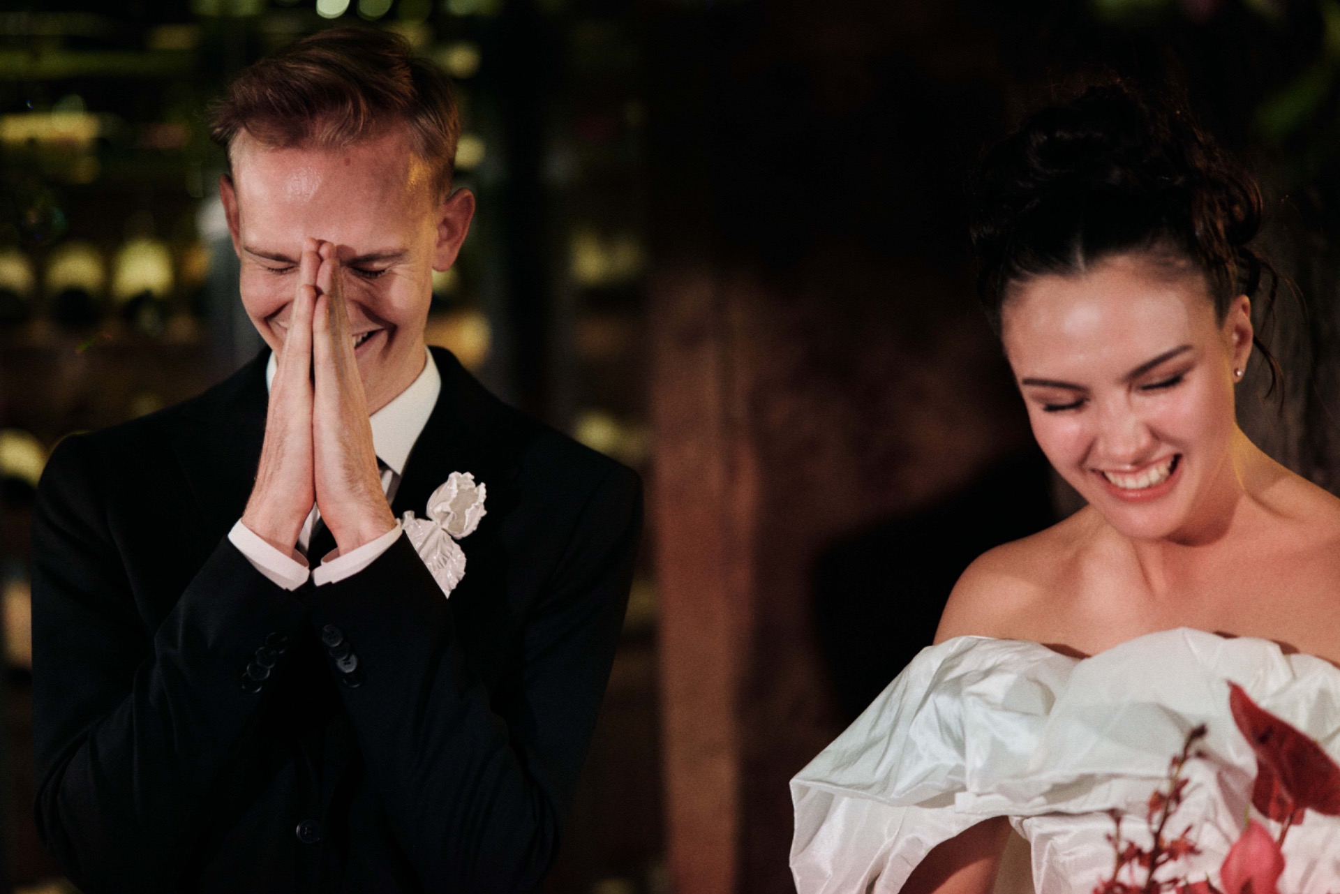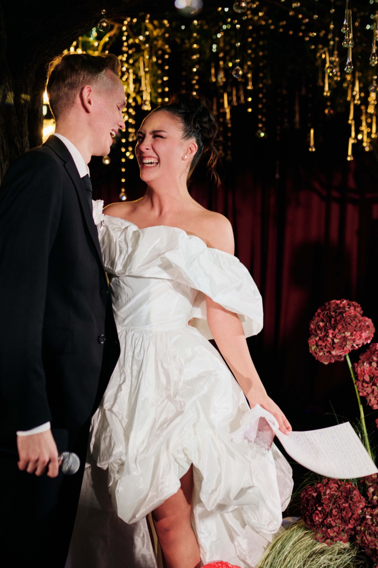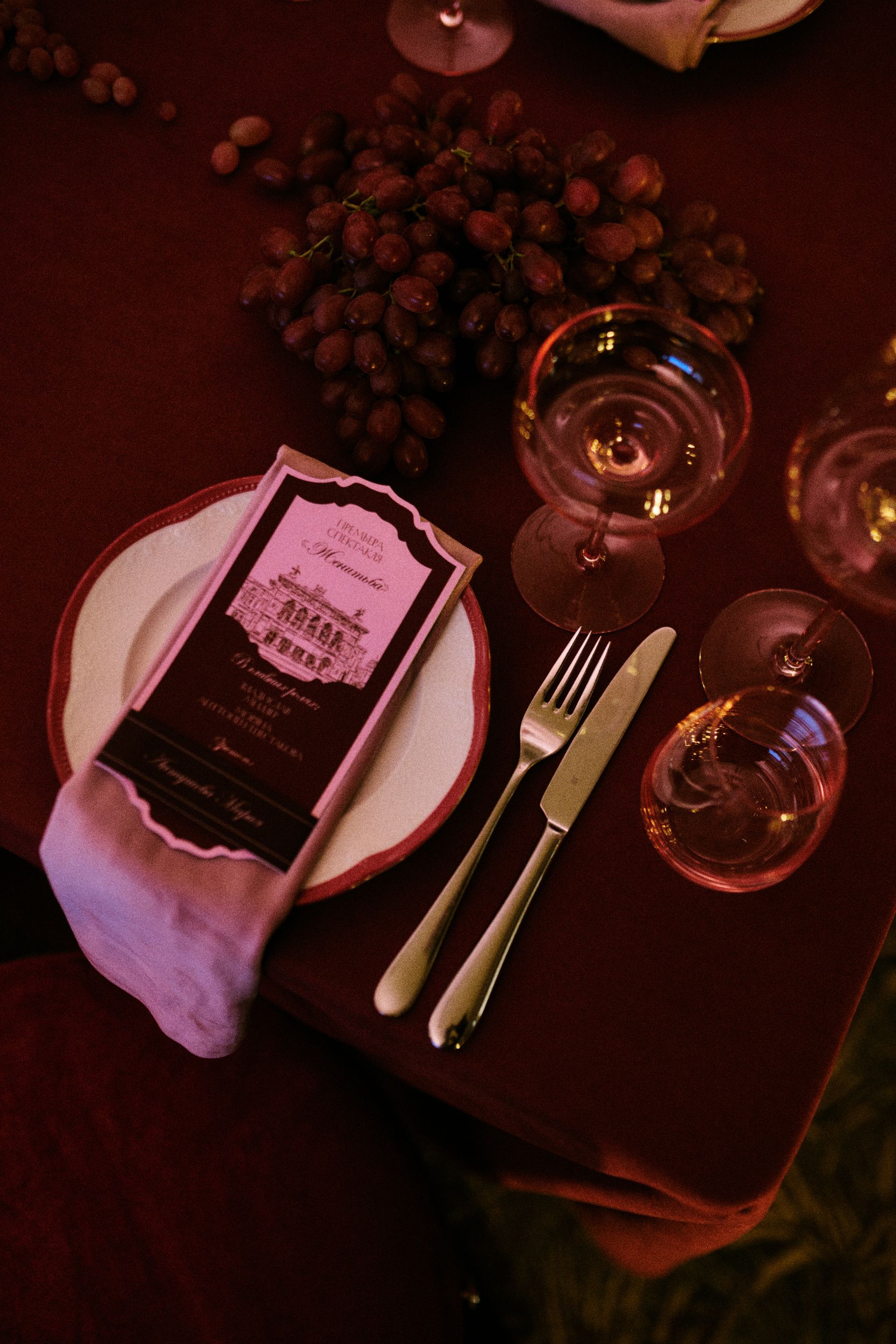 Так как мы с Владом оба актёры, было решено интегрировать нашу профессию в концепцию: таким образом свадьба стала постановкой нашего спектакля «Женитьба» (у нас даже был путеводитель вечера в формате театральной программки).