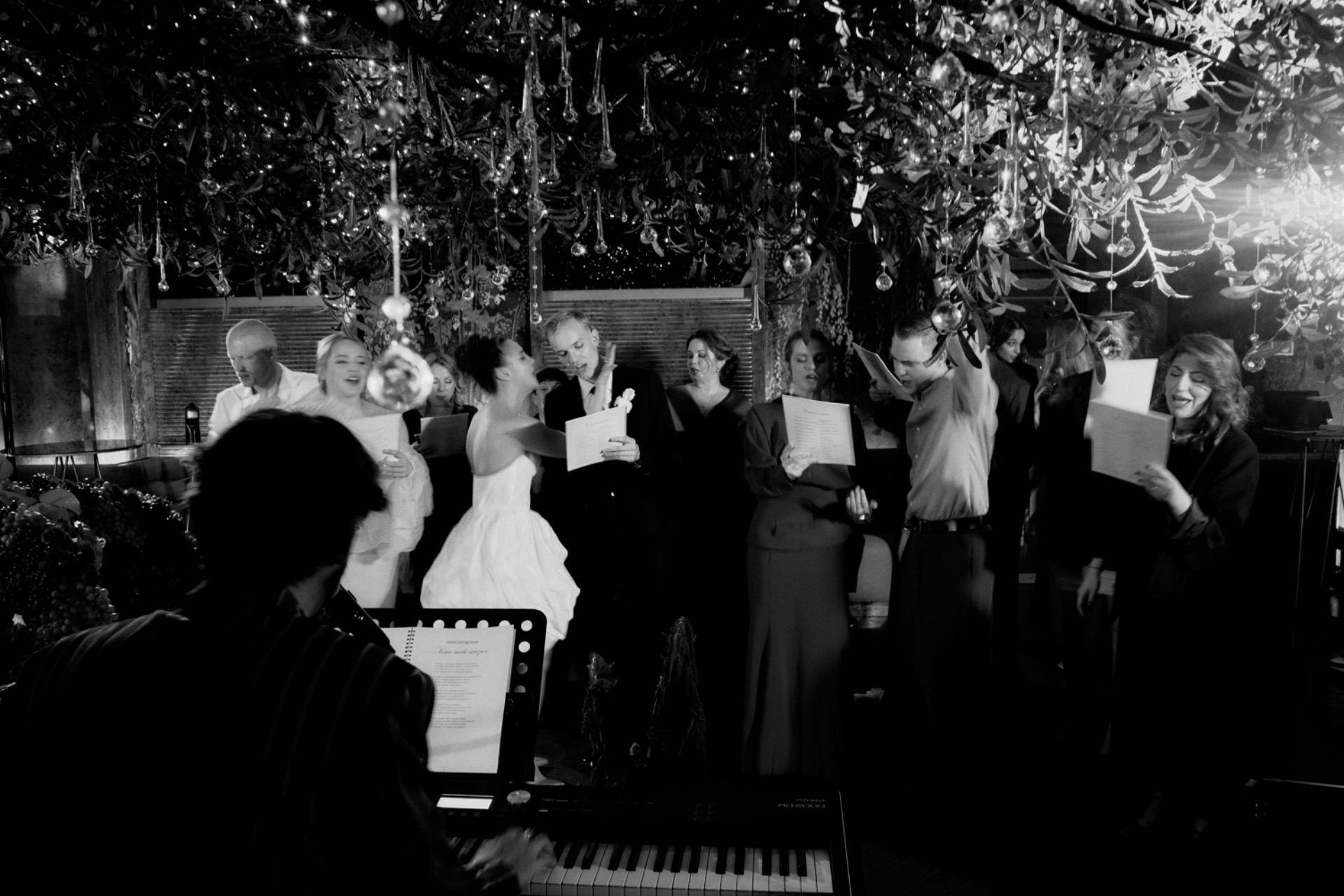 Необыкновенно тёплым моментом объединения гостей стало караоке под рояль. Эту идею я подсмотрела у своей подружки Зои Бербер и сразу поняла, что хочу повторить её на своей свадьбе.