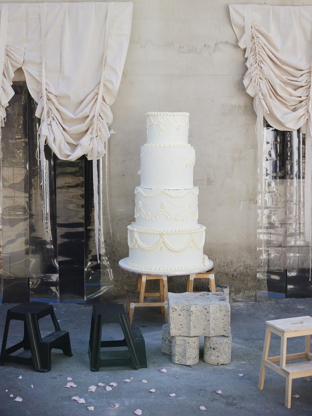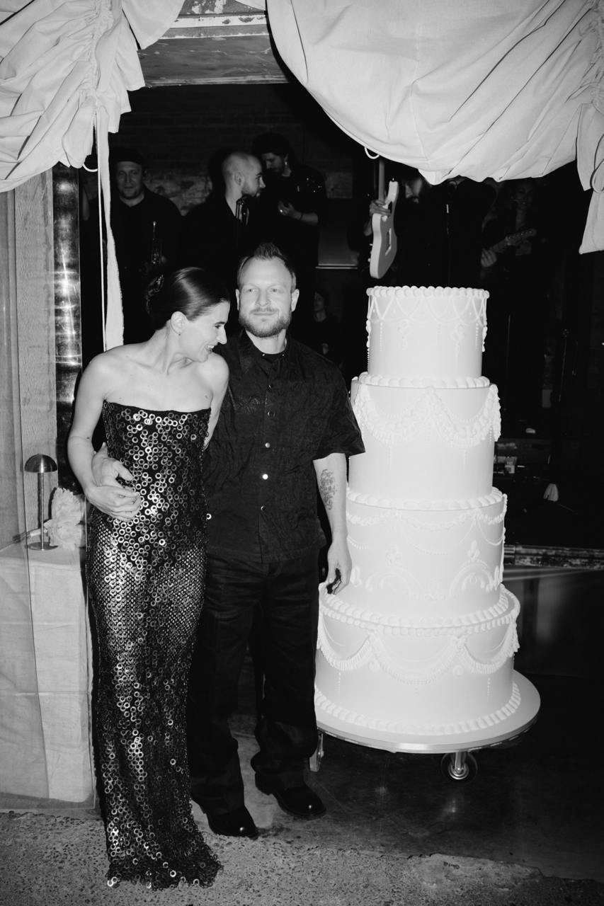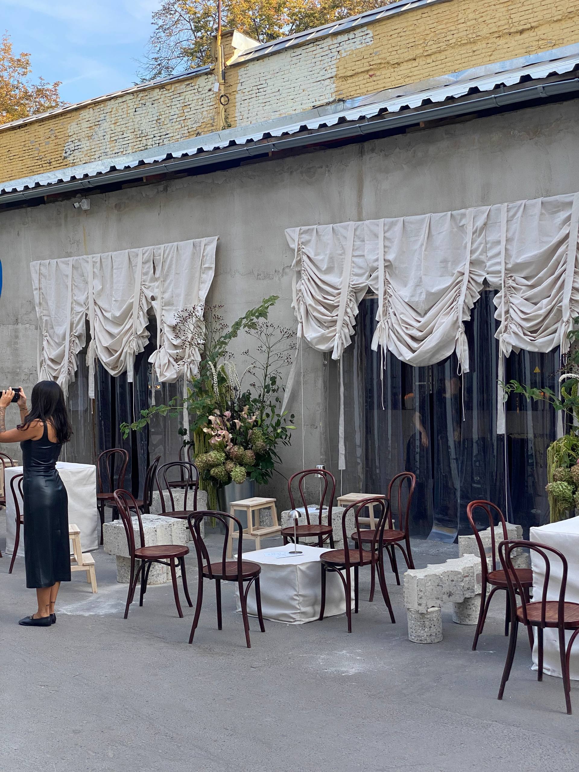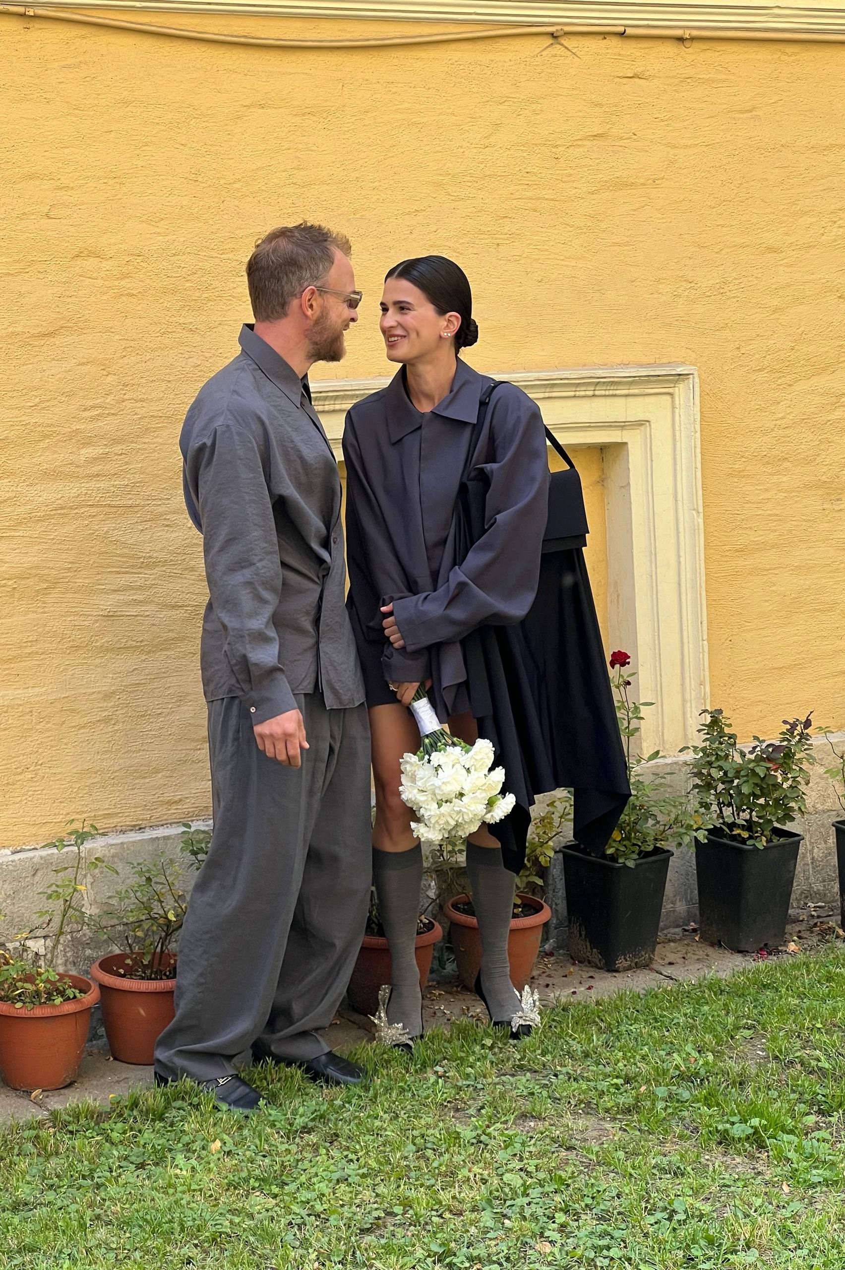 Настя, основатель тг-канала «Без фильтров», рассказала, что у невесты было 2 образа. Основным стало платье-рубашка от дизайнера Ильи Мигмуна — с драпировками, шлейфом, акцентным воротником, внутренним коническим бра в духе Мадонны и пышной фатой. Вторым образом стало корсетное платье в пол с внутренним боди и множеством металлических пластин от молодого кубино-испанского дизайнера Хавьера Коллазо.