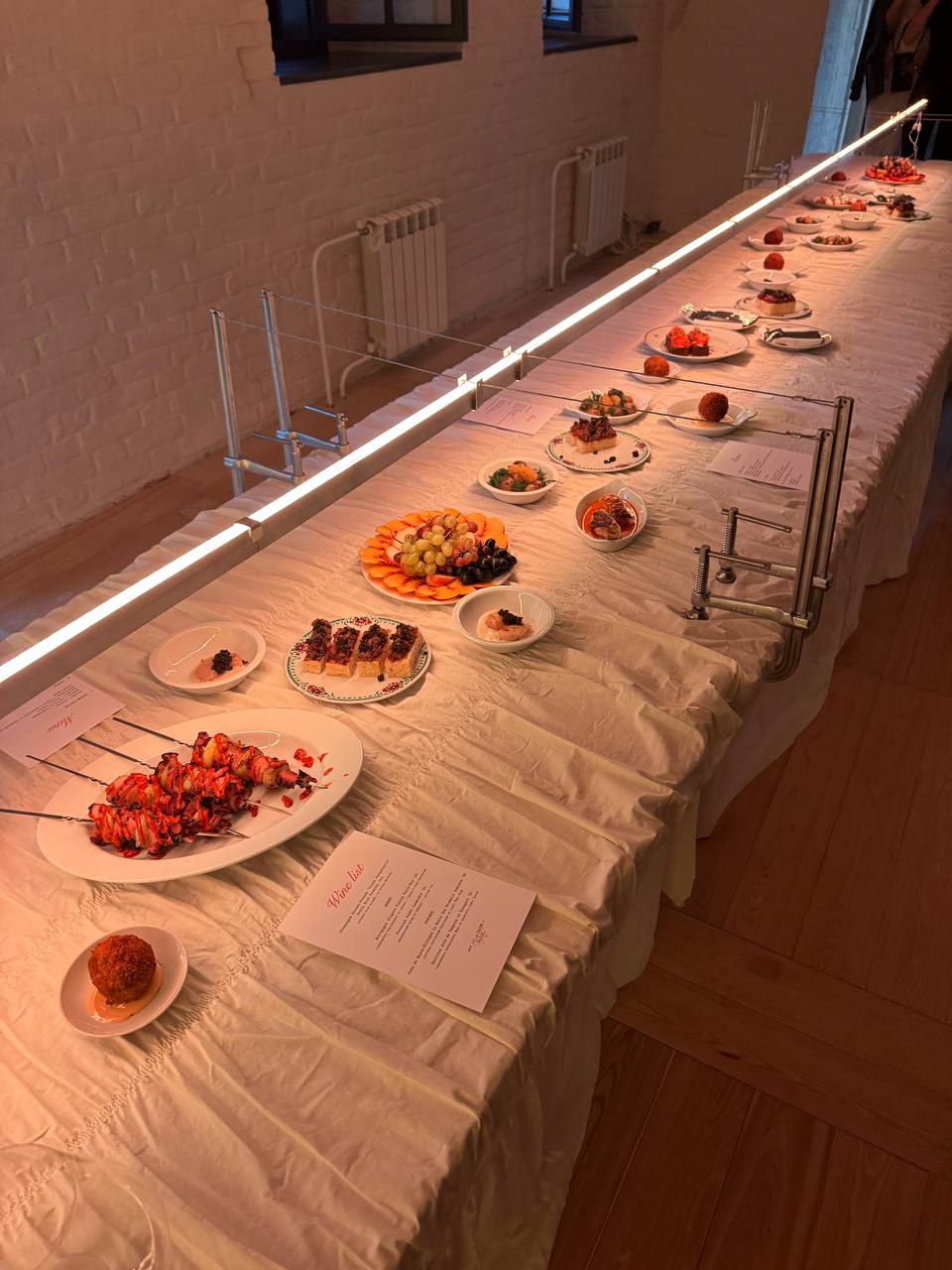 Гостей угощали мини-каравайчиками и пиццей под аккомпанемент джазовой музыки, а глаз радовали цветочные композиции от цветочной мастерской «Собран в саду».