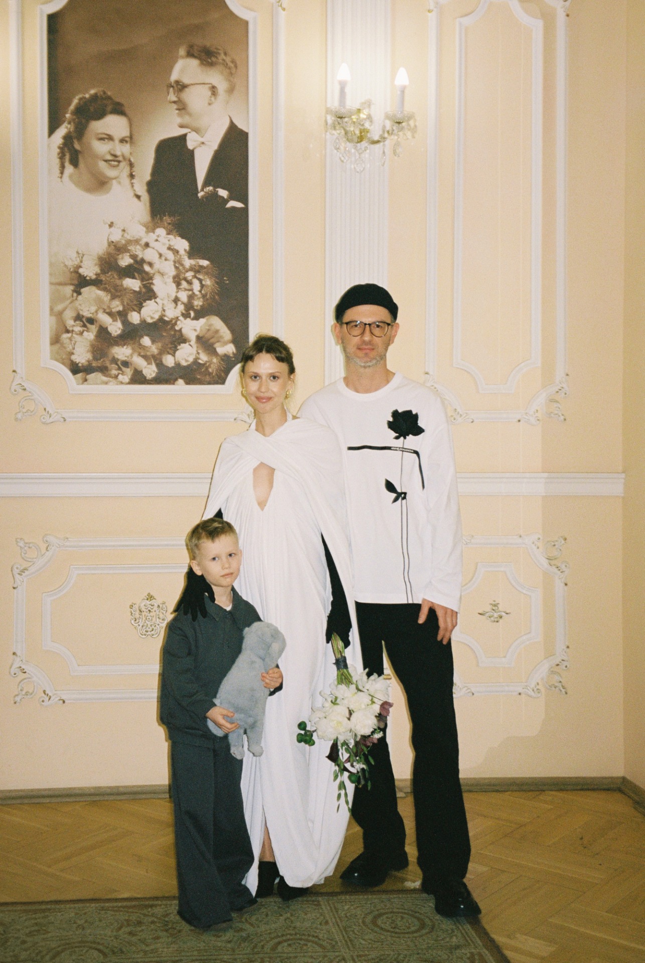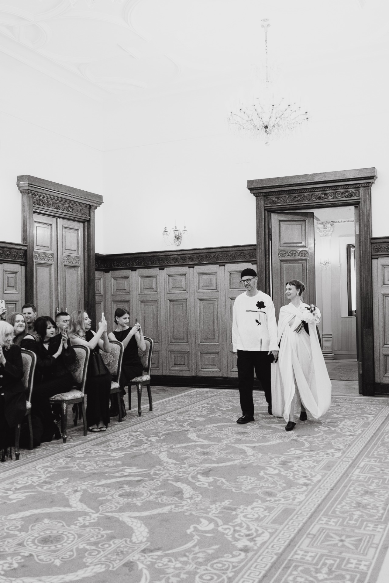 Церемония прошла в ЗАГСе, где все гости были в чёрном, благодаря этому мы выглядели особенно торжественно.