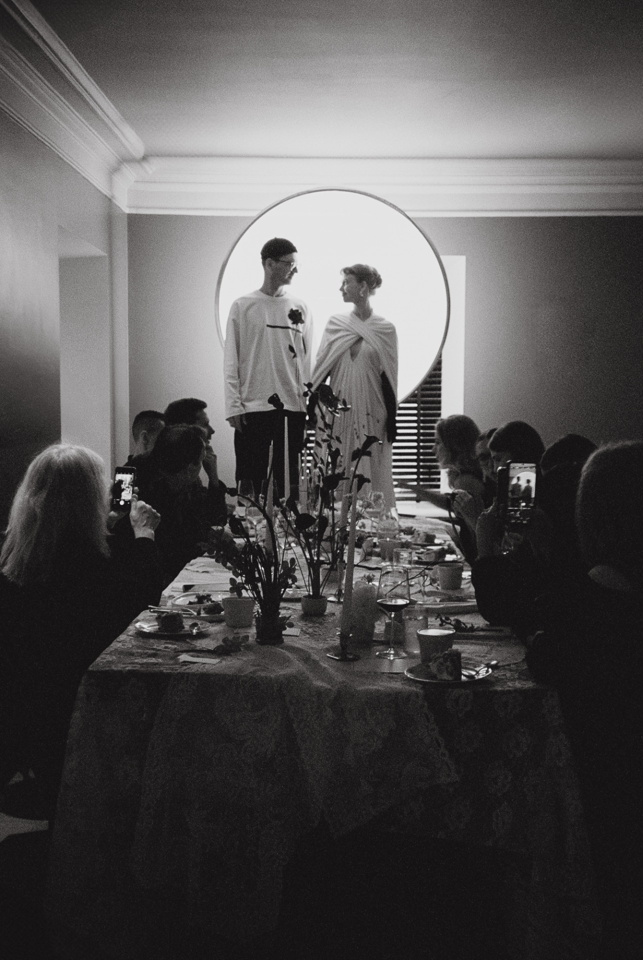 Мне близка эстетика контрастов: женское и мужское, чёрное и белое, прошлое и настоящее. Именно это настроение мы постарались передать в оформлении. Винтажные скатерти, лаконичный декор и приглушённый свет создавали атмосферу уюта и глубины.