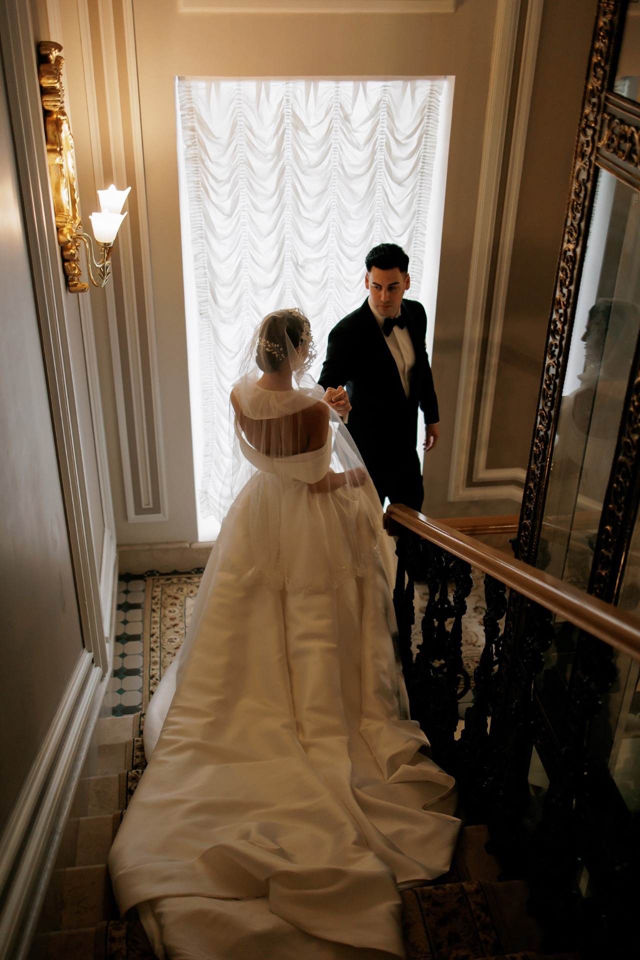 Кириллу мы выбрали идеальный классический смокинг с бабочкой и аксельбантом — сдержанный, элегантный, идеально дополняющий мой образ.