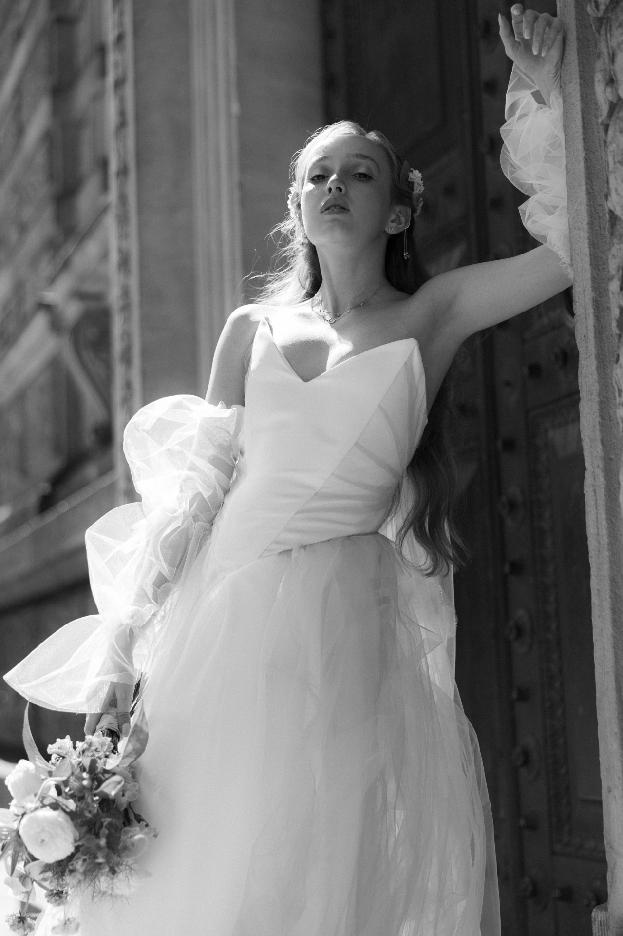 Для утра невесты был собран образ специально под фату, но! Случился казус во время сборов, и на съёмку утра невесты у нас было всего 15 минут. Но фотографии всё равно вышли волшебными.