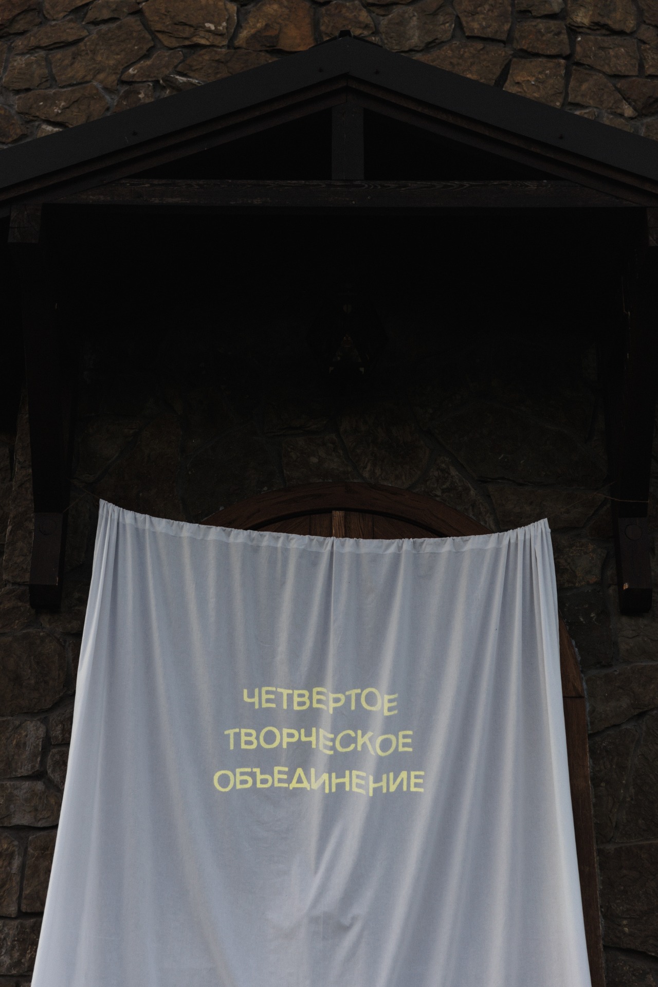 Маша и команда также сделали лёгкую инсталляцию из ткани, куда вечером внезапно пустили фильм «Зеркало» Тарковского через проектор. Это ещё одна внутренняя отсылка к свиданию на котором мы влюблялись!