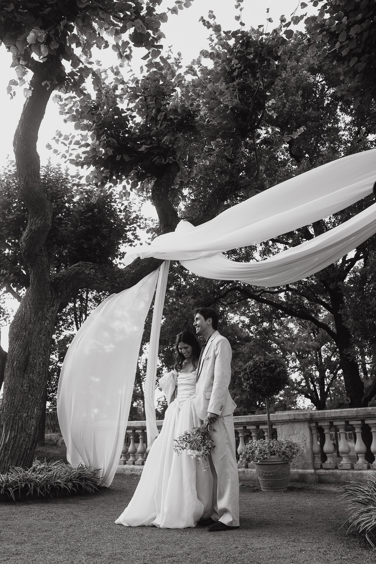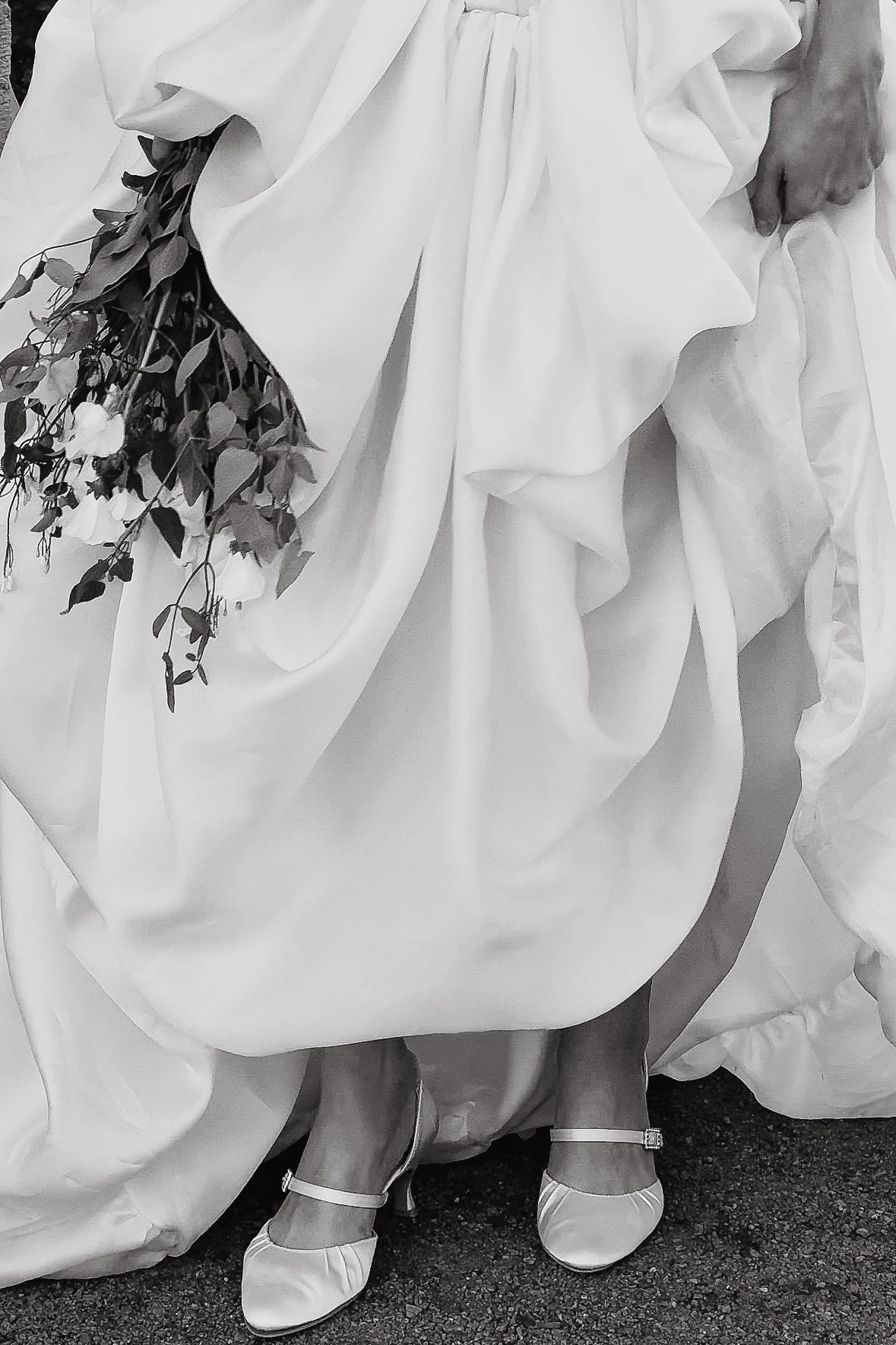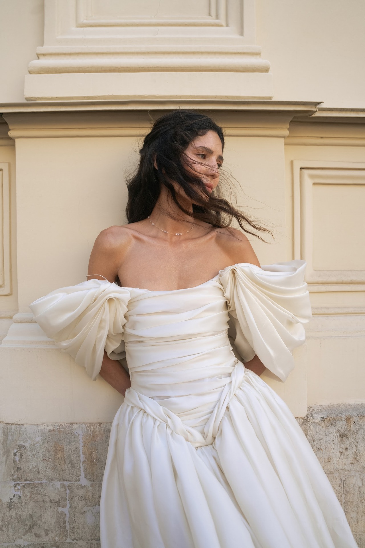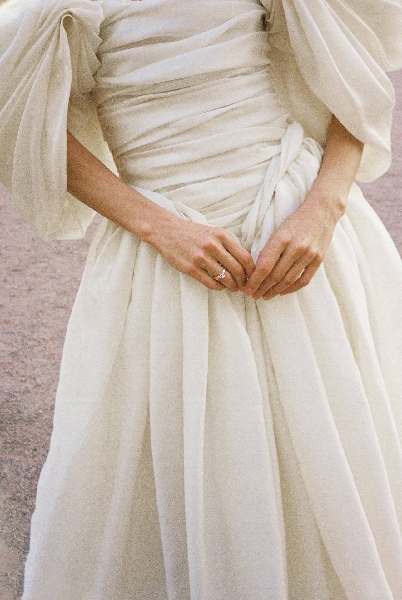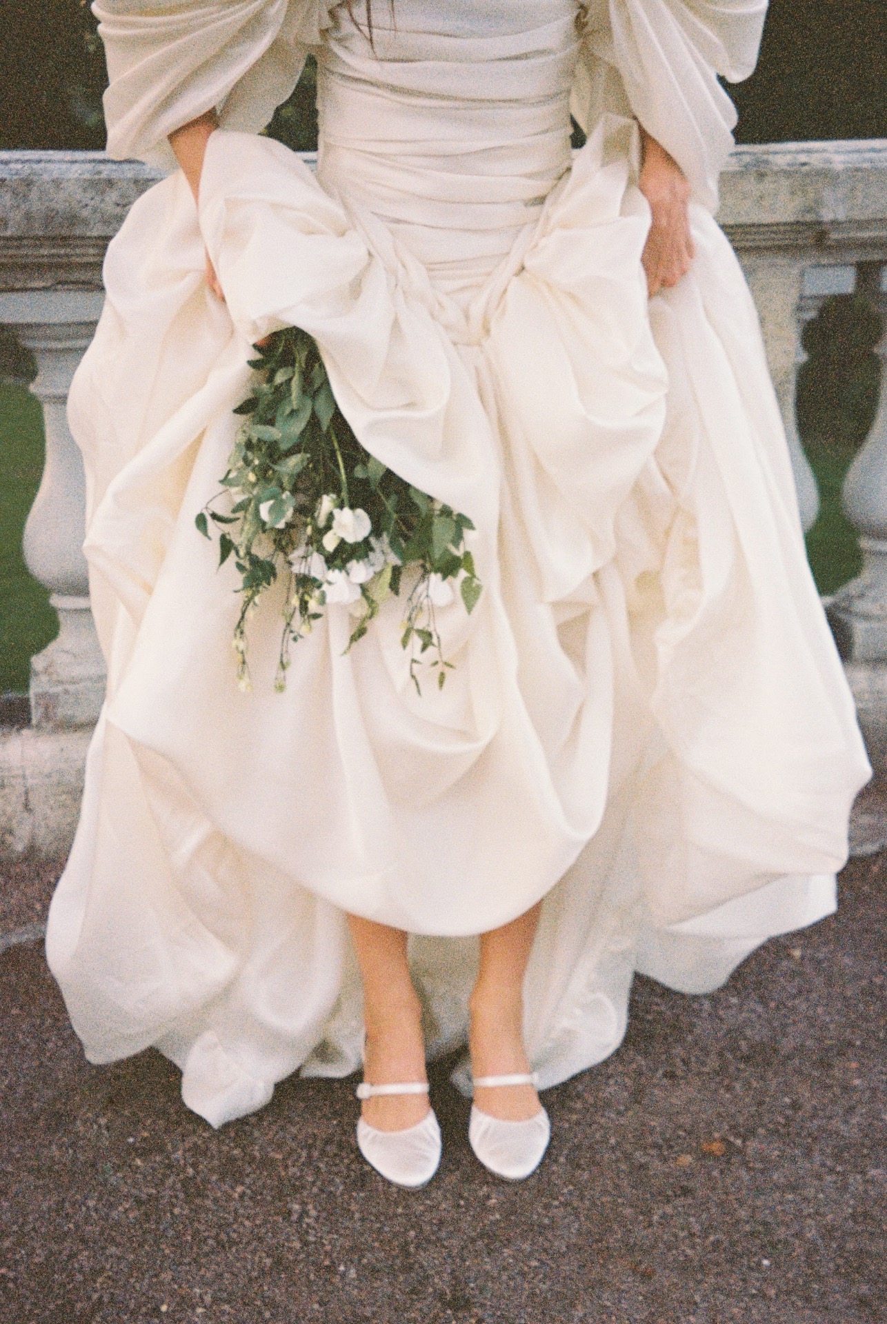 Моё платье было создано брендом Murashka. Есть вещи, люди, события, про которые человек может сказать: «Моё на 100%». Вот так я могу сказать про своё платье. У меня была всего одна примерка: я полетела в Москву, пришла в их ателье с окнами на Пушкинский музей и примерила его самым первым. Меня будто вело к нему, и я сразу знала: какими бы красивыми ни были остальные платья, моё — именно это. Второе платье было от питерского бренда myseasons, с которым я работала ранее. Оно идеально подходило не только для свадьбы, но и для наших будущих путешествий в Прованс или на Сицилию. Образ дополняли: атласные туфельки, найденные на Авито, они продержались почти всю свадьбу, но к финалу вечера подошва всё же сдалась перед гравием и песком дорожек сада; и украшения, сделанные на заказ.