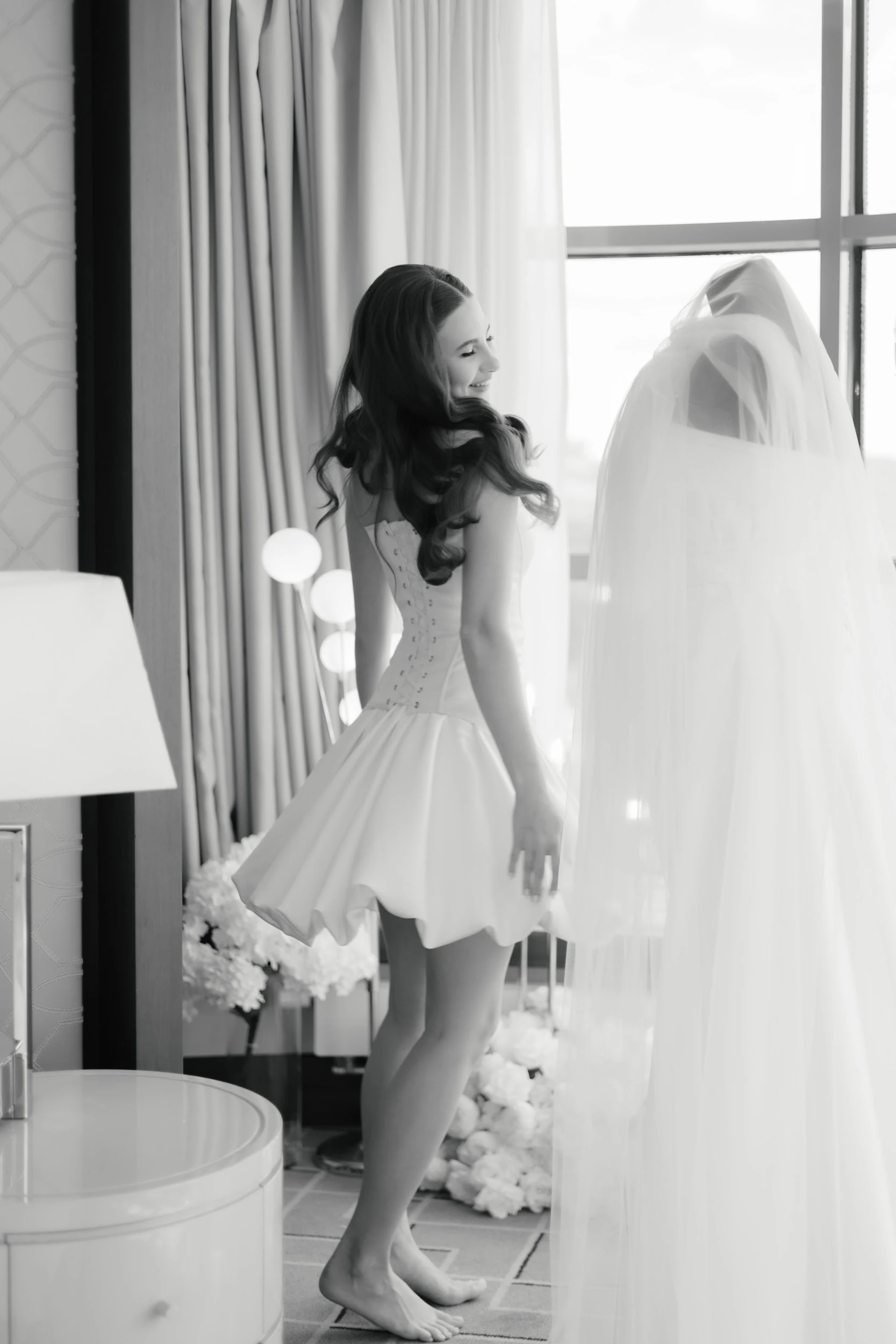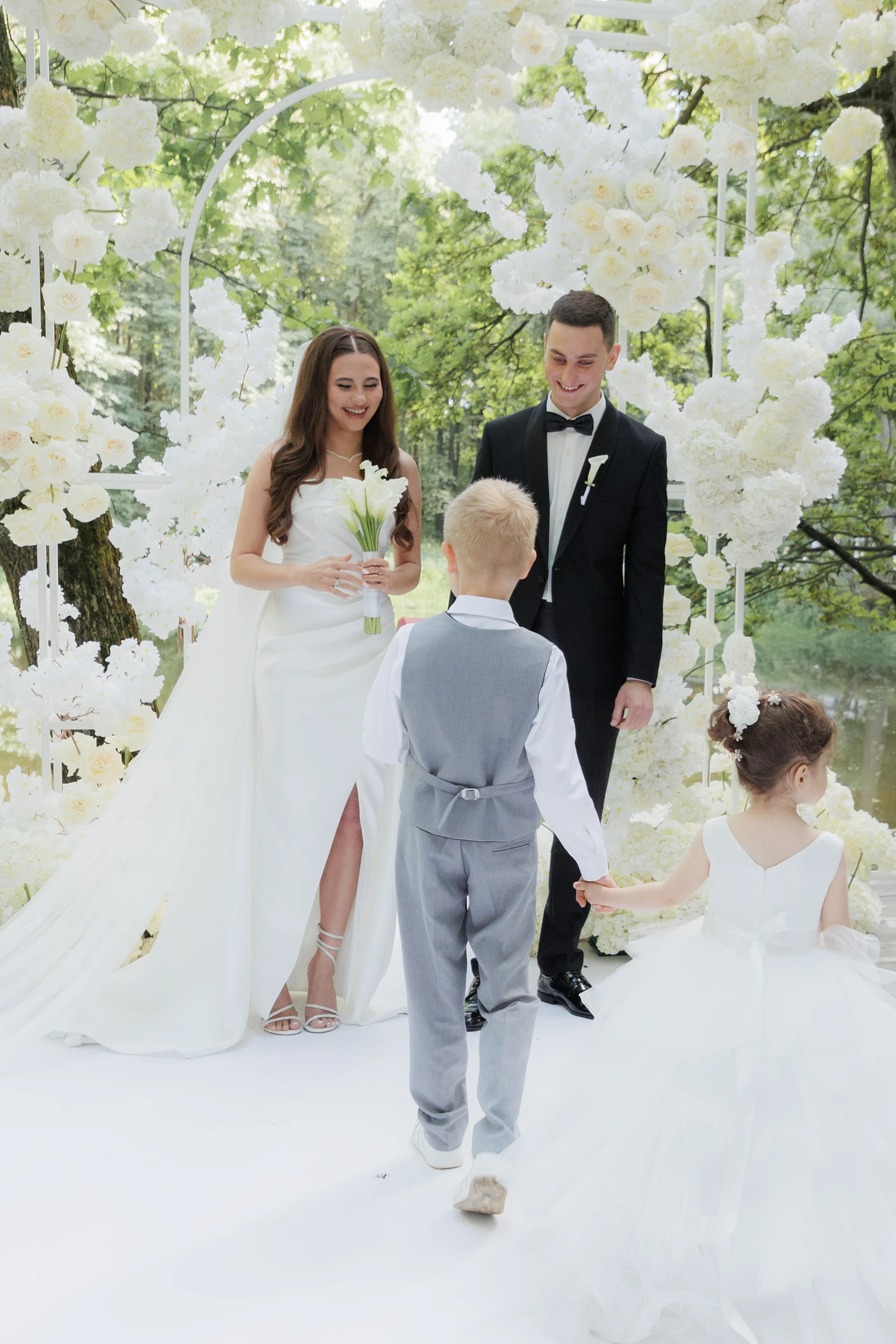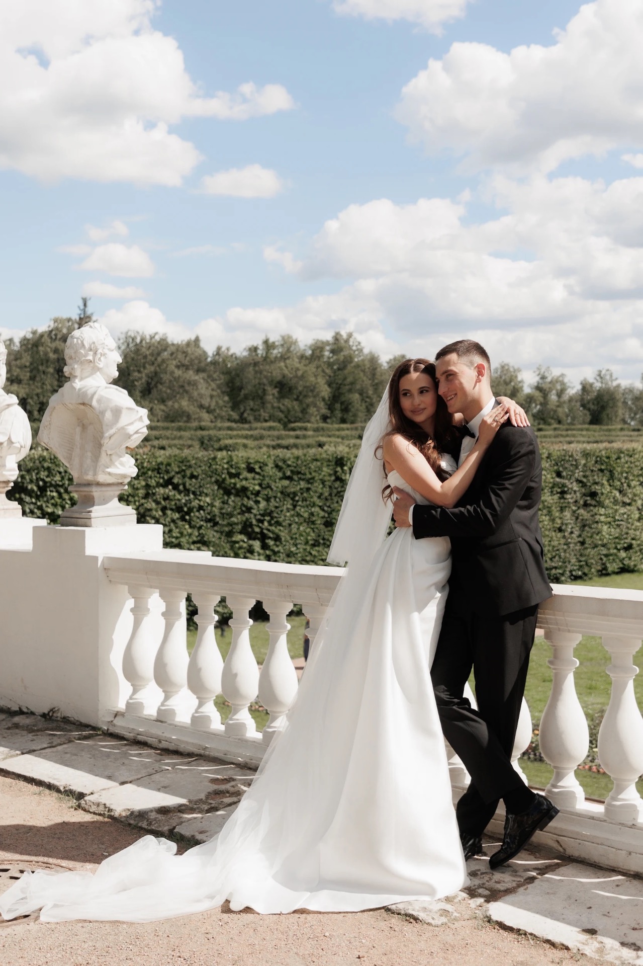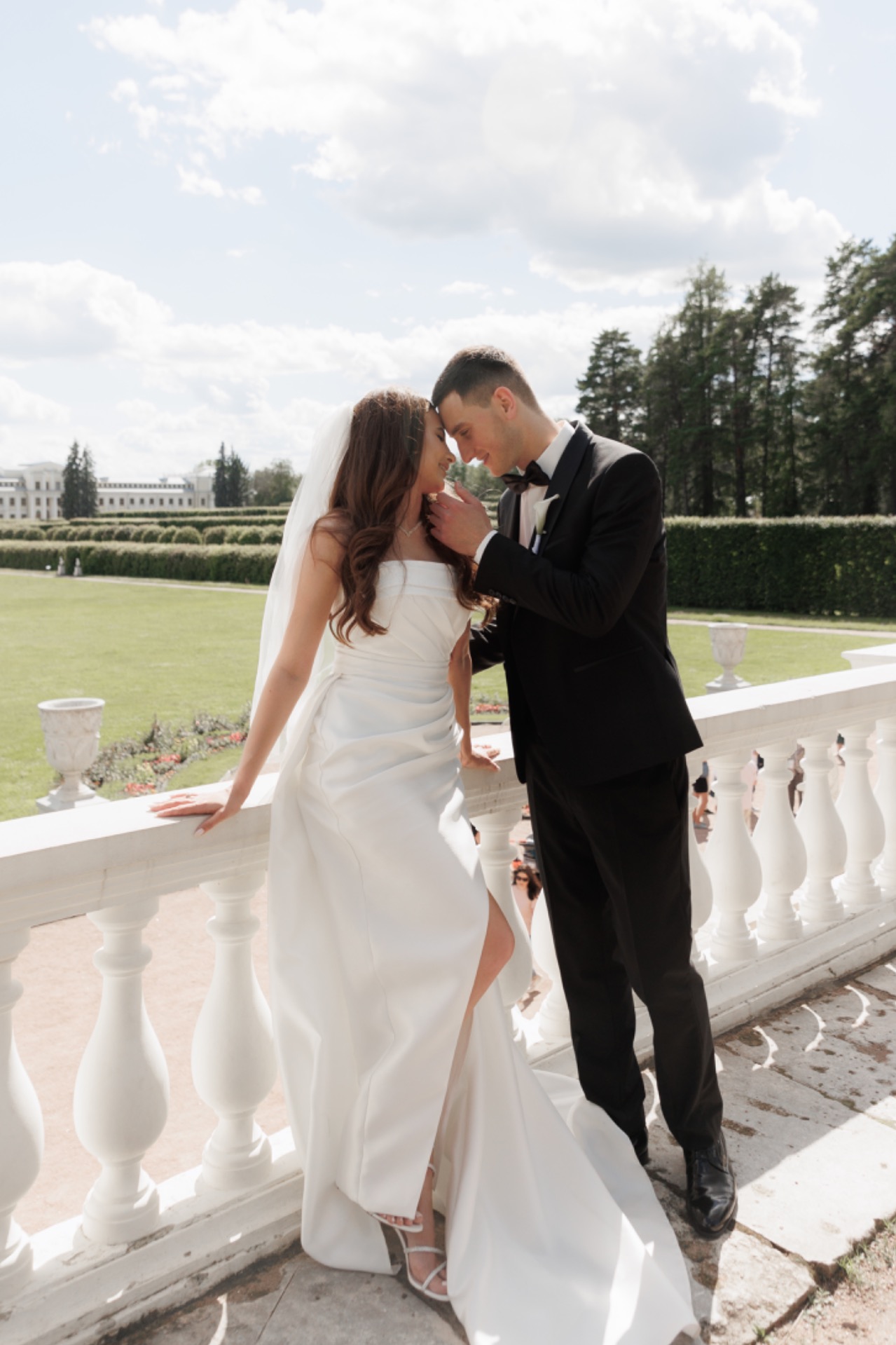 Образ невесты я выбрала ещё за полгода до торжества. Оба своих платья я приобрела в «Доме Весты» — у них действительно отличный сервис и прекрасный выбор. Первое платье было основным — с длинным шлейфом и из плотной ткани. Второе платье — более коктейльное, идеально подходящее для вечерней части. Оно изящно подчеркнуло фигуру, и в нём было очень комфортно танцевать и двигаться.