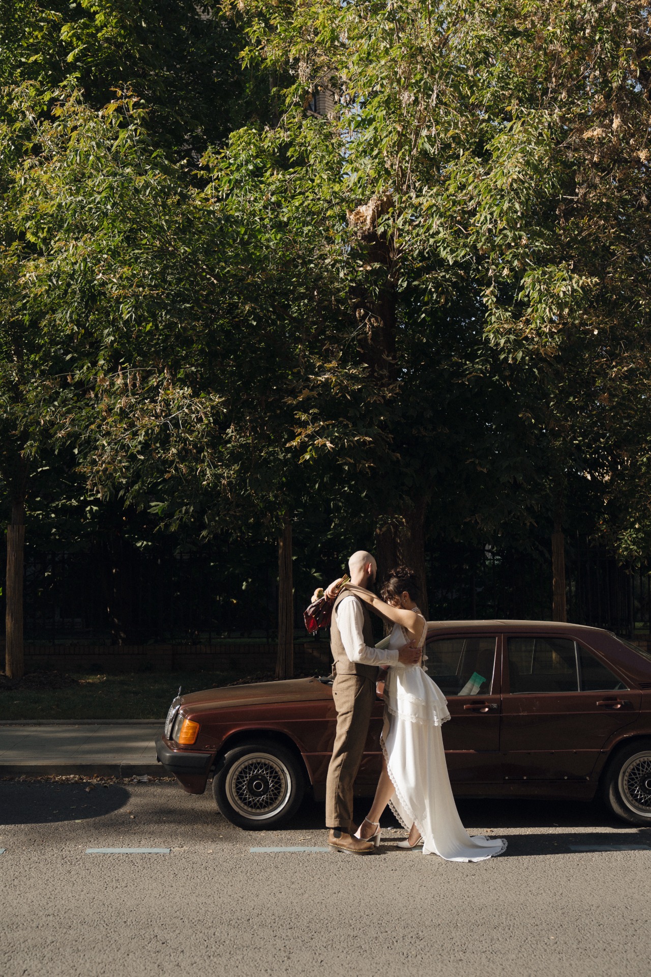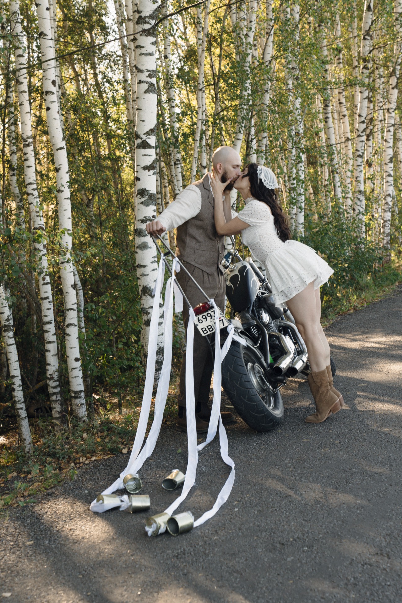 Обсудив, мы поняли, что не хотим тянуть со свадьбой. Конец мая, впереди лето, надо решаться. Я сразу написала Наташе, нашему фотографу и была уверена, здесь помогут. Изначально, я не планировала торжества, но, описав концепт: яркие, натуральные ткани, стиль 70-х, мотоциклы, как проявление свободы, в нас вселили уверенность делать праздник и разделять свадьбу на два дня. Наташа так быстро собрала чудесную команду, что спустя несколько дней у нас был утверждён стилист, организатор, видеограф и кондитер. В итоге на подготовку ушло 2,5 месяца. Организатор также декорировала торжество и готовила флористику.