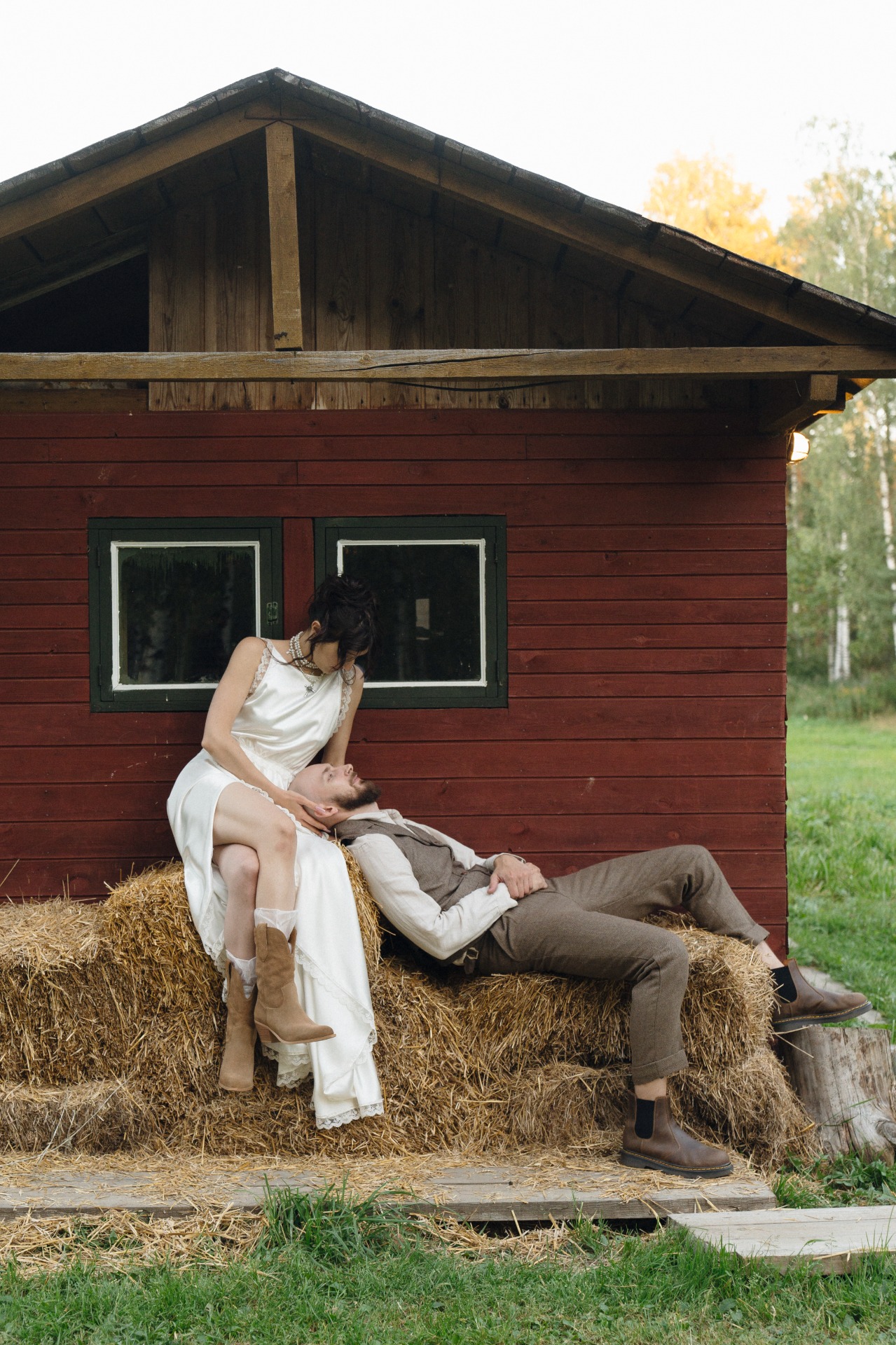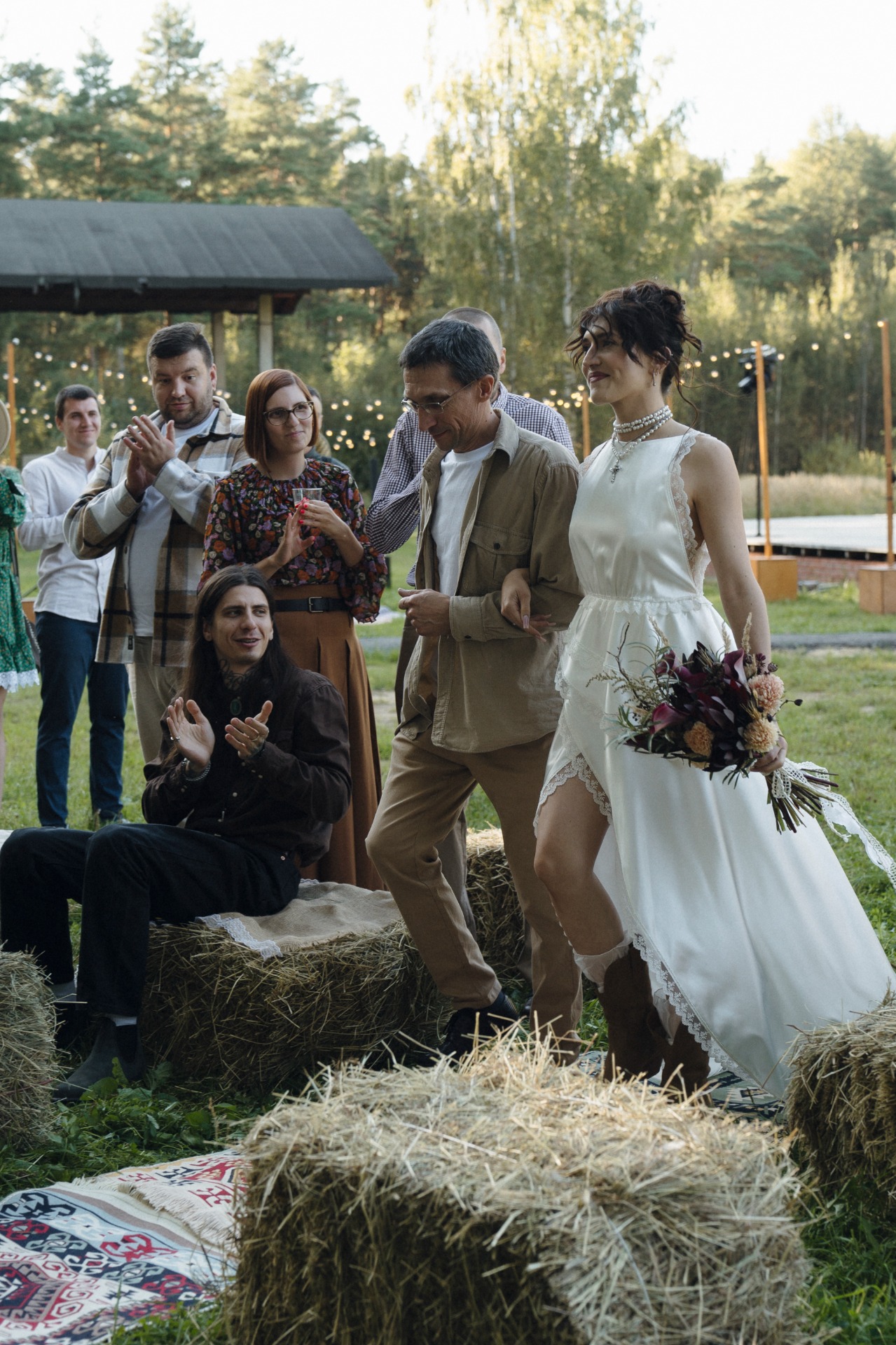 Мы с Саней вечерами перебирали Pinterest и делились всем, что нравится. Тачки с алкоголем и льдом, сено для рассадки гостей, кружевные салфетки, зона для мотоциклов, которые стоят на коврах, никакого банкета и минимум традиций. Пригласительные с Сашей мы сделали сами в электронном виде. С младшей сестрой мы реализовали карточки для клятв.