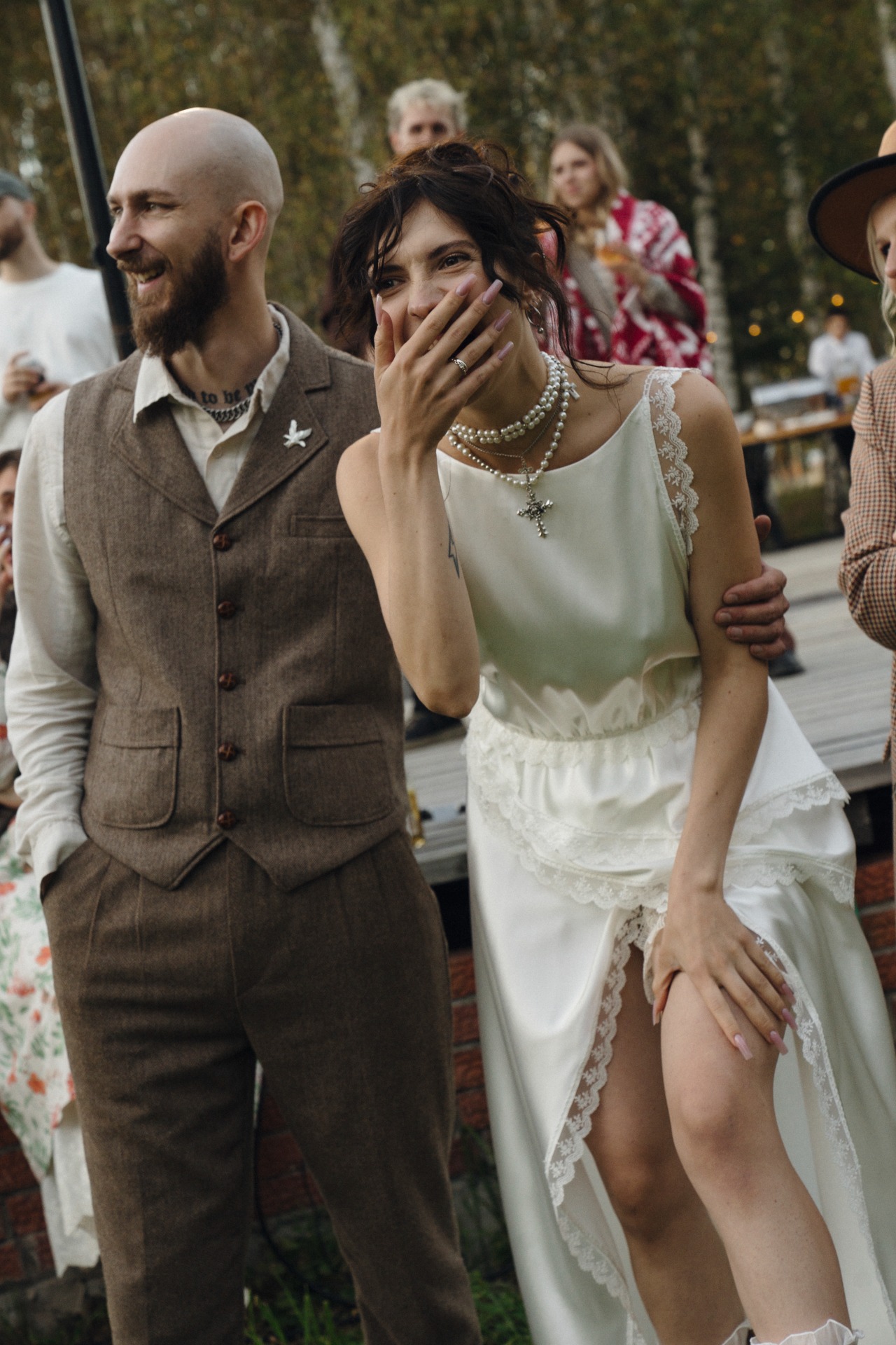 На момент свадьбы мы были вместе 2 года, а вот знакомы 8 лет. Знали о существовании друг друга в общей компании, но никогда не общались. В мае 2022, я, после тяжёлых событий, решилась подключиться к уже запланированной друзьями поездке в Санкт-Петербург. Туда же спонтанно подключился и Саня.
