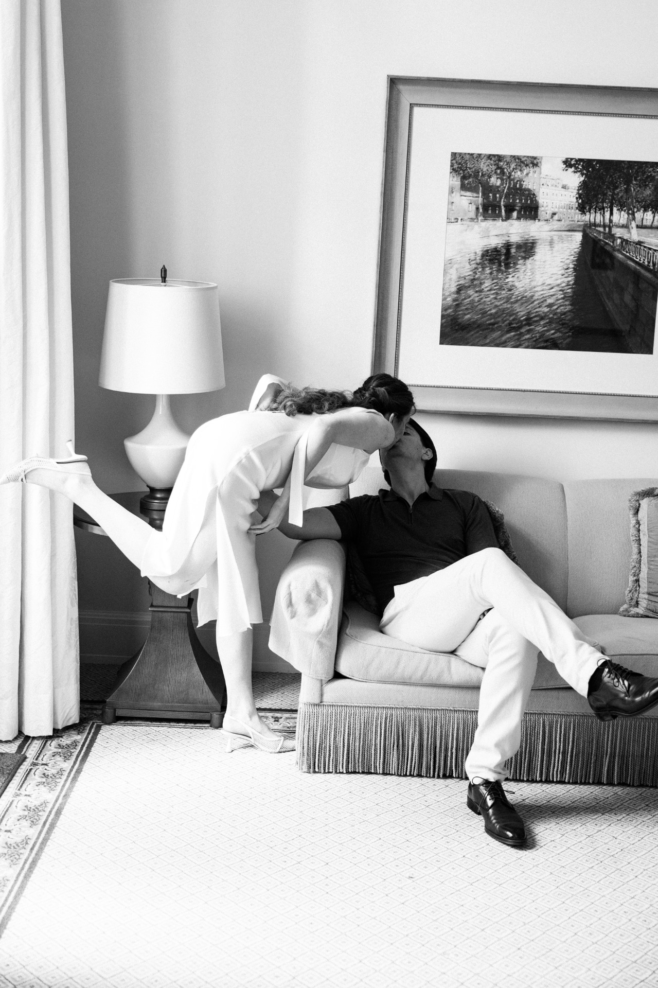 Костюм для жениха ребята выбирали в Лондоне. В итоге остановились на классической тройке нейтрального, но необычного оттенка. Это был элегантный вариант, который идеально вписался в стиль пары.