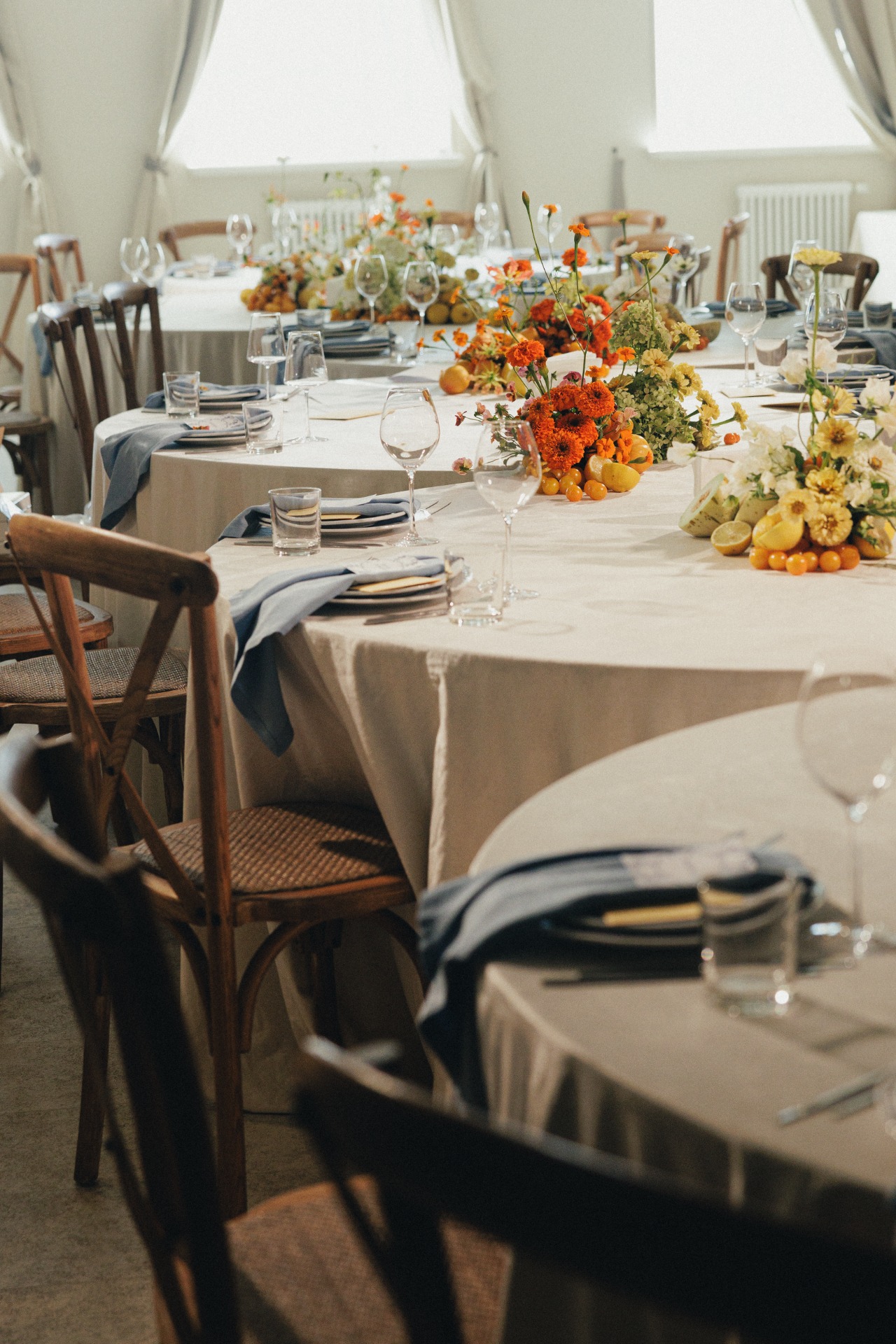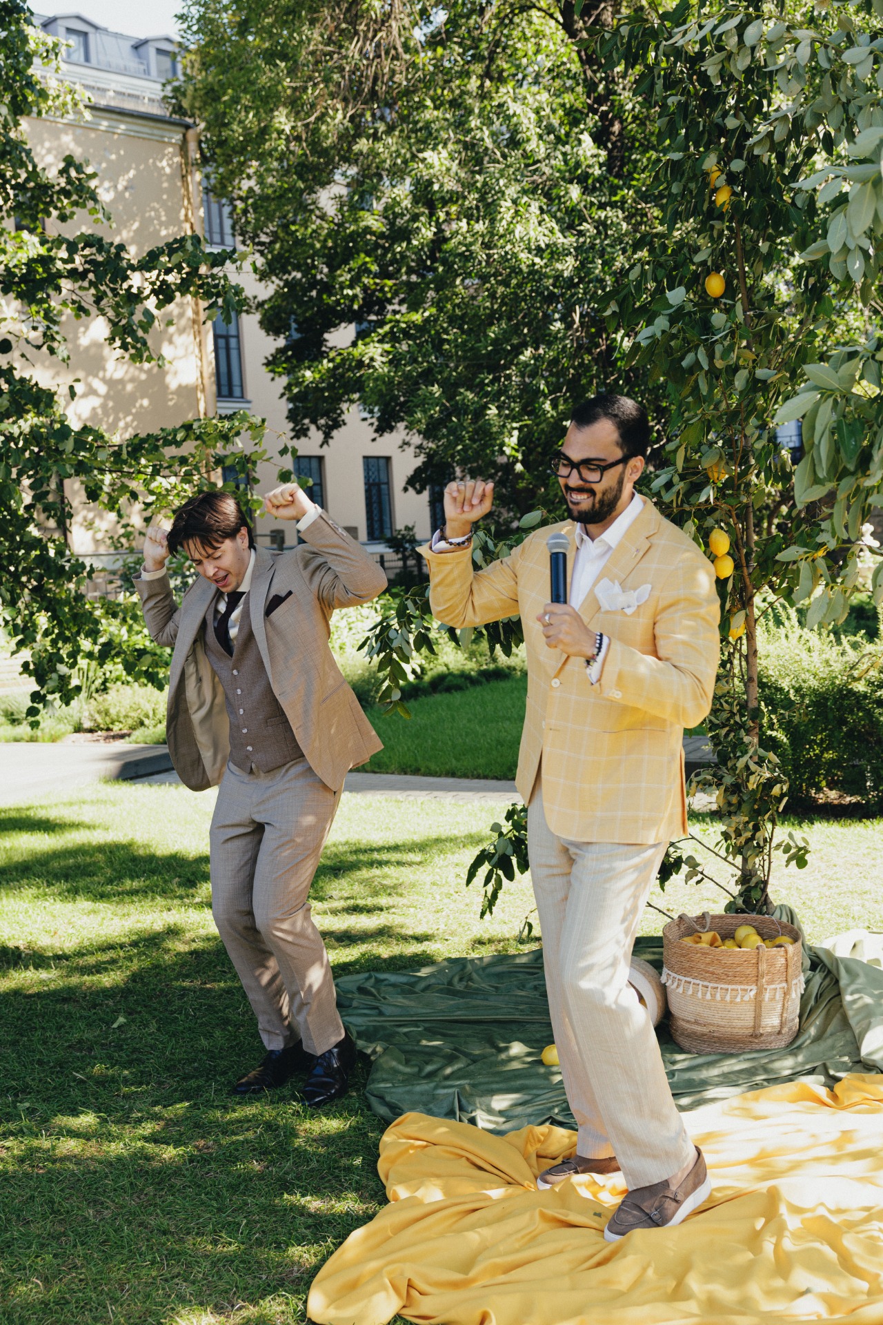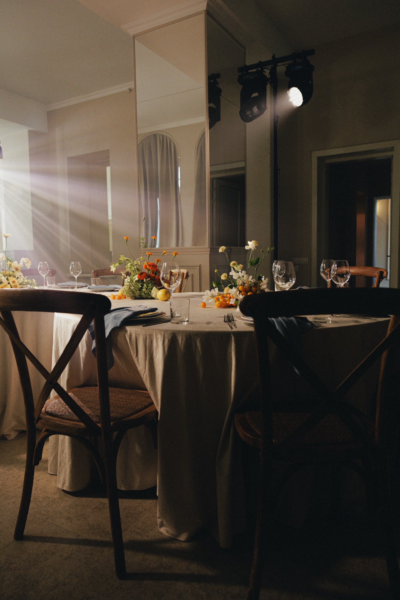 Главная задача состояла в том, чтобы сделать популярную итальянскую тематику индивидуальной, тёплой и узнаваемой именно для них. Мы стремились показать Италию по-новому: не через яркий деревенский колорит, а через особую эстетику. Площадка — особняк в центре Петербурга, добавила празднику классического лоска, что только усилило идею: создать итальянскую атмосферу, но в элегантной подаче. Так получились два ключевых акцента: душевный ужин для самых близких и трогательная церемония любви под лимонным деревом.