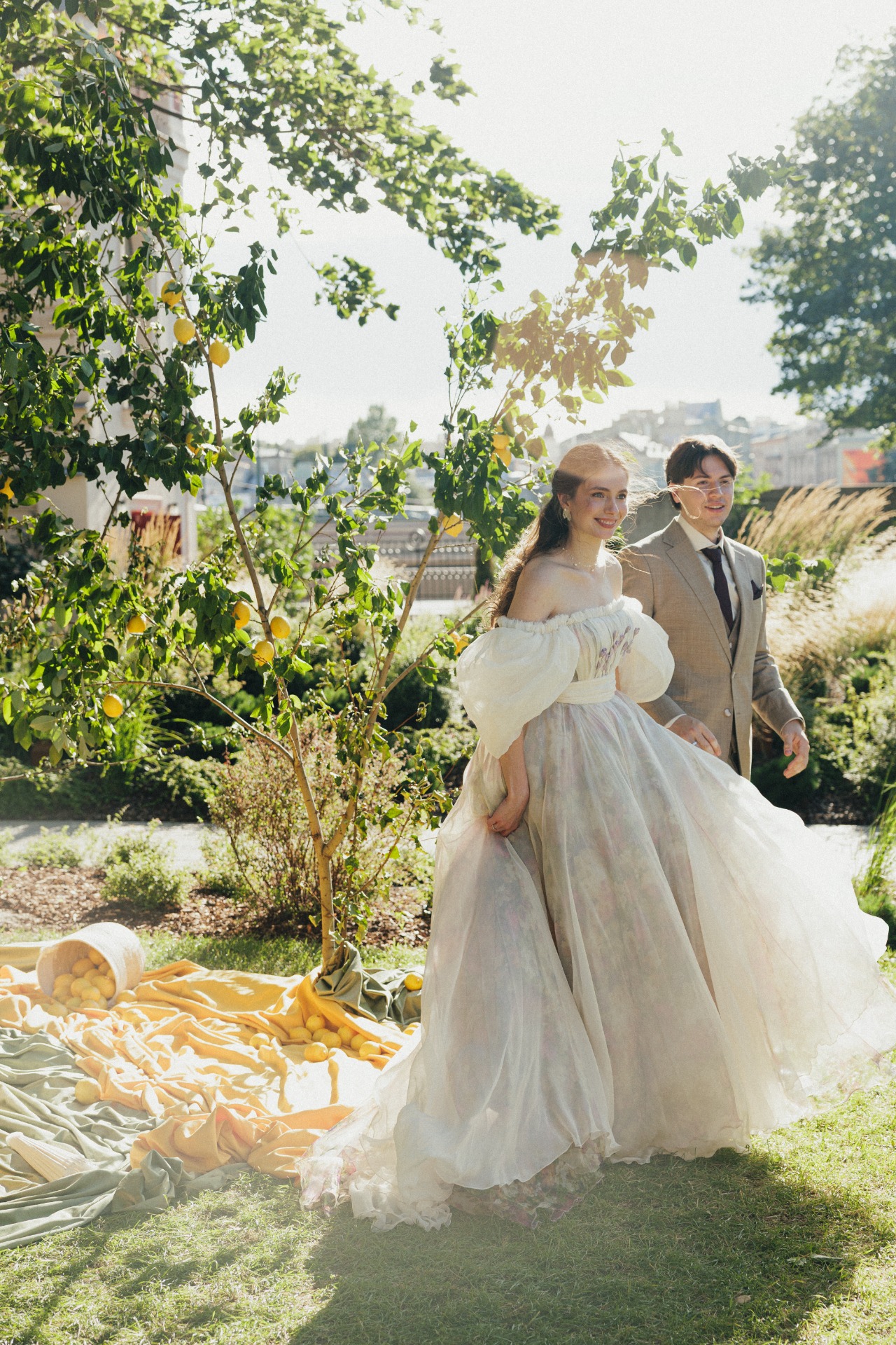 Ребята начали готовиться к свадьбе летом 2024 года, к тому моменту они уже точно знали, что хотят устроить шумный праздник в сицилийском стиле. Несмотря на то, что подготовка проходила дистанционно из Лондона, процесс шёл спокойно, ведь времени у нас было достаточно.