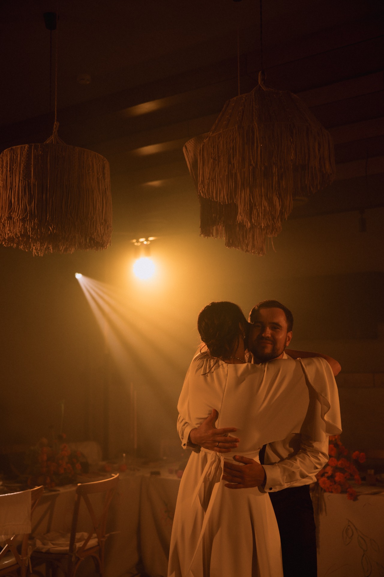 Второе — платье, в котором была на росписи. В него переоделась на танец и осталась до конца свадьбы. В нём было невероятно удобно танцевать. Дополнила украшениями от бренда из Пензы, мне было важно выбрать детали, связанные с городом Сережи.