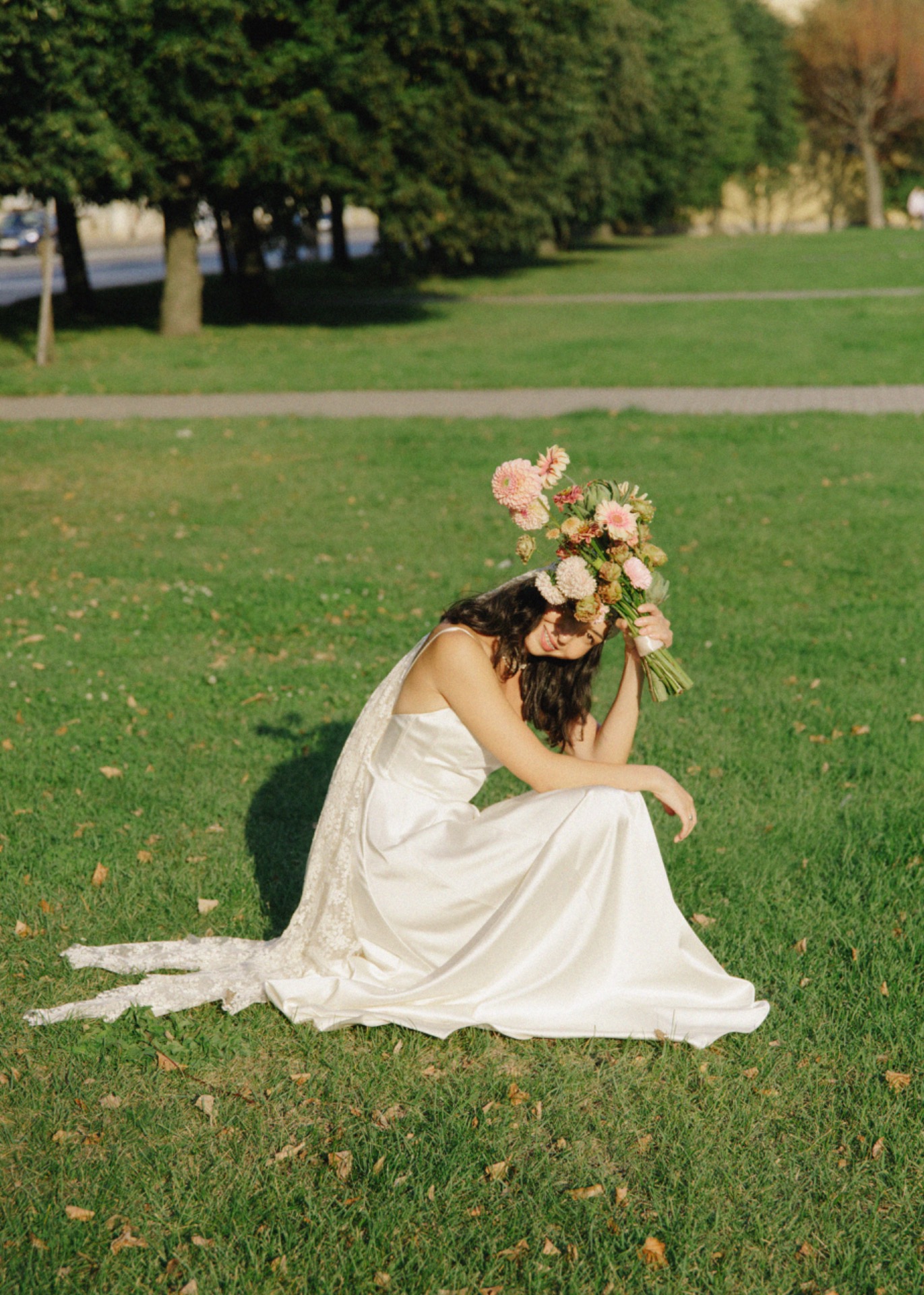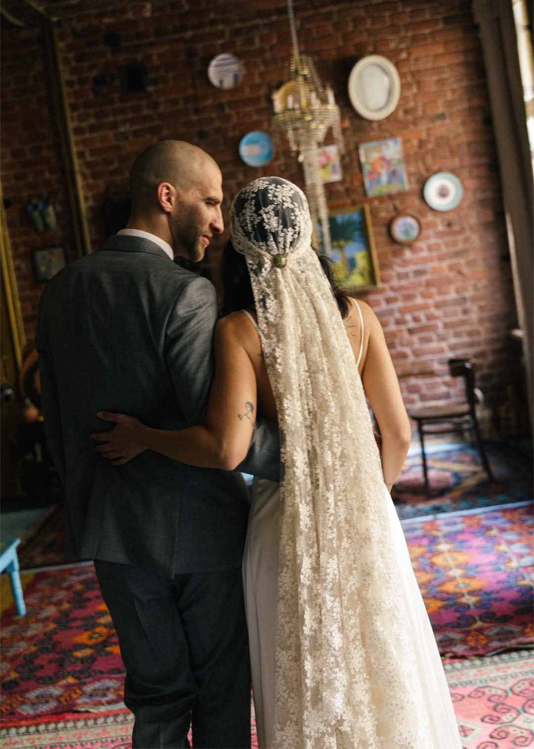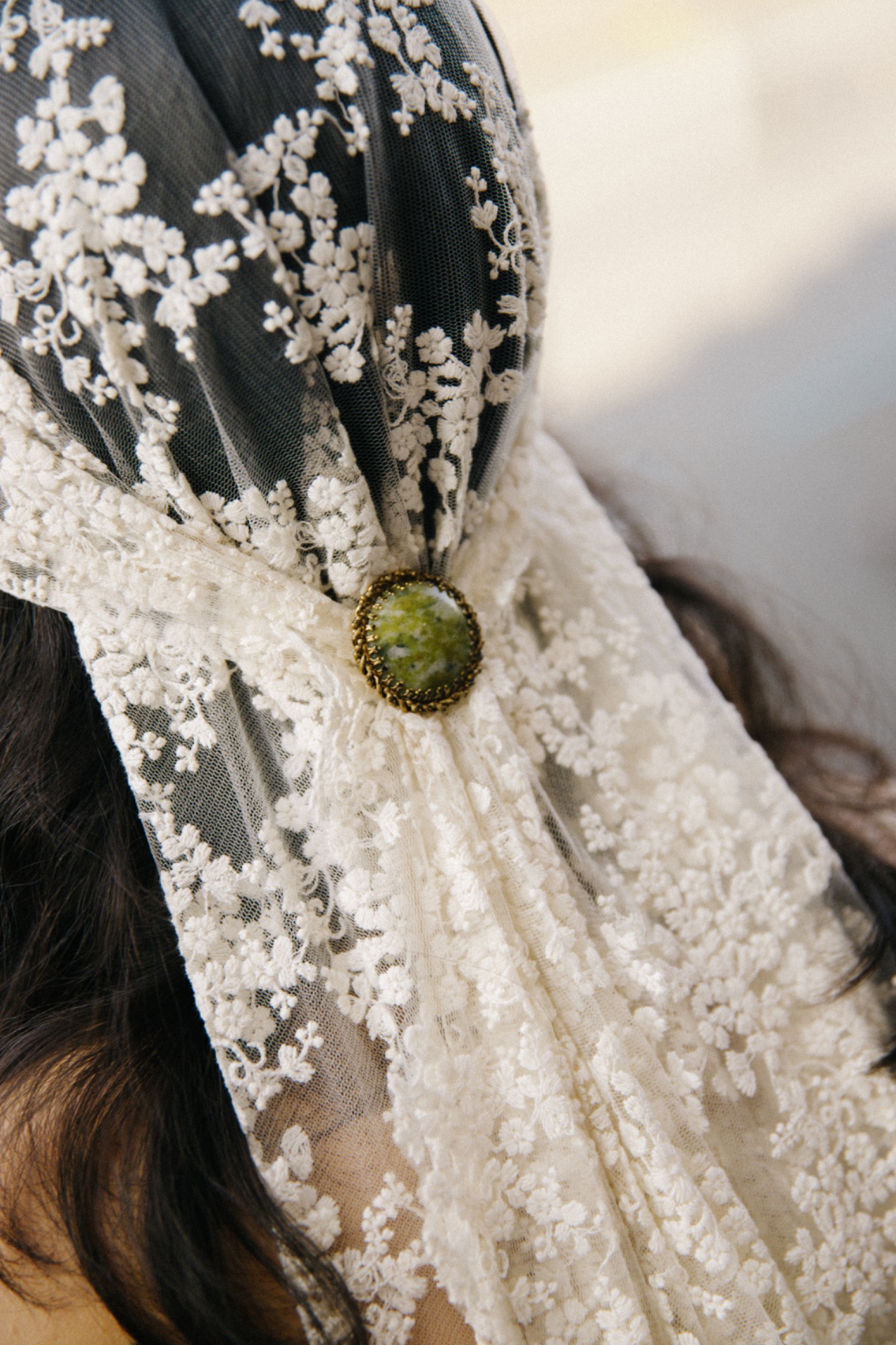 Платья я решила сшить, взяв за основу дизайнерские модели, найденные в Pinterest. А вот фату я оформила необычным способом, в виде платка, как дань культуре моей семьи, и закрепила её винтажной брошью.