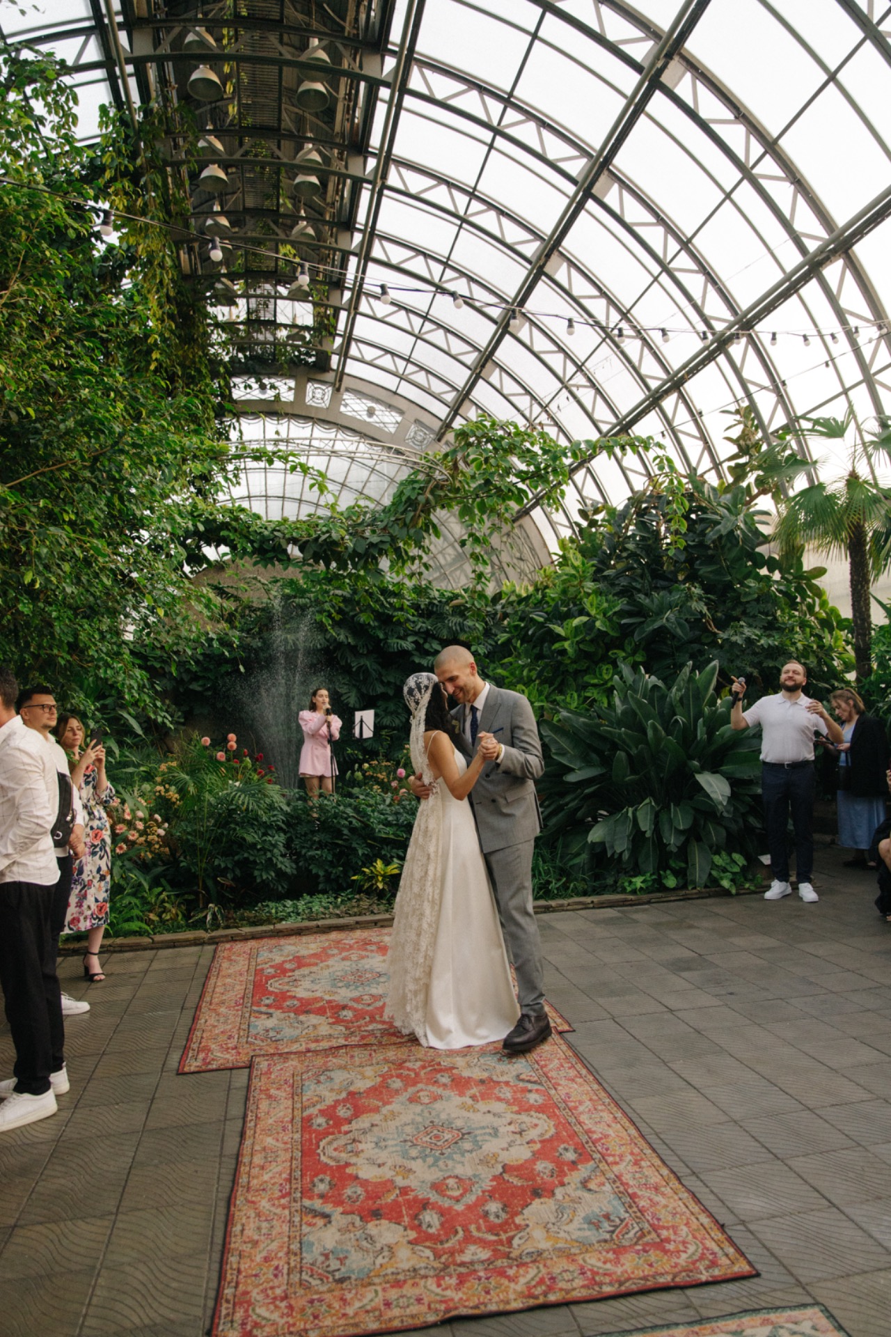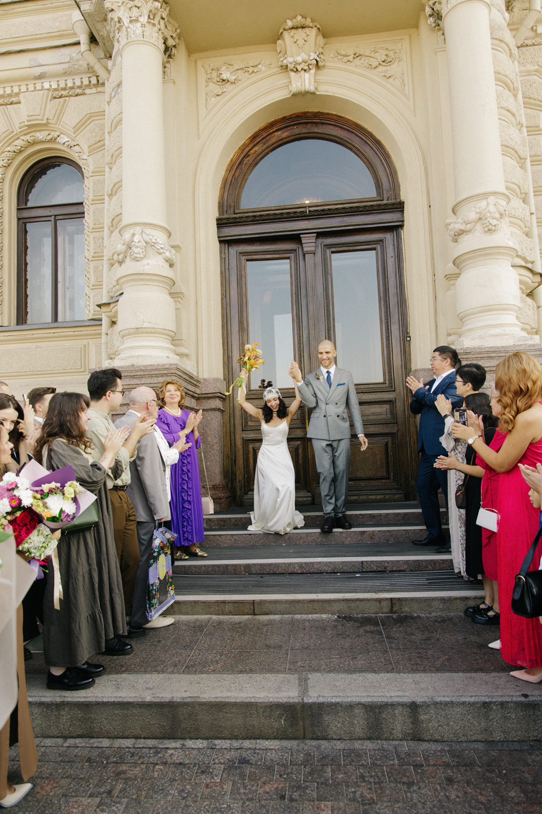 К свадьбе мы начали готовиться весной, но нам долго не получалось найти подходящую площадку — всё было не то. Затем мы решили всё упростить: просто расписаться и уехать праздновать с друзьями в Грузию. Но потом мы попали в оранжерею Таврического сада и поняли: это оно! В итоге, мы отпраздновали и там, и там.