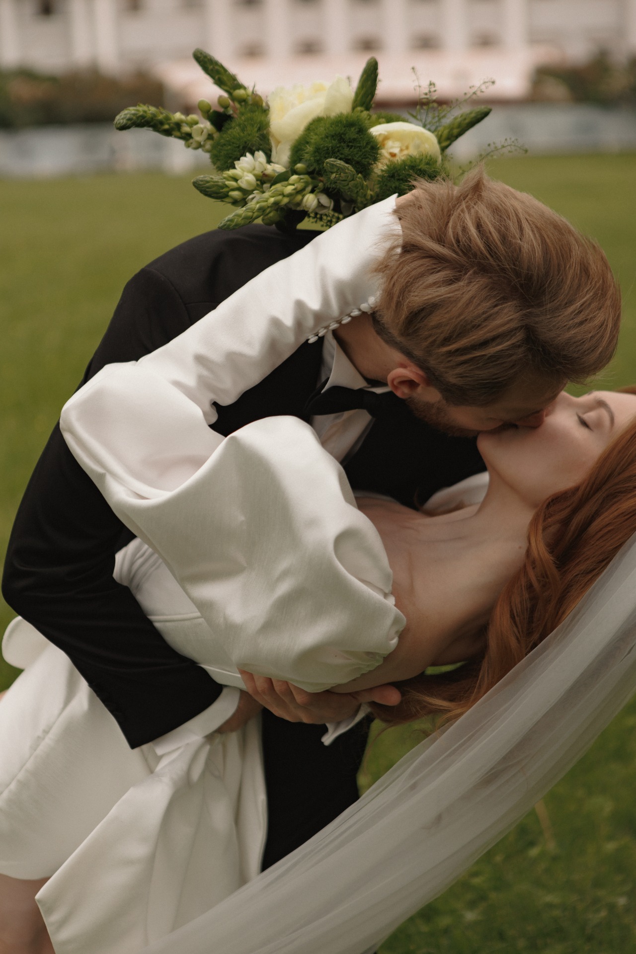 Во второй день мы отказались от традиционного утра невесты. А жених даже сам собрал для меня букет. Мы обменялись клятвами в цветущем Усадебном саду, и оба не смогли сдержать эмоций в этот день. Сразу после церемонии зазвучала песня Hallelujah из нашего любимого фильма.