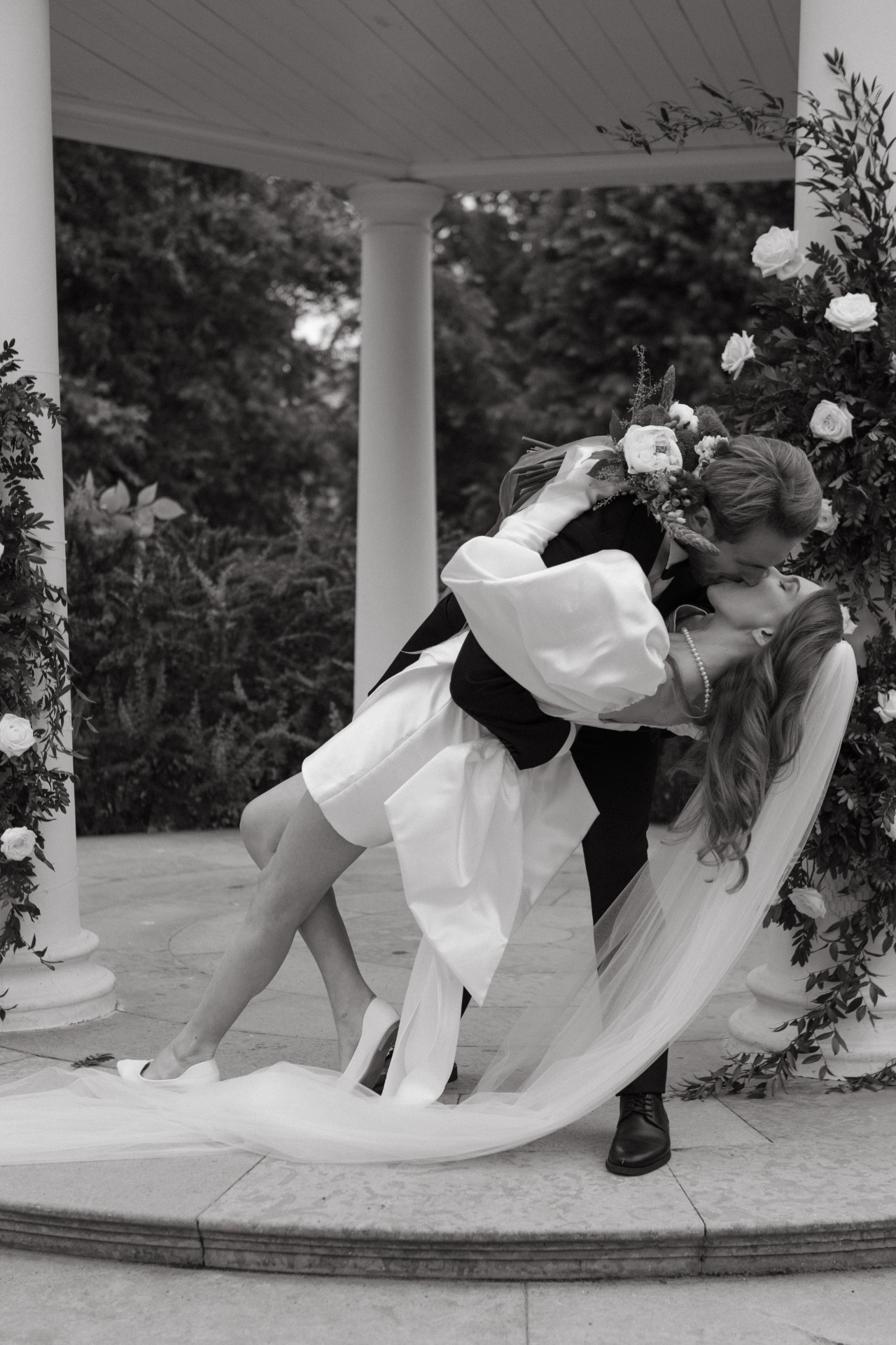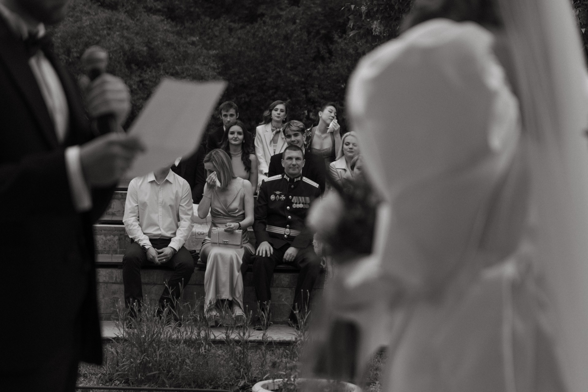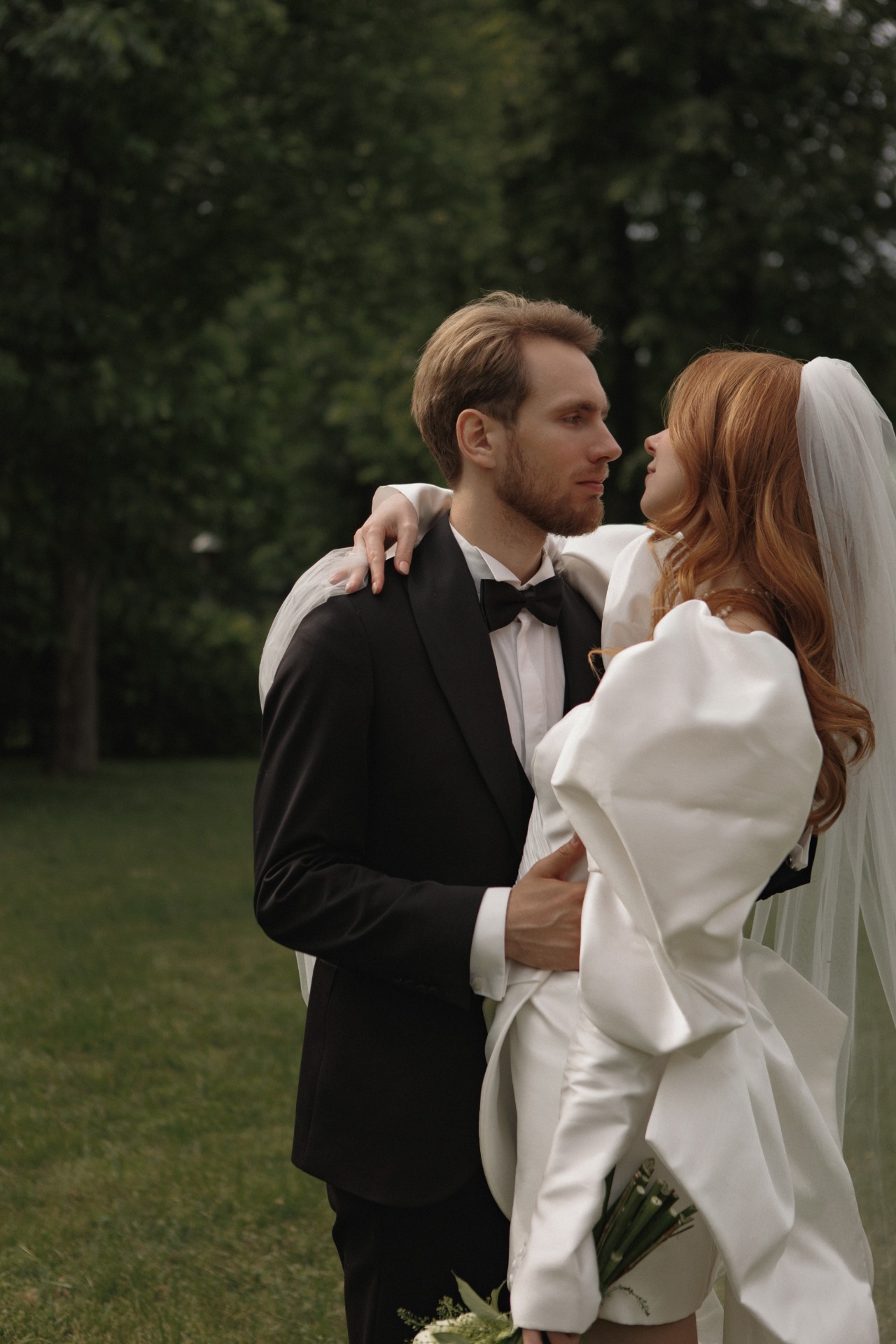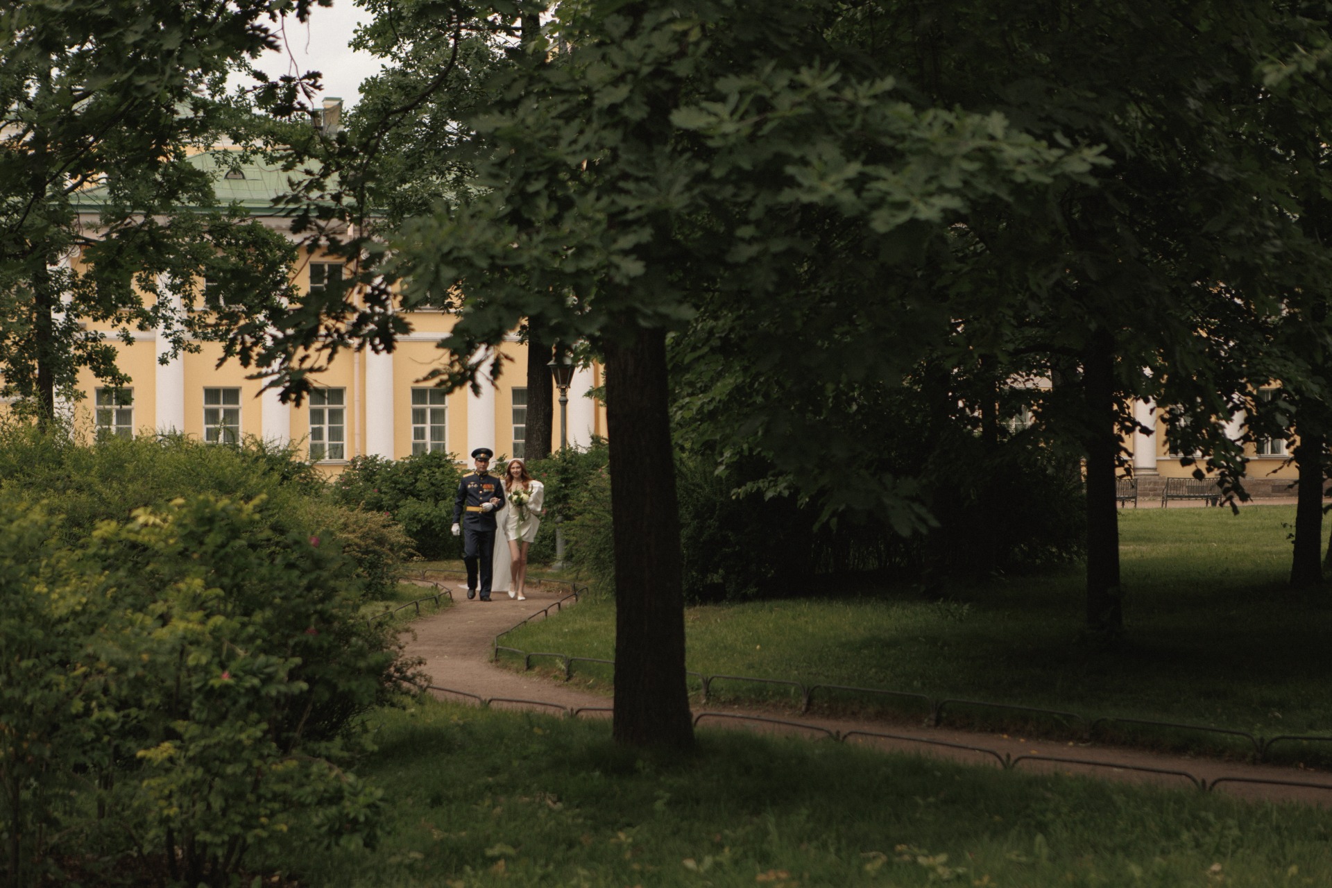 Мы разделили свадьбу на два дня. Свадебная церемония для меня всегда ассоциировалась с живой, зелёной локацией под открытым небом, поэтому выбор пал на Усадебный сад — идеальное место для такого момента.