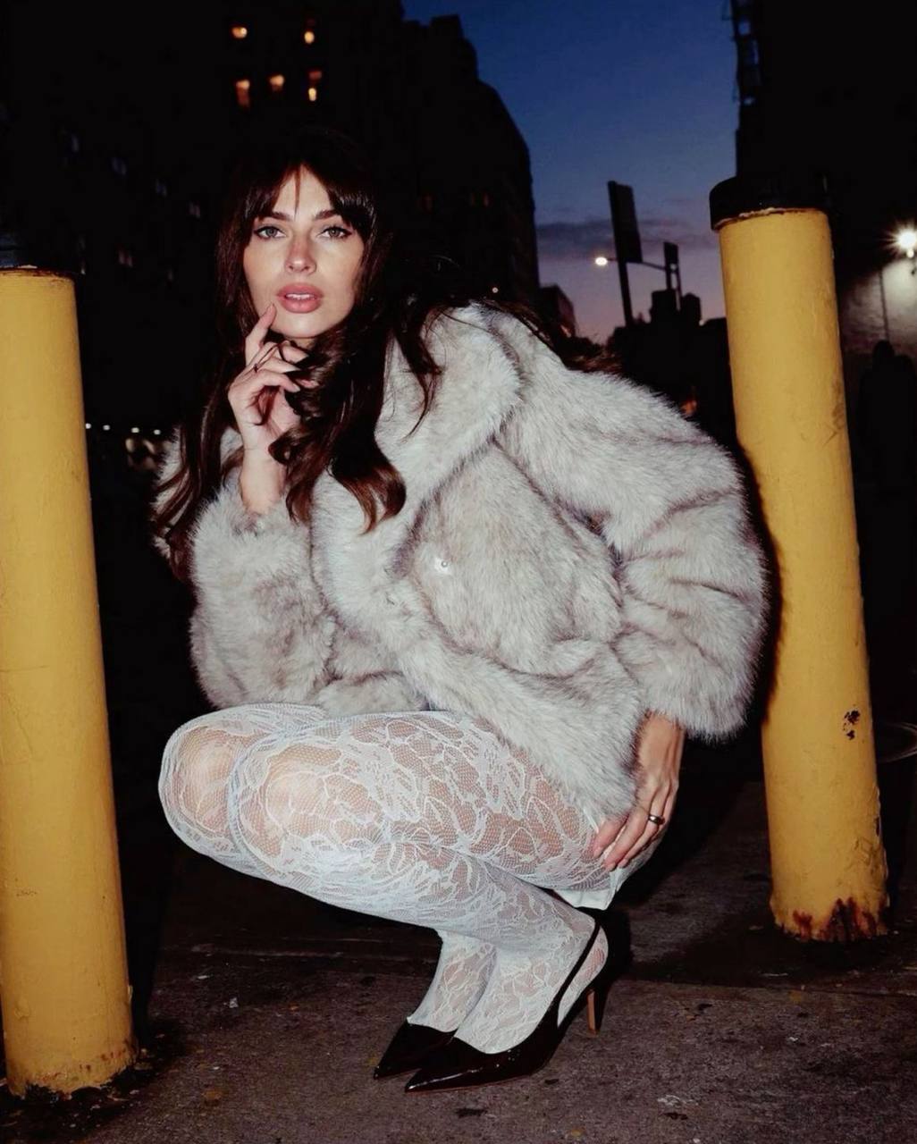 Однако, если хочется чего-то более смелого и необычного, можно рассмотреть вариант с сочетанием кружева и объёмных элементов, например укороченной шубы. Такой вариант отлично подойдёт для предсвадебной съёмки.