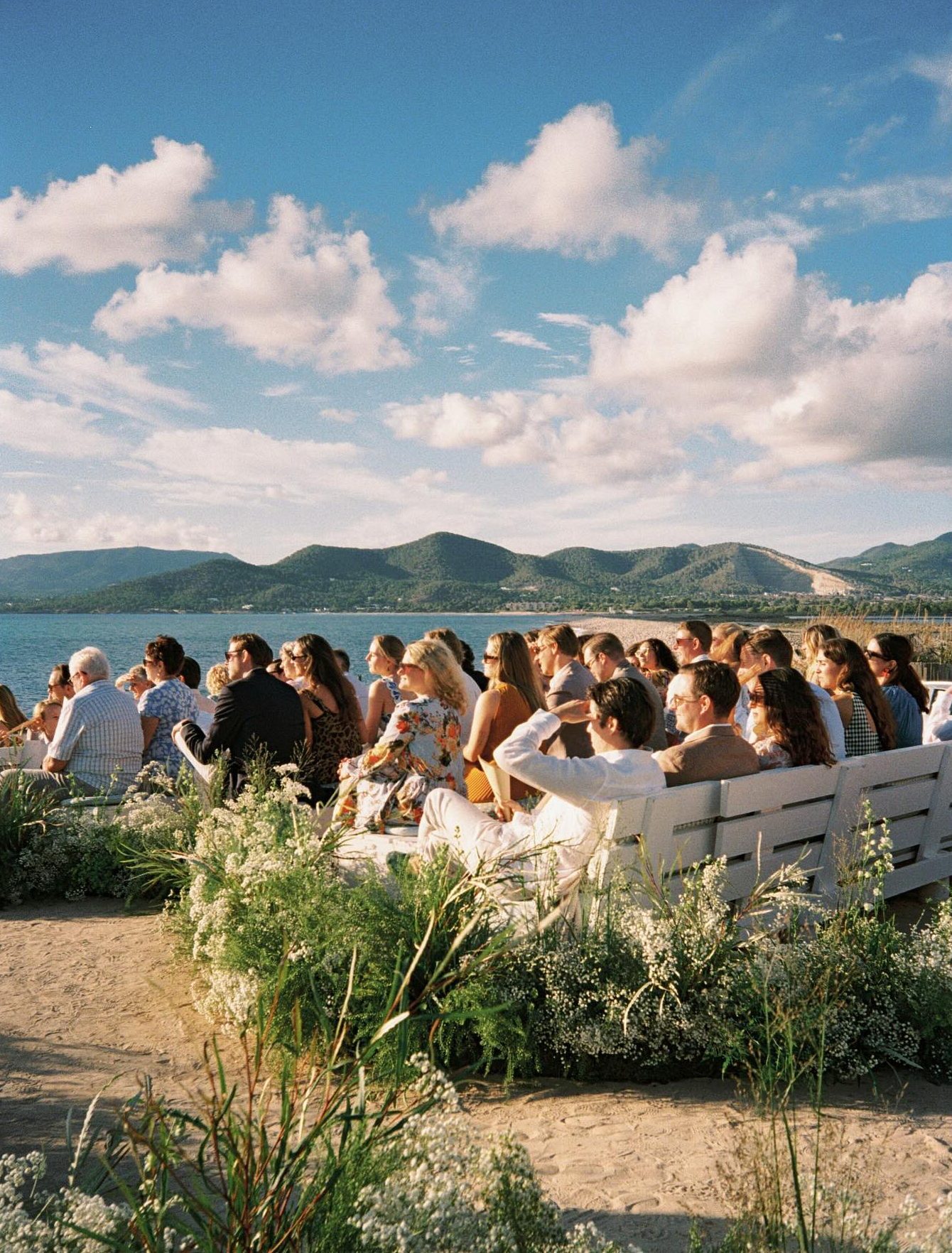 Гости во время церемонии должны сидеть: во-первых, провести на ногах всё это время им будет тяжело, а во-вторых, так фотографии получатся более аккуратными, не будет ощущения «толпы». Важно правильно рассчитать расстояние от арки до стульев гостей: от первого ряда до молодожёнов должно быть не менее 3 метров. При этом между стульями следует оставить около 2 метров для прохода невесты. И не ставьте стулья вплотную друг к другу: гостям должно быть комфортно.