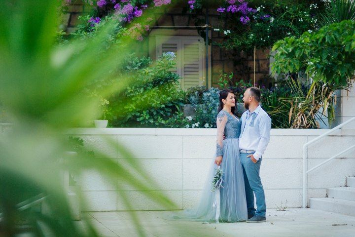 Так как локацией для съемки стала Хорватия, место, где в воздухе витает аромат лаванды, где адриатическое море сливается с горизонтом, и все пропитано романтикой, мы выбрали стиль прованс. Для меня, как для творческого человека, подбор наряда был принципиально важен. Первое, что я знала точно — это цвет. Цвета всей нашей истории — лилово-серый и пыльно-голубой.