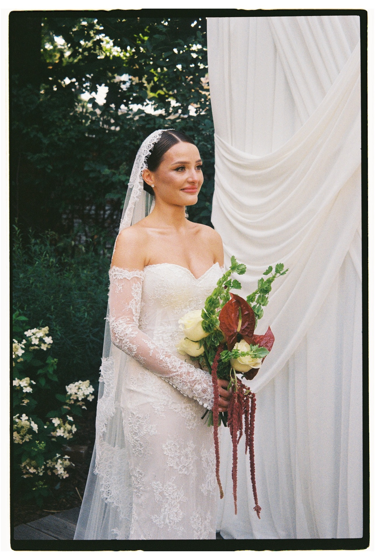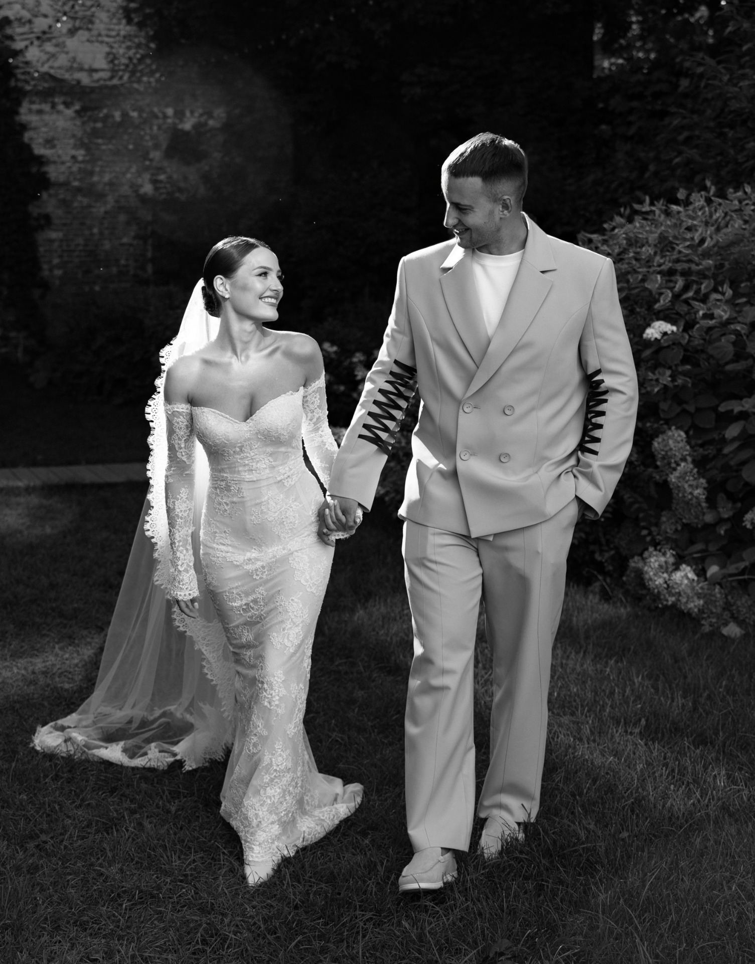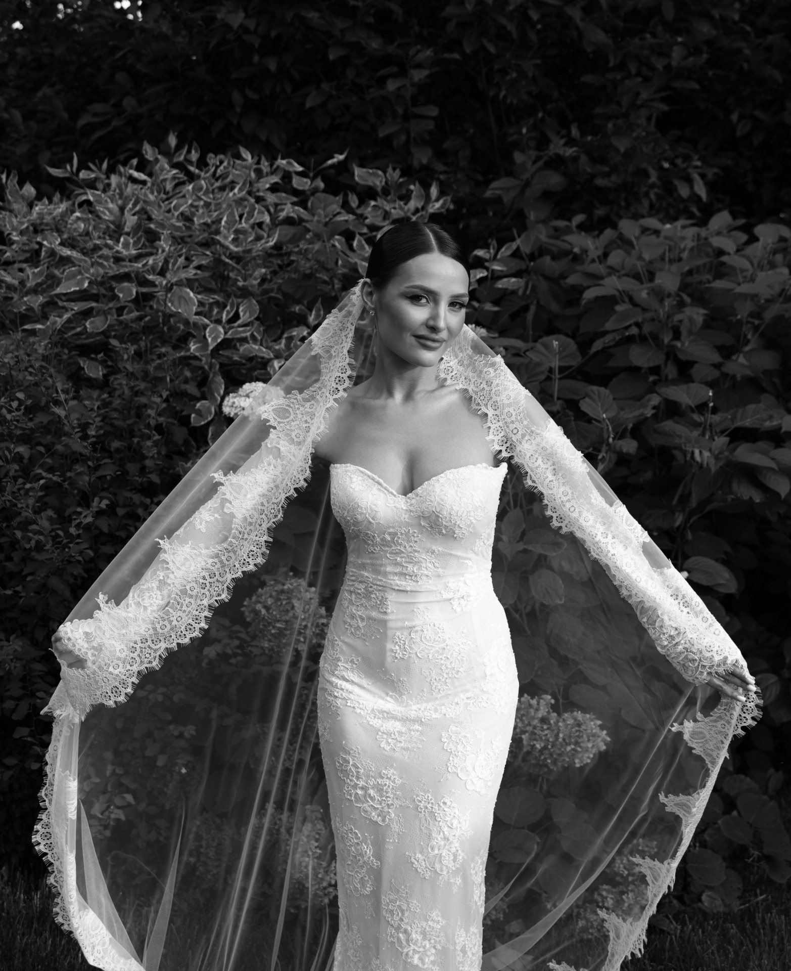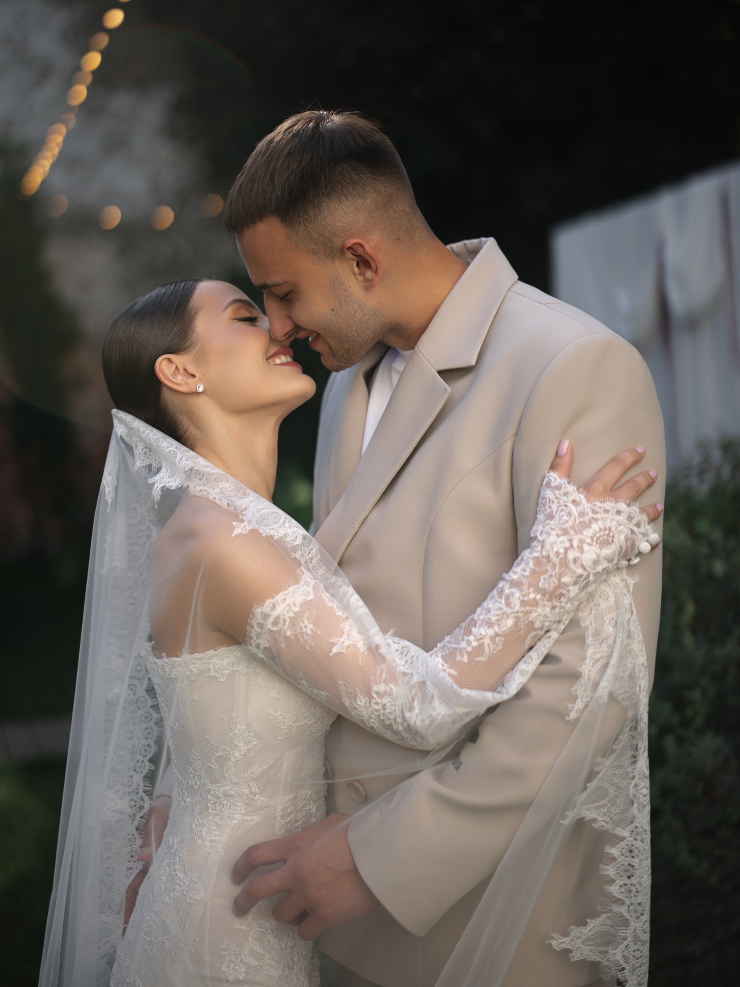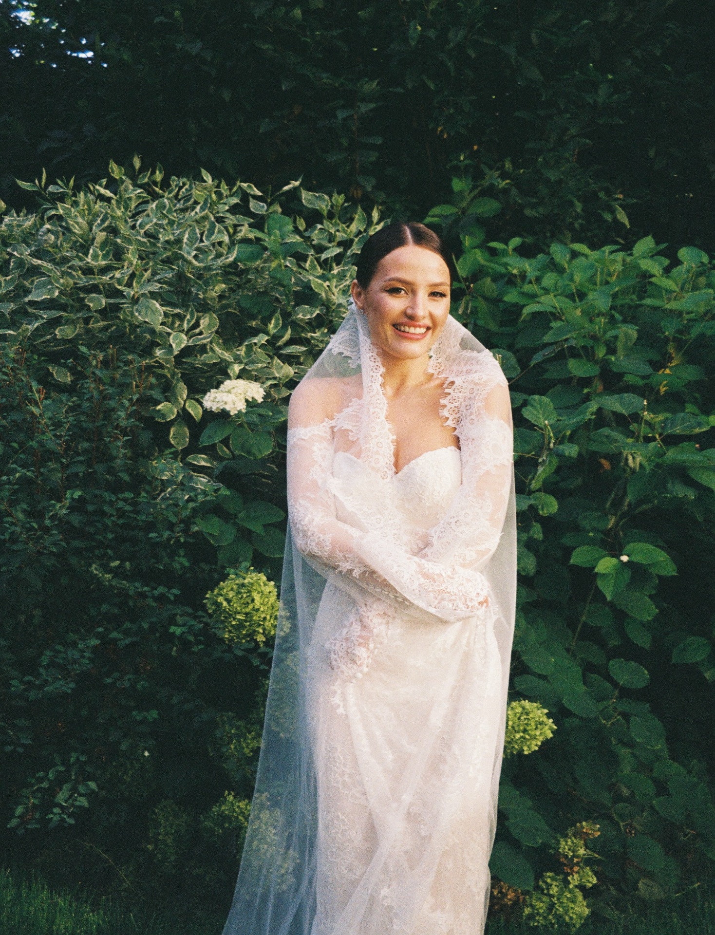 Мы вдохновлялись стилем «тихой роскоши». Моё основное платье было сшито из французского кружева Berta и полностью выполнено из прозрачных материалов. В этом образе мне хотелось подчеркнуть нежность и элегантность.