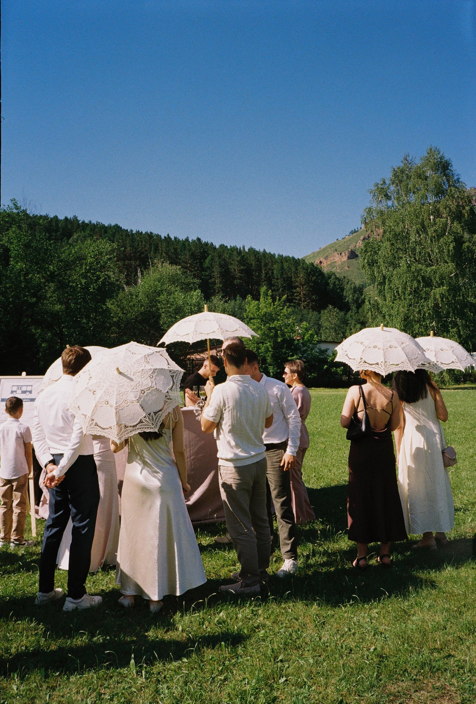 - Если планируется проведение вечерней церемонии, обязательно продумай освещение – одних свечей для качественных фото может быть недостаточно. Используй гирлянды из лампочек накаливания, люстры или фонарики.
